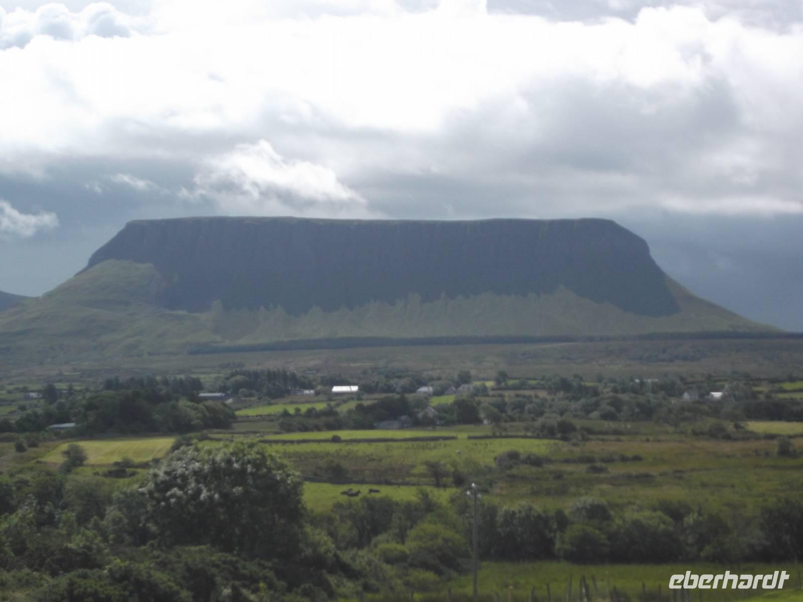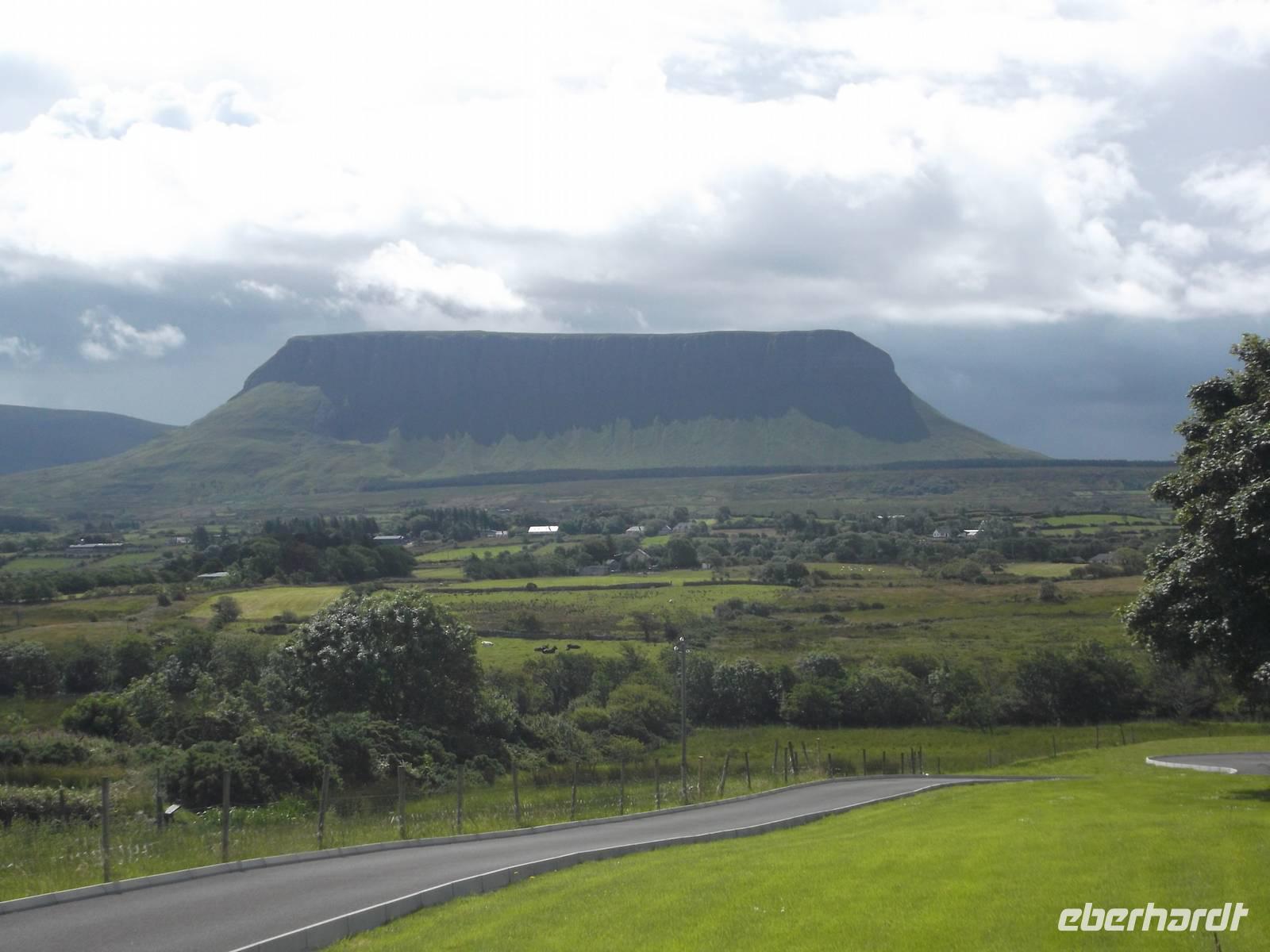 Donegal ist die größte der einstigen Grafschaften des ehemaligen Königreiches Ulster und eine derjenigen, die zur Republik Irland gehört. Unser erster Halt in der kleinen Stadt Donegal - namengebend für die Grafschaft, aber nicht deren Hauptort - bot Gelegenheit, das belebte Zentrum um den Platz „The Diamond" kennenzulernen und einen Blick auf die Ruine des vom O'Donnell-Clan erbauten Donegal Castle, eine malerische Burg mit mächtigem Donjon, zu werfen. Wir durchfuhren dann weiter die Küstenregion und legten nach einem kurzen Fotostopp am Wahrzeichen der Grafschaft Sligo, dem 527 m hohen Tafelberg Benbulben, unsere Vormittagspause in Drumcliff ein. Der kleine Ort nördlich der Grafschaftshauptstadt Sligo ist überall in Irland bekannt, weil sich neben seiner Kirche das Grab des überall sehr verehrten Dichters und Politikers William Butler Yeats befindet. Als ehemaliger Senator der jungen irischen Republik hat er viel für deren Aufbau nach der Unabhängigkeit von England getan. Außerdem gilt er als bedeutender Literat, der zusammen mit der legendären Lady Gregory das moderne irische Theater begründete.