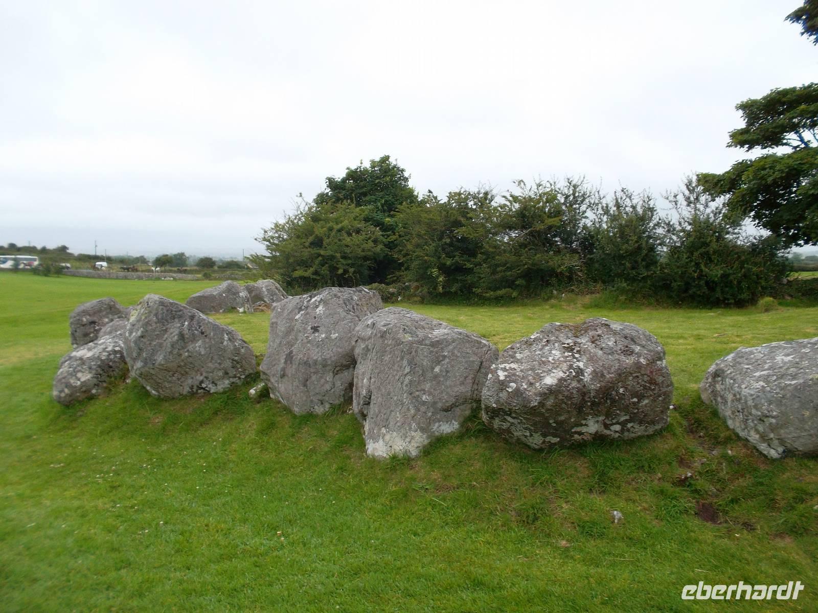 Ein ganz anderer Blick in die Vergangenheit eröffnete sich uns beim nächsten Programmpunkt, dem Besuch des dicht neben Sligo liegenden steinzeitlichen Friedhofs von Carrowmore. Viele Zeugnisse der Großsteinkultur aus der Jungsteinzeit findet man hier - Menhire, Steinkreise und Dolmen, auch ein gewaltiges mit Steinen bedecktes Hügelgrab. Das große Areal von Carrowmore ist eines der wichtigsten Zeugnisse der Megalithkultur und der frühen Besiedlung Irlands. Viele interessante Details ließen sich beim Spaziergang auf diesem prähistorischen Gräberfeld entdecken.