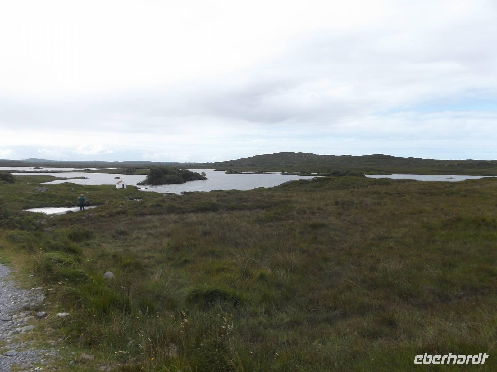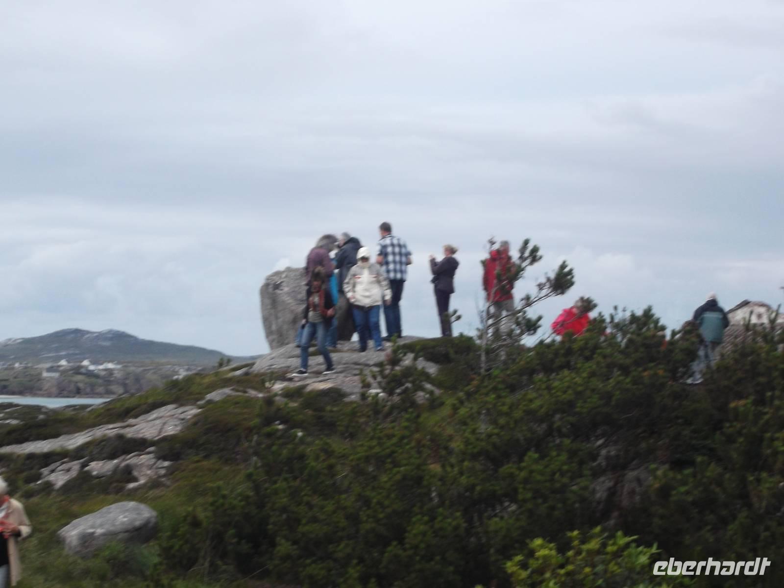 Nach Mittagspause noch am Busparkplatzging es zum Nachmittagsprogramm, das mit einem Fotostopp am Fuße des Mount Erigal begann. An Seen und Tälern vorbei erreichten und durchquerten wir eine der interessantesten Landschaften der Grafschaft Donegal. Die Felsen und winzigen Dörfchen der Region „The Rosses" gehören zur sogenannten „Ghaeltacht", jener traditionsreichen Regionen, in der noch vorwiegend irisches Gälisch gesprochen und geschrieben wird.