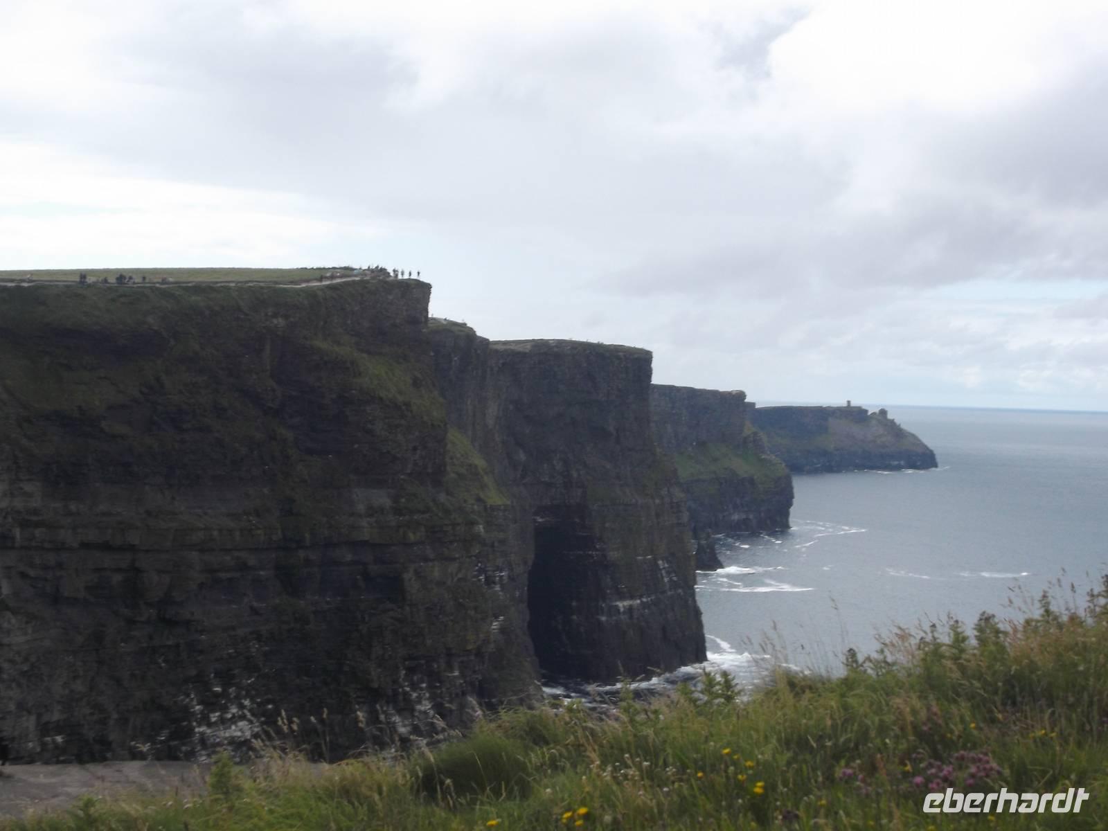 Das brachte uns zu einem der bekanntesten Naturdenkmäler und der vermutlich meistbesuchten irischen Sehenswürdigkeit - zu den Cliffs of Moher.Im neuen Besucherzentrum kann man sich Informationen rund um die Steilküste beschaffen. Spazierwege mit herrlichen Ausblicken zeigen die Klippen, die nahezu senkrecht aus dem atlantischen Ozean ragen. Sie erstrecken sich über eine Länge von über acht Kilometern und haben eine Höhe von ungefähr 120 m am Südende, während sie nördlich des Aussichtspunktes O'Brien's Tower sogar 214 m hoch über dem Meer stehen. Nach Freizeit für längere Spaziergänge und für die Mittagspause setzten wir unseren Weg nach Süden fort. Der Besuch der einstigen Normannenburg Bunratty ist fast ebenso ein Muss wie der Cliffs of Moher. Die Burg selbst ist heute Museum mit historischer Möblierung, Audienzhalle und dem typischen Flair des irischen Mittelalters. Im Park der in der Geschichte heiß umkämpften Festung findet sich heute ein Freilichtmuseum der besonderen Art hier wurde aus verschiedenen traditionellen irische Bauernhäusern ein ganzes Dorf errichtet. Dazu wurden die einzelnen Häuser teilweise an anderen Stellen abgetragen und hier wieder aufgebaut - Grund genug für einen nostalgisch-irischen Spaziergang.