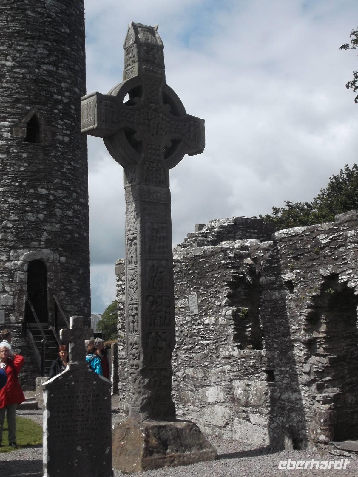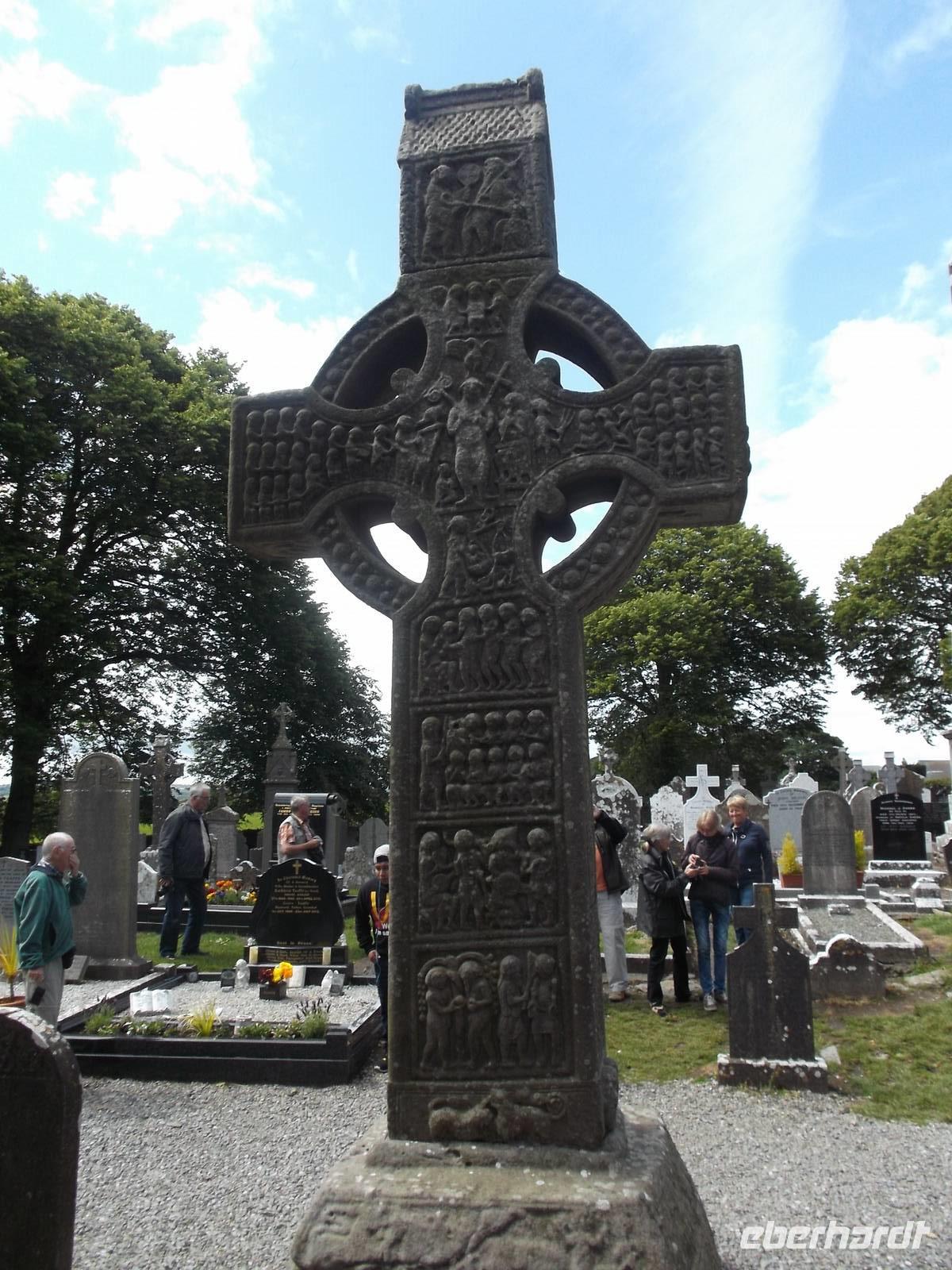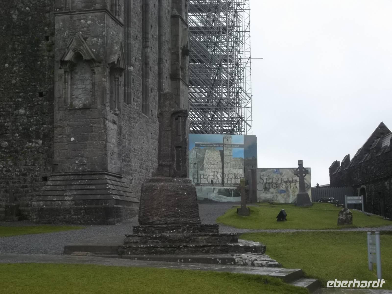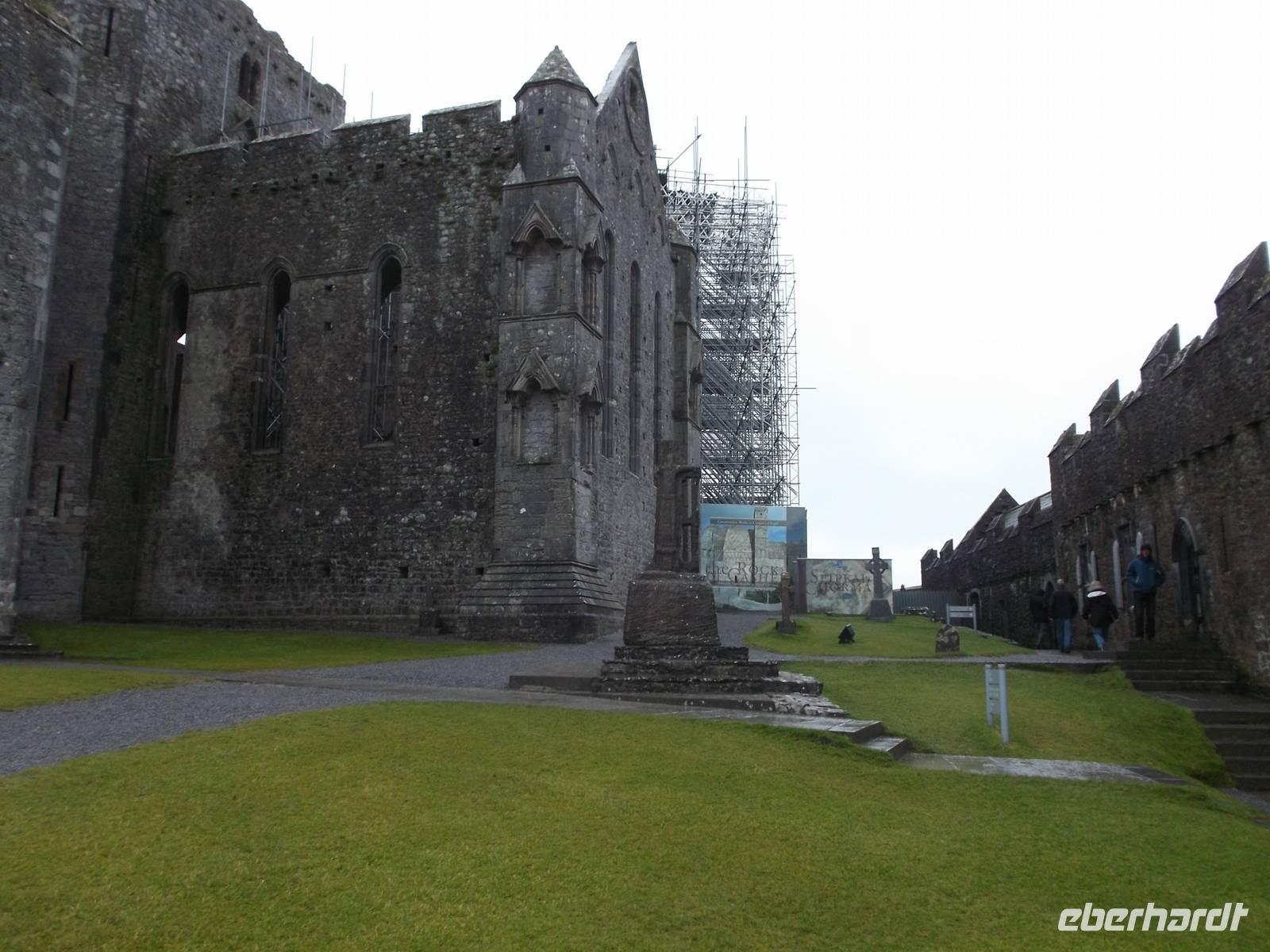 Nach dem Besuch der Jameson Distillery brachte uns der Bus zum letzten Punkt unseres reichhaltigen Irland-Programms. Der „Rock of Cashel" war einst Regierungs- und Bischofssitz des ehemaligen irischen Königreiches von Munster. Heute sind die imposanten Ruinen Nationalmuseum und beeindrucken schon von Weitem. Der historische Komplex aus Burg und Kathedrale thront auf einem Felsen, der die Ebene überragt. Nach dem Eintritt ins Gebäude-Ensemble stößt man zunächst auf die Reste des ältesten Hochkreuzes der britischen Inseln. Man sagt, der Sockel dieses Kreuzes sei der Stein, auf dem der heilige Patrick, der Schutzpatron Irlands, habe hier König Aenghus von Munster getauft. Nach dem Vorbild ihres Herrschers ließen sich dann auch dessen Untertanen rasch zum Christentum bekehren.