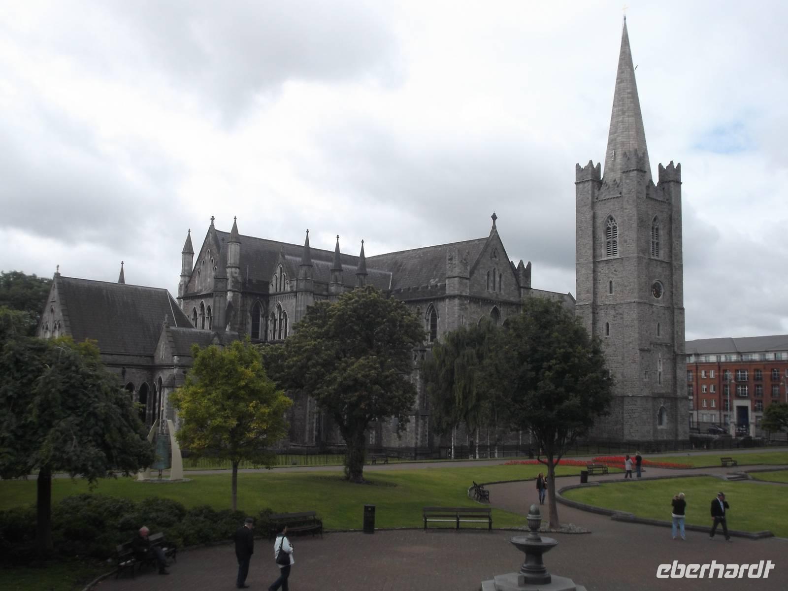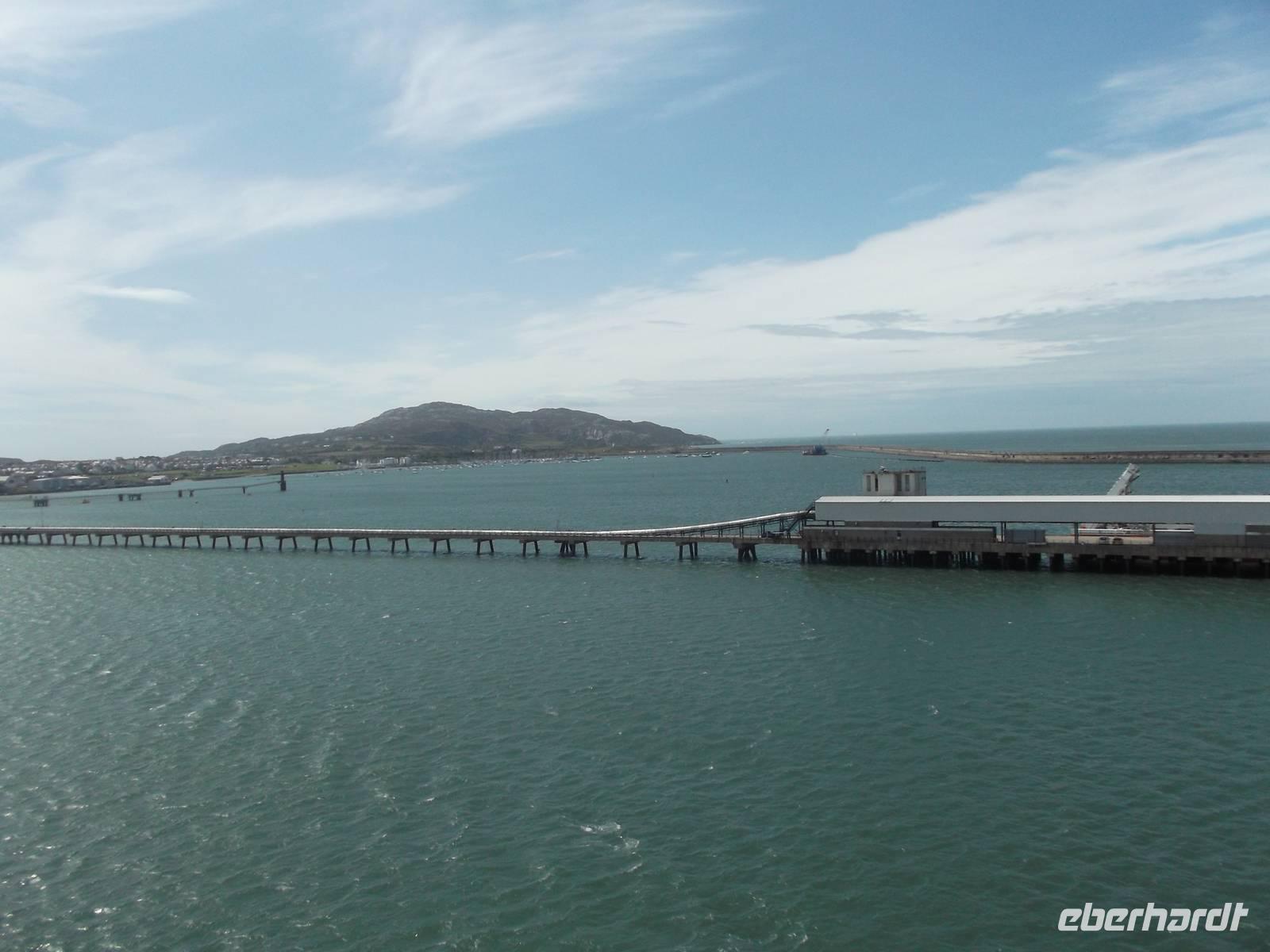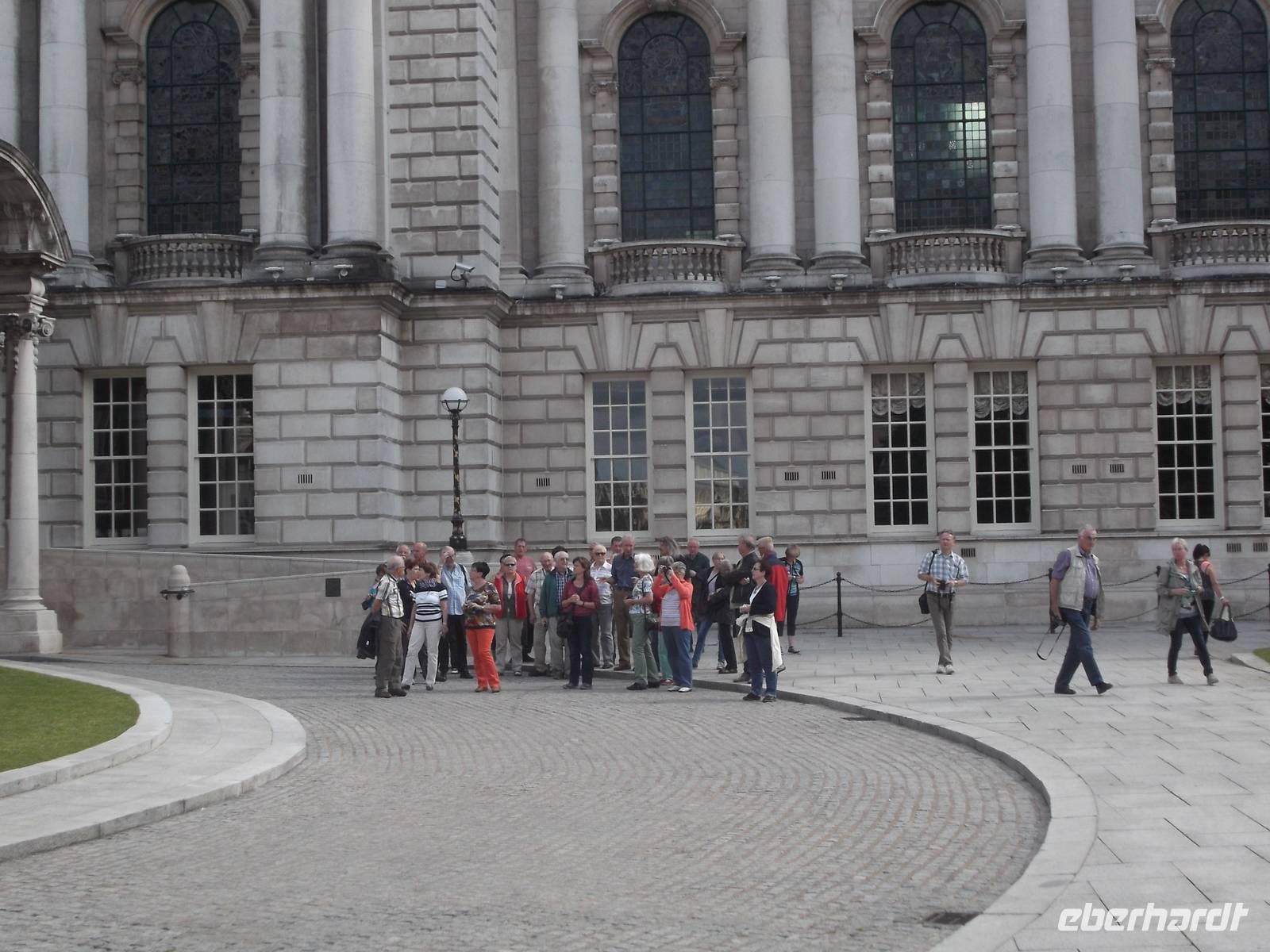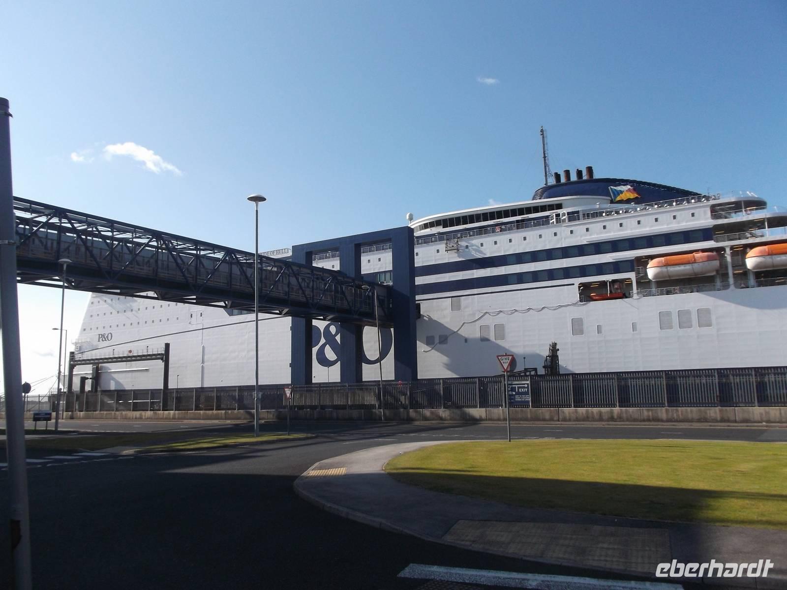 Das Schiff, das schon am Vorabend einige Minuten vor Fahrplan in See gegangen war, machte recht pünktlich um 08.00 Uhr englischer Ortszeit in den braunen schlammigen Fluten des „River Humber", an dem der Hafen Hull liegt, fest. Dennoch dauerten die Grenzkontrollen wieder einmal etwas länger. Nicht gut für einen relativ engen Fahrplan, denn wir mußten ja quer durch England Wales bis ganz in den Westen zum Fährhafen Holyhead. In den Sommerferien ist es nicht immer einfach, zu bestimmten Terminen unbedingt das Abendschiff buchen zu können und so wussten wir, dass wir uns „gut auf den Weg machen" müssten, um die am frühen Nachmitttag in Holyhead ablegende „Ulysses" von den „Irish Ferries" zu erreichen. Aber Chauffeur Jörg war ein sehr erfahrener und auch den für uns ja immer etwas ungewöhnlichen Linksverkehrt meisternder Fahrer der nicht bummeln würde. Dennoch ließen uns stockender Verkehr und dann ausgerechnet noch ein ewig langer Baustellenstau in leichte Zeitnot geraten, doch konnten wir telefonisch klarmachen, dass wir noch kommen würden. Und so gab es dann sogar noch eine ganze Menge Fahrzeuge, die - von derselben Verkehrssituation wie wir überrascht" - nach uns auf der riesigen „Ulysses" eincheckten, die die irische See in weniger als vier Stunden überquert. Wir konnten es uns auf dem Schiff gemütlich machen, bevor wir gegen 18.00 Uhr den Hafen von Dublin erreichten. unser bequemes Hotel lag zum einen nahe beim Hafen und zum anderen ebenso dicht an der Dubliner Innenstadt. Fast zeitgleich mit einem Teil unserer Eberhardt-Gäste, die die Flugvariante gewählt hatten und von einem Shuttlebus vom Dubliner Airport zum Hotel gebracht wurden, trafen wir am Hotel ein, konnten gemeinsam einchecken und trafen uns danach zum Abendessen.