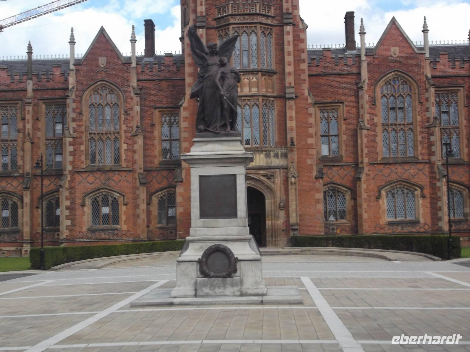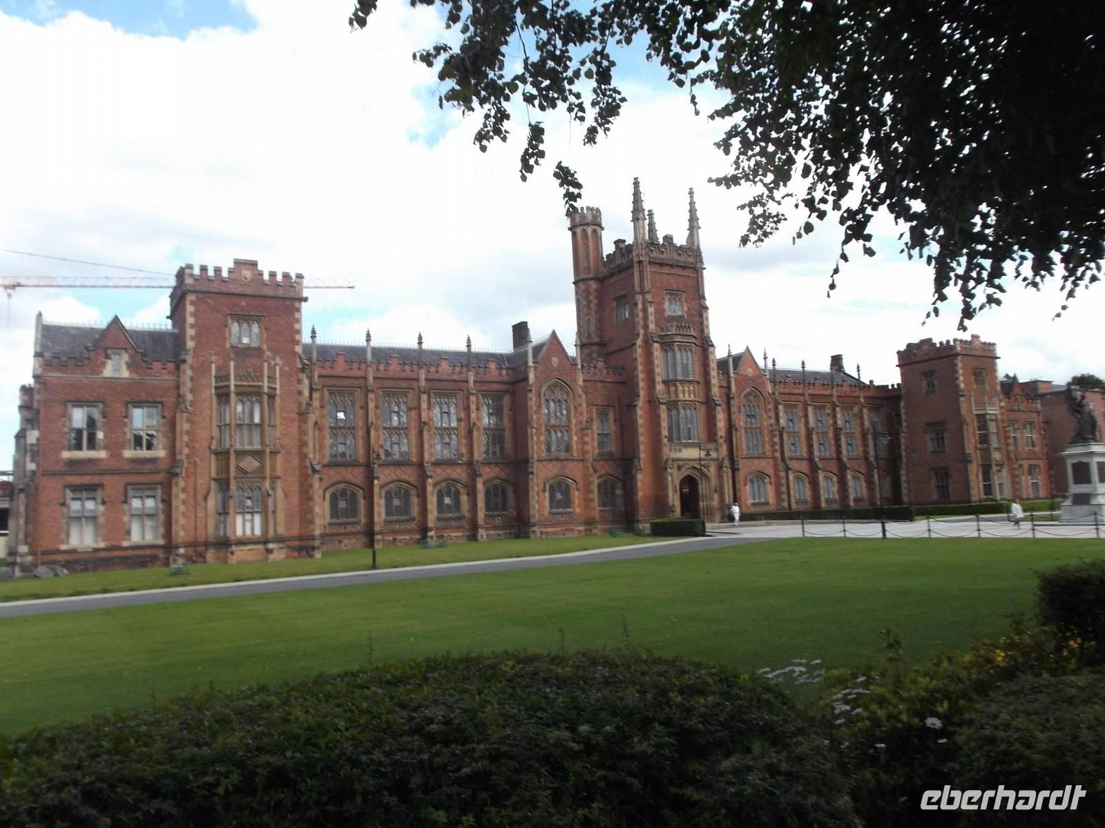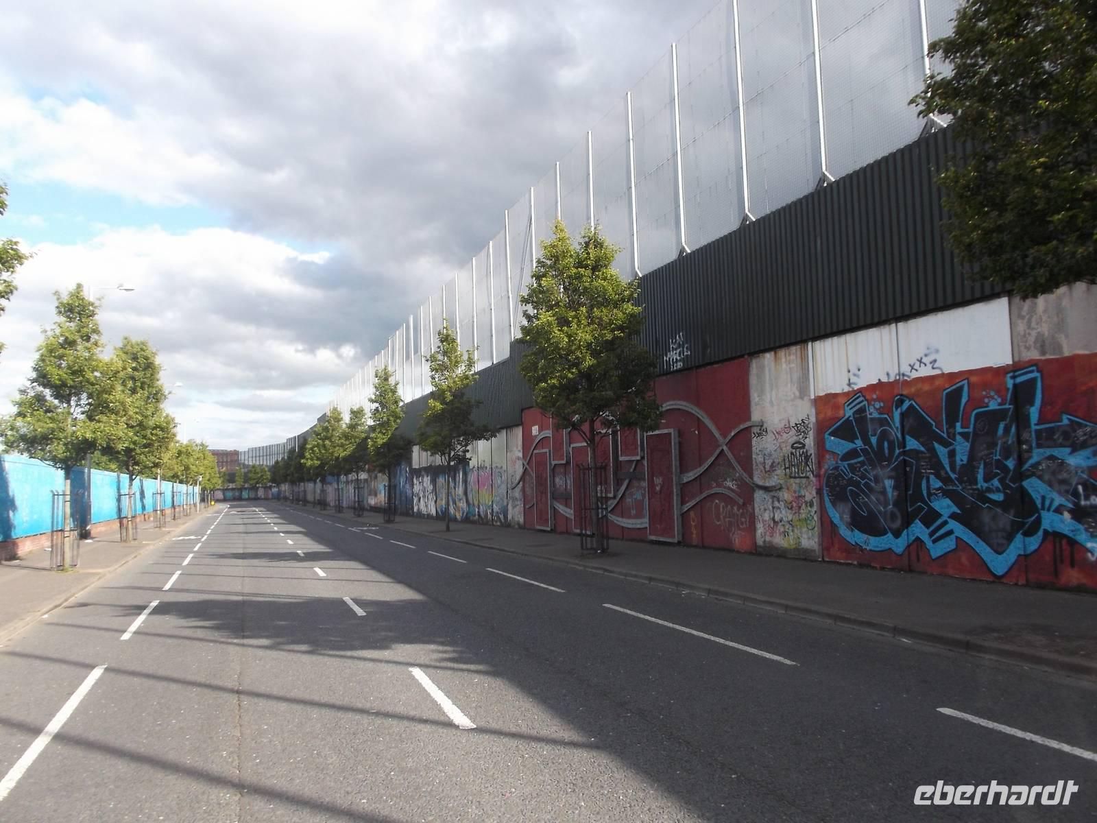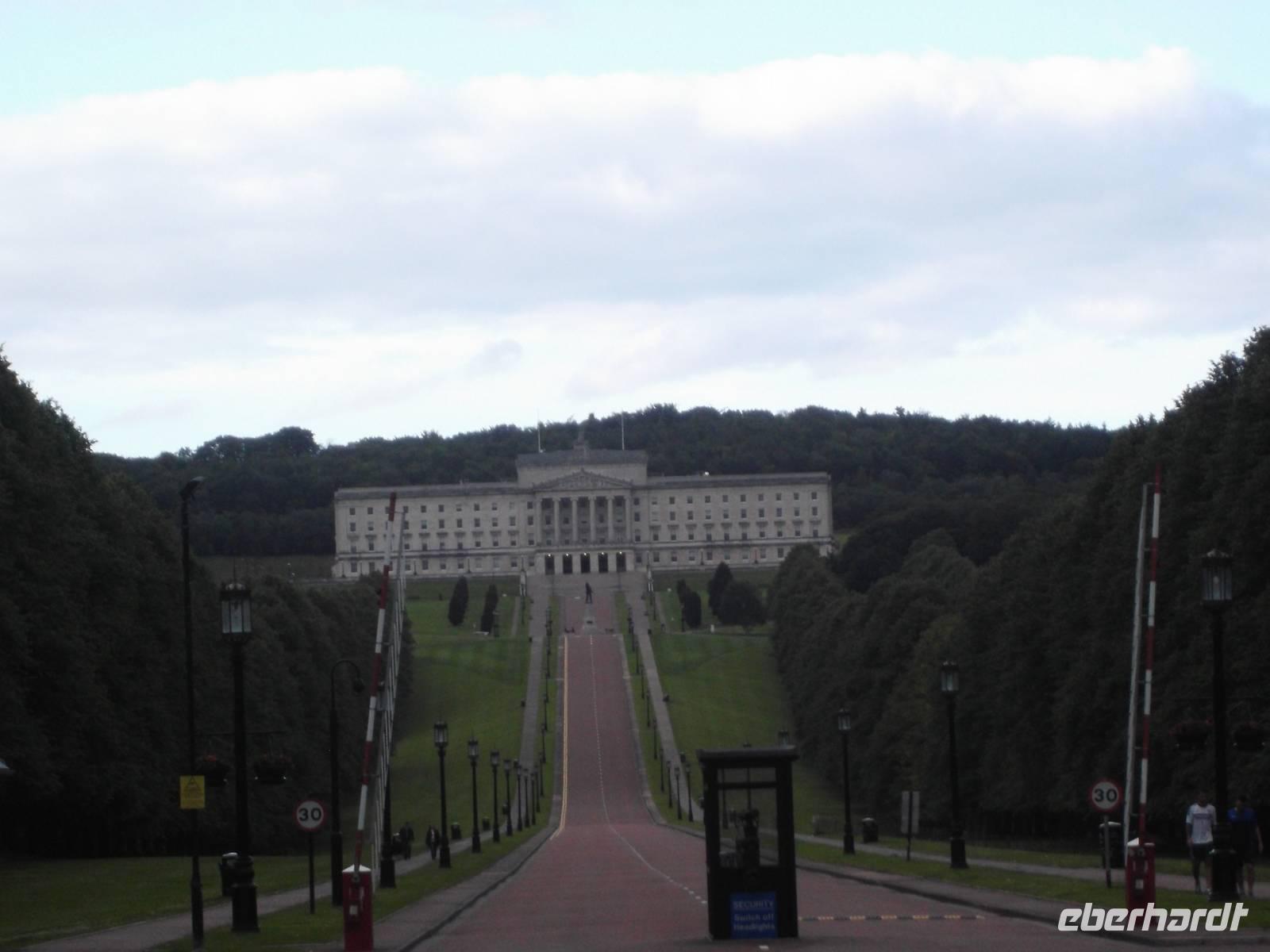 Stadtführer Willie Swann kenne ich schon lange und halte ihn für einen der versiertesten. Wir begannen wie immer mit dem ersten großen Highlight von Belfast: dem gewaltigen Rathaus aus viktorianischer Zeit, neben dem das Denkmal für die Opfer der Titanic-Katastrophe steht. Er fuhr mit uns hinaus zu den neogotischen Universitätsgebäuden und zeigt uns auch das das herrlich außerhalb der Stadt gelegene Parlamentsgebäude Stormont. Was sicher die größte Faszinations der nordirischen Hauptstadst ausmacht, ist eng mit der Geschichte des Landes und ihrer vorherrschenden Religionen verbunden. Unsere Fahrt führte durch einige der bekanntesten Straßen von West- und Ost-Belfast, wo noch heute durch bedeutende und teilweise einst durch die Nachrichten bekannte Wandmalereien ein Hinweis auf die vor knapp zwanzig Jahren überwundenen Unruhen in Nordirland erfolgt und sich Erklärungen für die teilweise bis heute nicht überwundene Teilung der Religionsgruppen in Belfast ergeben.