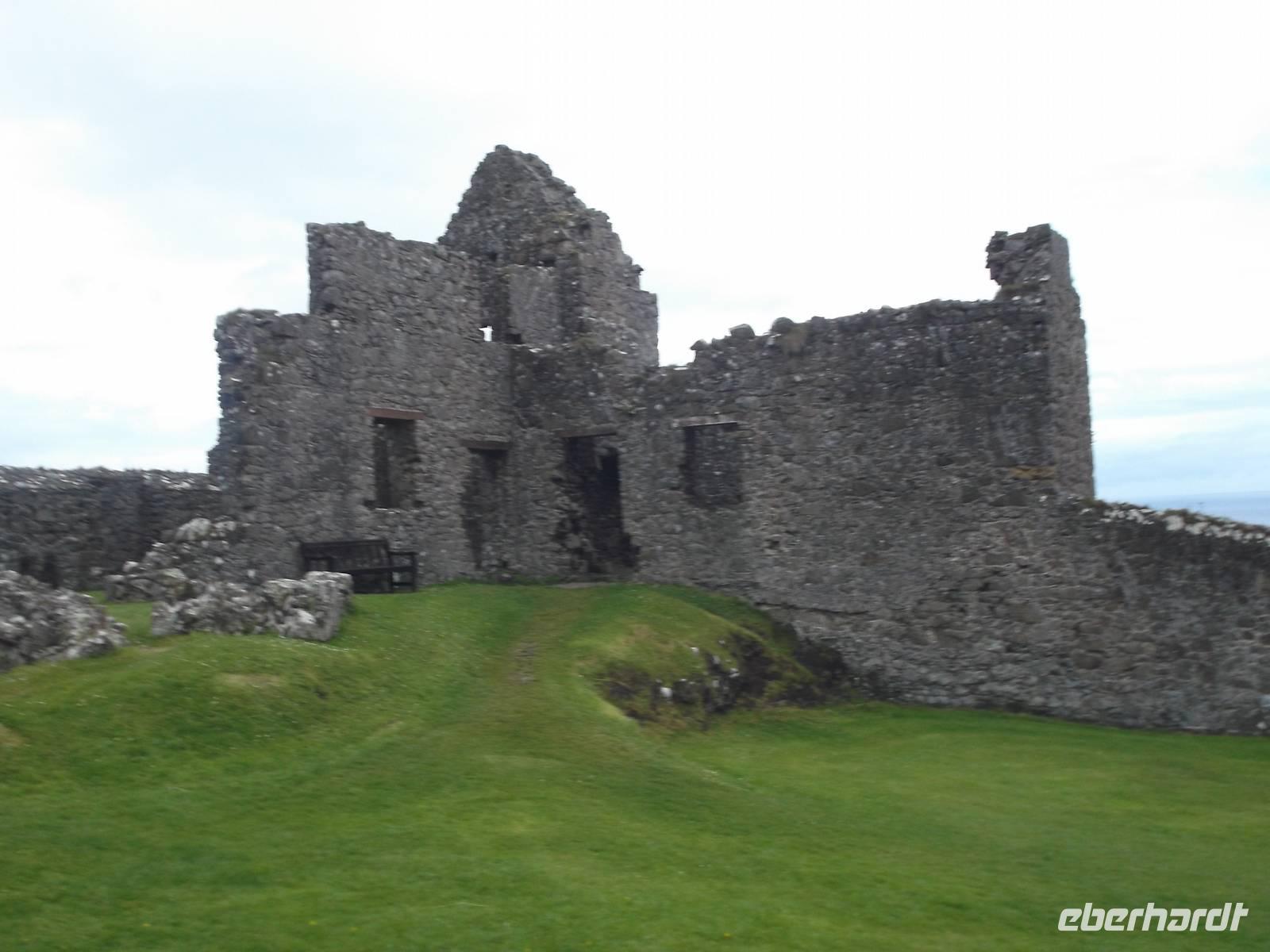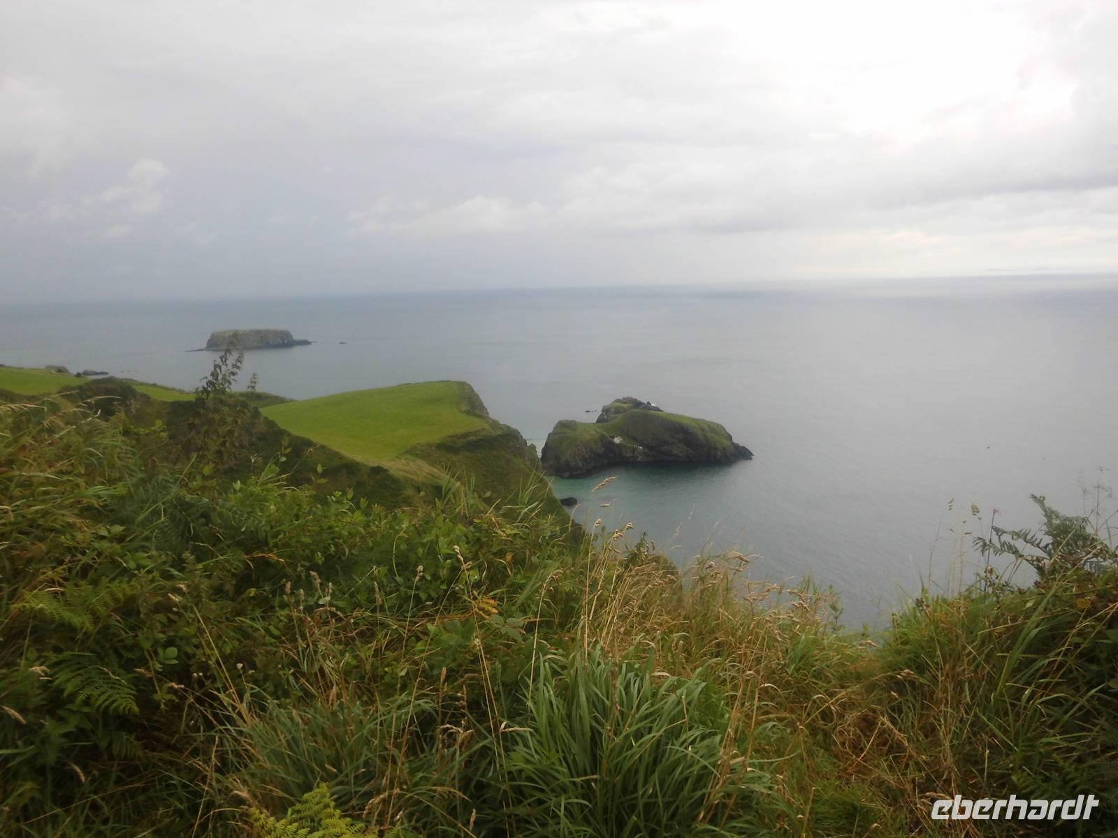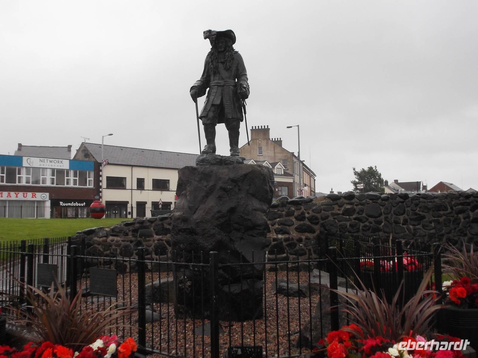 Einer der großen Höhepunkte irischer Natur, der „Giants Causeway", würde unser heutiges Tagesprogramm bestimmen. Auf der Küstenroute von Belfast bis zum Norden Nordirlands brachen wir heute nach dem Frühstück auf, um über den Fährhafen Larne, die Fischerdörfer an der nordirischen Ostküste und den hübschen Ort Ballycastle unser Hauptziel zu erreichen. Das Wetter meinte es nicht gerade gut mit uns, als wir den ersten längeren Fotostopp am wuchtigen, Carrickfergus Castle einlegten, auf einem Basaltfelsen erbaut. Vor der gewaltigen und für die britische Herrschaft in Irland einst bedeutenden Burg steht die Statue von William III. von Oranien. Nach der erzwungenen Abdankung von König Jakob, der England und Schottland in Personalunion regiert hatte, wurde William, Statthalter der Niederlande, der mit Jakobs Tochter verheiratet war, König von England, Schottland und Irland. 1690 landete er in Carrickfergus mit seiner Armee und erlangte in der „Schlacht am Flusse Boyne" den entscheidenden Sieg seiner Truppen über ein irisch-schottisches Heer, das die Ansprüche des abgedankten Königs Jakob vertrat und den Katolizismus als entscheidende Religion für Schottland und Irland im Sinn hatte.