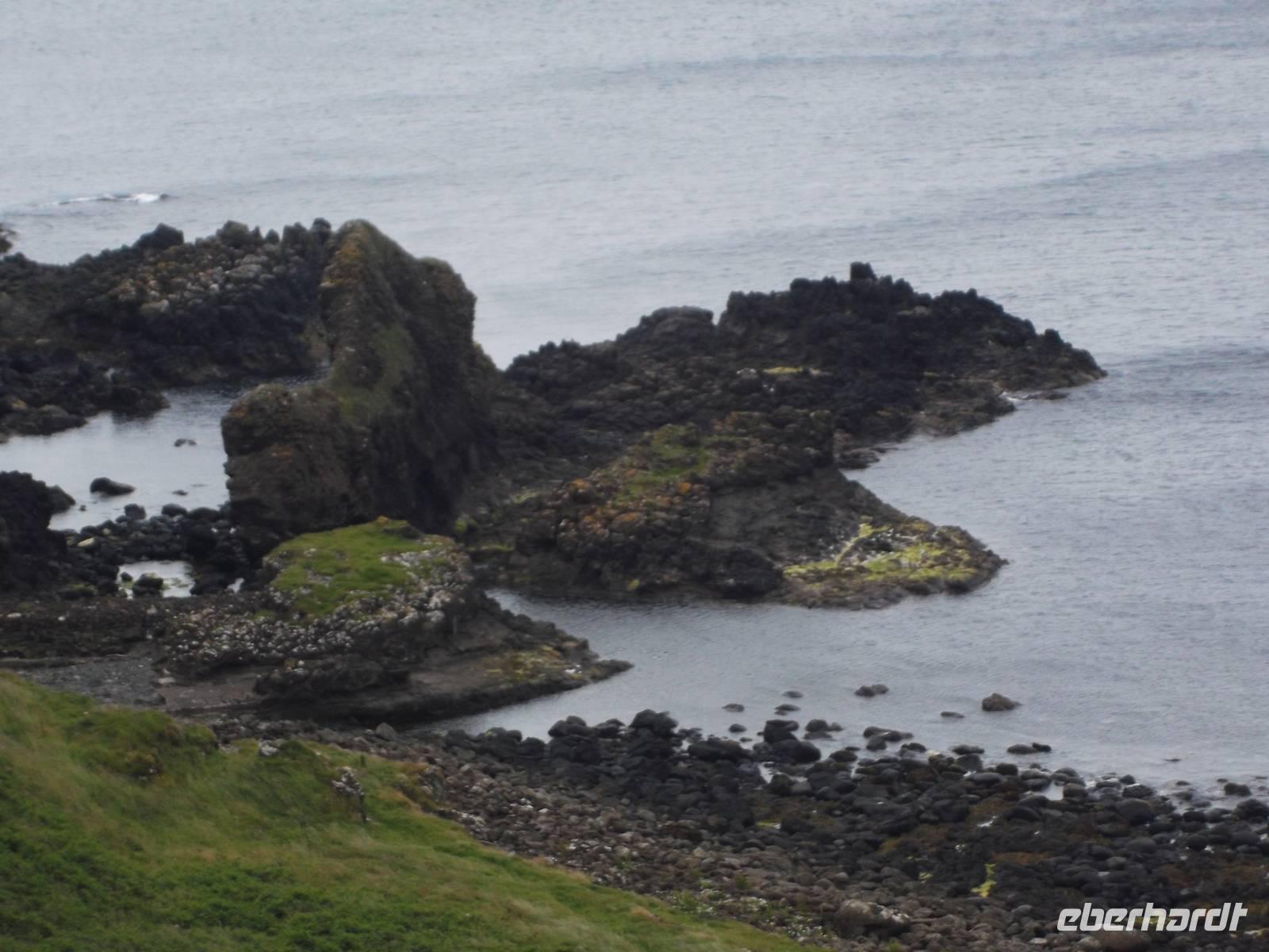 „ Abkühlungsphänomen mit Spannungsrissen", entstanden aus heißer Lava - so erklären Geologen das Phänomen des regelmäßig geformten Basalts, in dessen Formationen man mit etwas Phantasie die verschiedensten Figuren erkennen kann. Trotz immer mal wieder drohender Regenwolken war es aber leidlich trocken, als wir auf unseren Spaziergängen an der Basaltküste den phantastischen Felsgebilden und den mit ihnen verbundenen Legenden nachspürten. Im vor kurzem neu errichteten Besucherzentrum gibt es nicht nur einen großen Souvenirshop, sondern man erfährt hier viel Wissenswertes über Entstehung, Bedeutung und touristische Höhepunkte des „Giants Causeway".