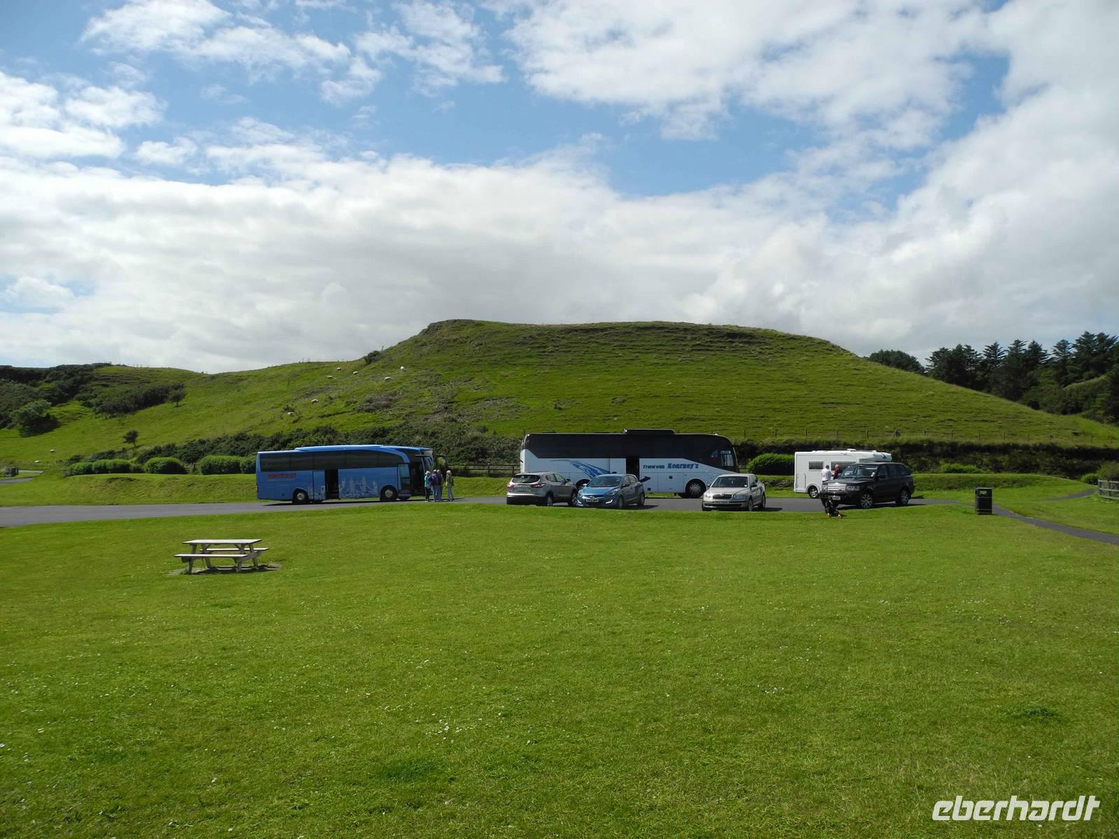 Nun wollen wir endlich das eigentliche Irland erleben, wie wir es schon oft auf Bildern oder in Berichten gesehen haben.Wir fahren an der Ostküste von Irland hoch bin Richtung Norden, vorbei an der Stadt Dundalk, bis wir kurz vor Belfast auf einem riesigen Parkplatz unsere erste Kaffee- und Würstelpause einlegen.Kaum angehalten sehen wir, dass hier ein Familienvater diesen Parkplatz als Rennparcours für Zweiräder nutzt, auf denen selbst die kleinen Kinder bereits mit Renngefährten herum brausen. Das Ganze sieht doch ziemlich gefährlich aus aber der Vater erklärt uns lachend, dass das schon alles in Ordnung sei und die Kinder bereits Motorradrennen fahren würden in Irland.