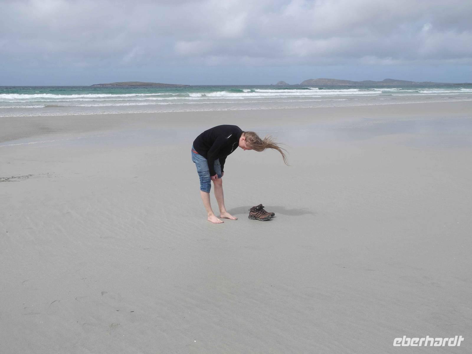 Nach diesem kleinen aber besonderen Zwischenstopp zieht es uns an den endlos langen Sandstrand "Inch Beach" an dem wir lange Spaziergänge genießen und uns vor dem Besteigen unseres Busses danach von Rainer die Schuhe abbürsten lassen müssen.