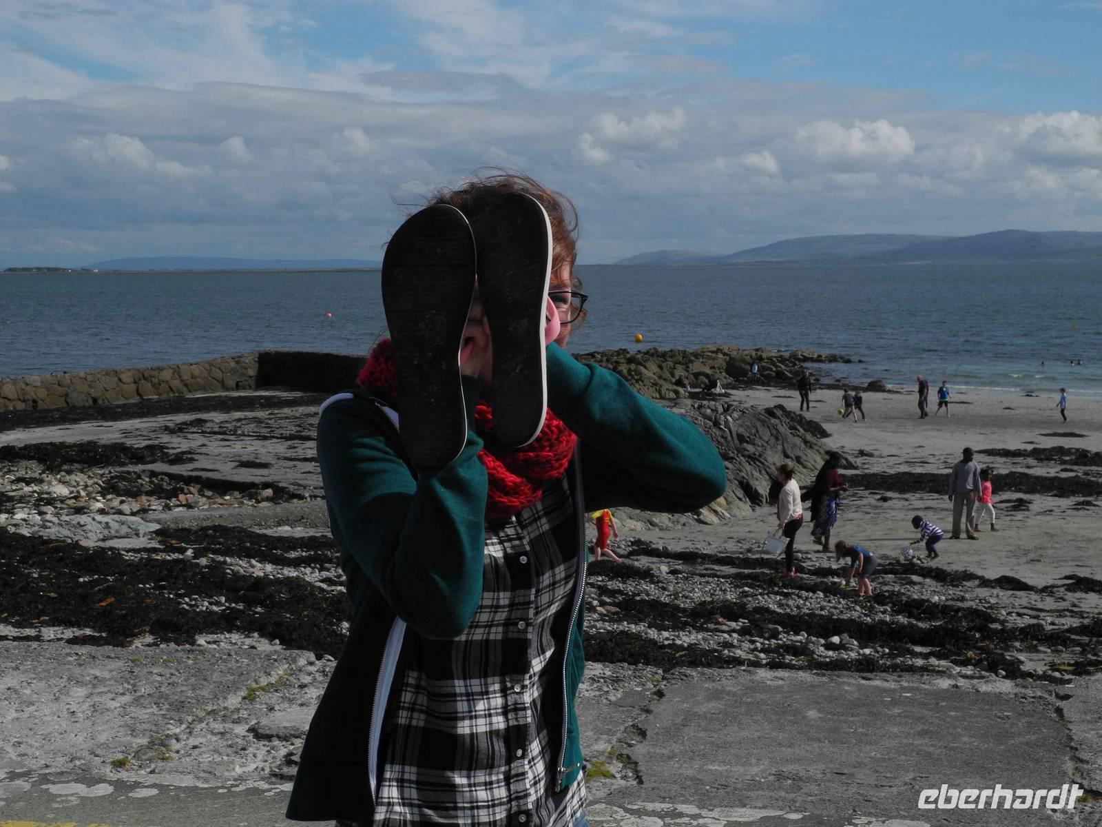 Dort spazieren wir die Promenade entlang, teilweise sogar bis zum Ende der Promenade, wo die sogenannte "Kickwall" wartet, eine Wand wogegen die Einheimischen treten um danach wieder zurück in die Stadt Galway zu spazieren. Ein etwas schräg anmutender aber schöner Brauch, dem wir uns natürlich auch unterwerfen.