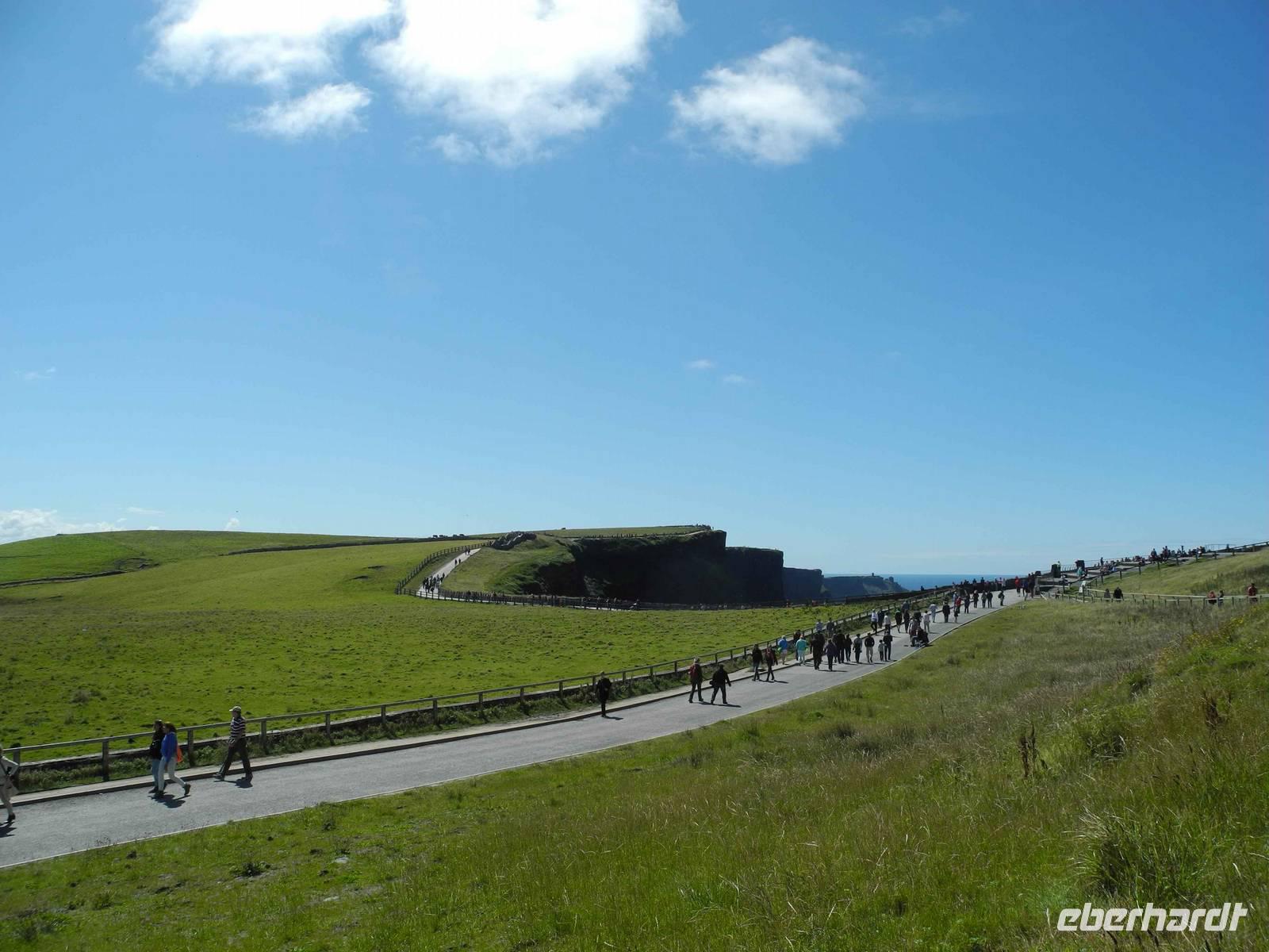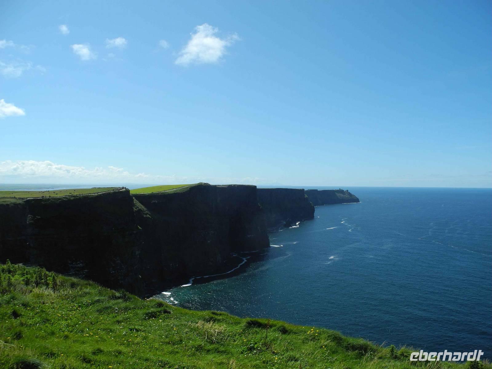 Als Zugabe erhalten wir die Cliffs of Moher bei absolutem Kaiserwetter. Ein Erlebnis, das seinesgleichen sucht, wenn man diese steil aus dem Meer ragenden, hohen Klippen bei solchem Wetter und Licht sehen darf.