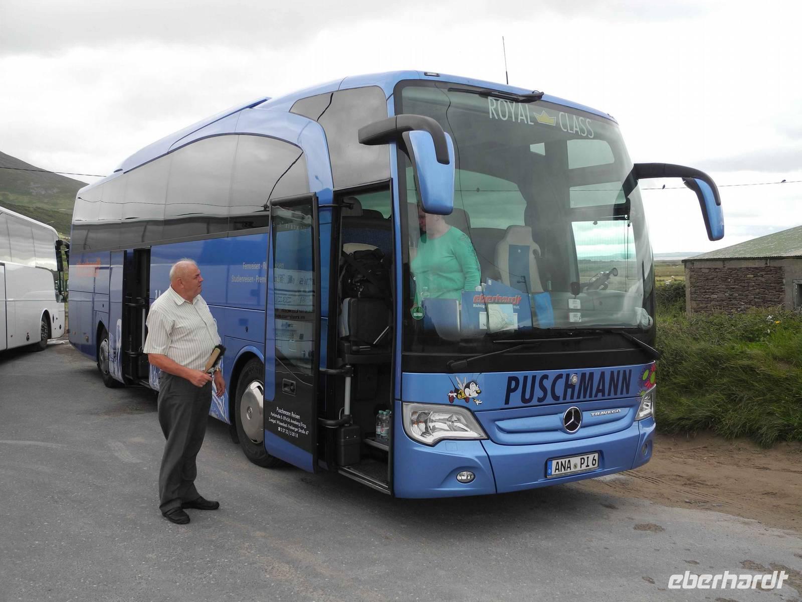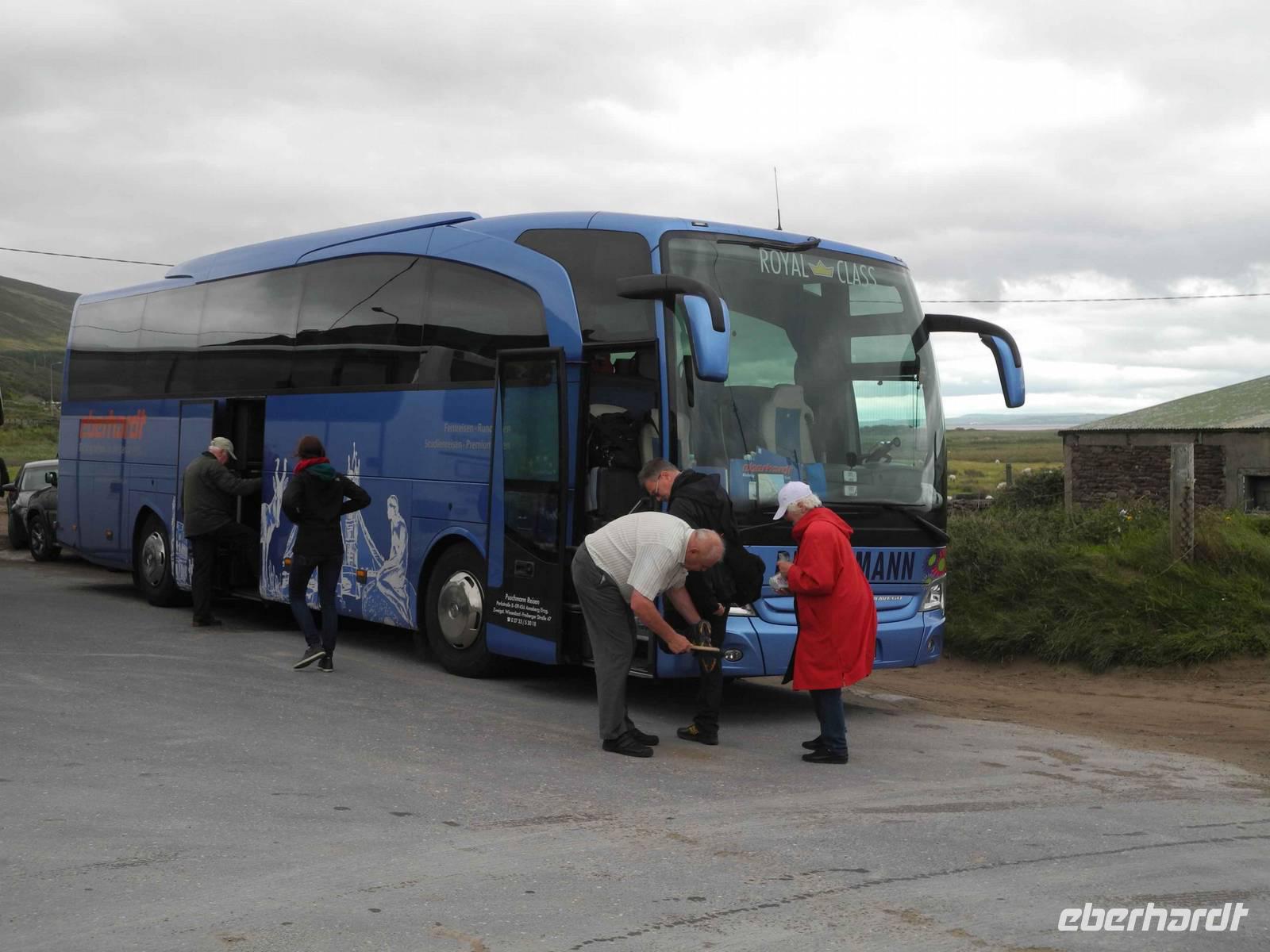 Heute muss unser Busfahrer Rainer vorschriftsgemäß einen Ruhetag einlegen und wir fahren mit unserem irischen Bus & -fahrer über Galway in Richtung Westküste nach Connemara.