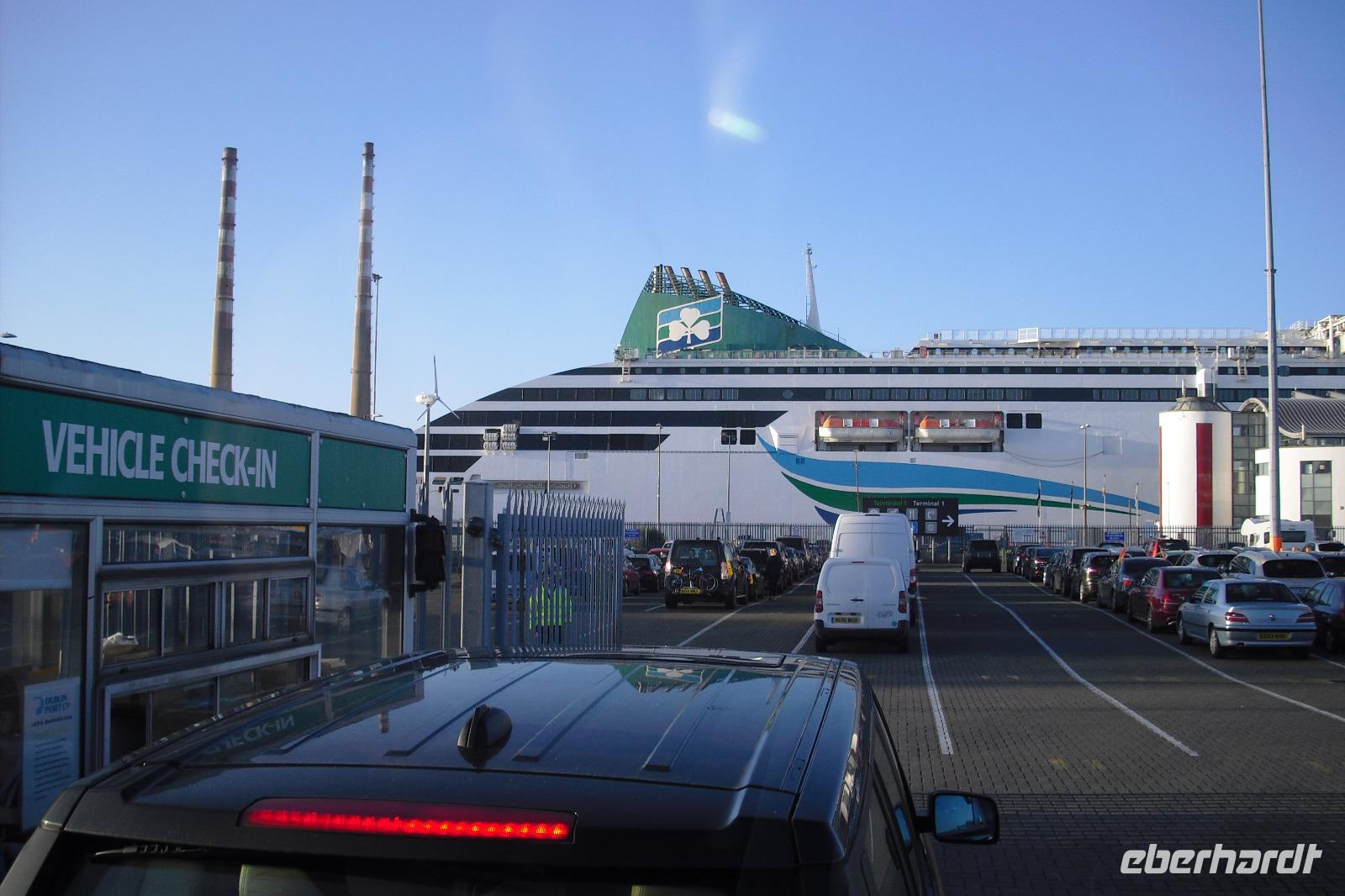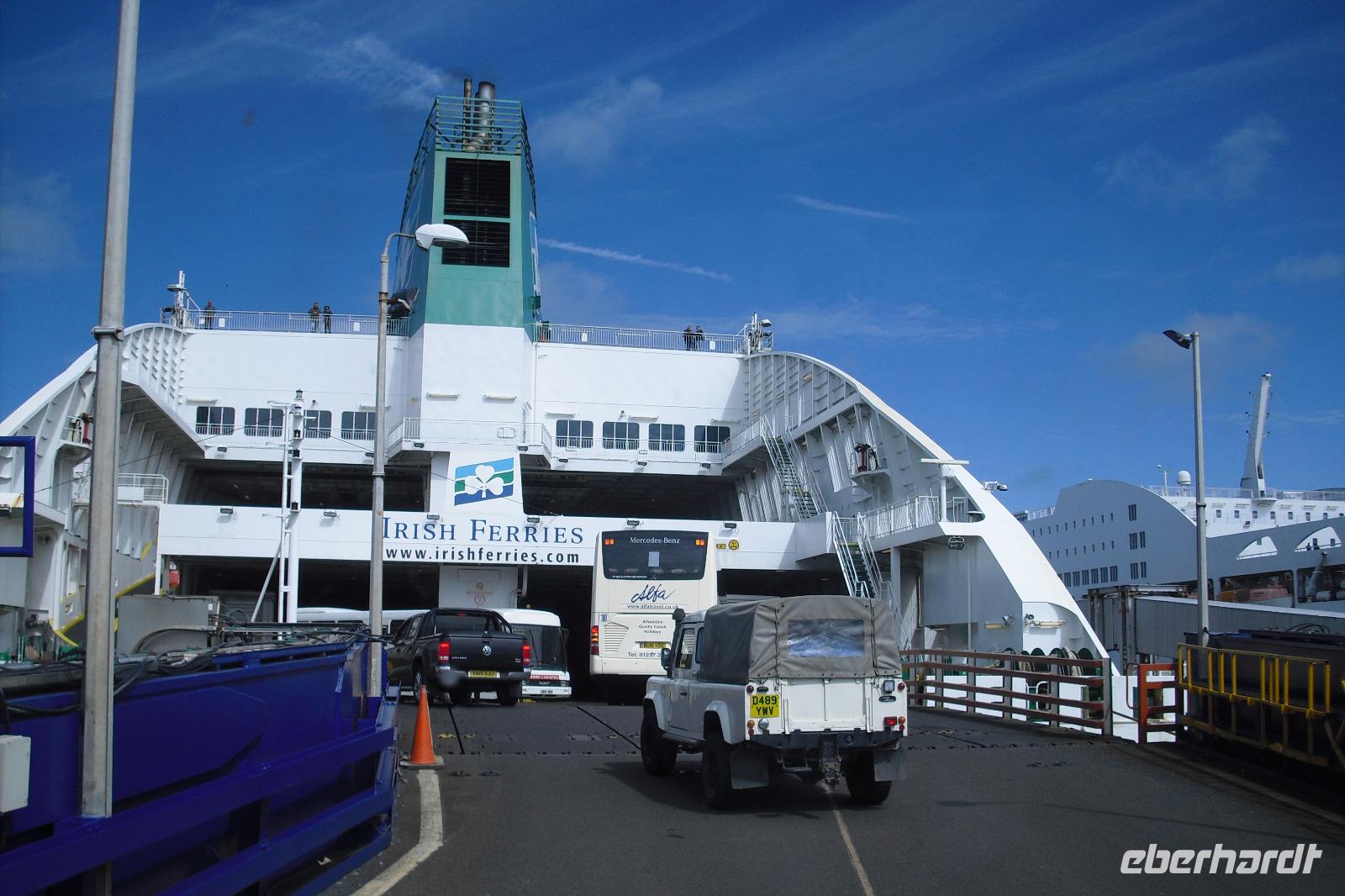 Nun war der Fährhafen in Holyhead und das Fährschiff "Ulysses" der Fährgesellschaft Irish Ferries unser Ziel. Mit diesem Schiff, die weltweit größte Autofähre, setzten wir über die irische See über nach Dublin und kamen auch sehr pünktlich an. Im nah des Hafens gelegenen Hotel bezogen wir unsere Zimmer, begrüßten unsere Flugreisegäste und erhielten unser Abendessen. Nach dem Abendessen ergab sich noch Gelegenheit, der Stimme und der Gitarre von Fairydust zu lauschen. Wir waren in Irland angekommen.