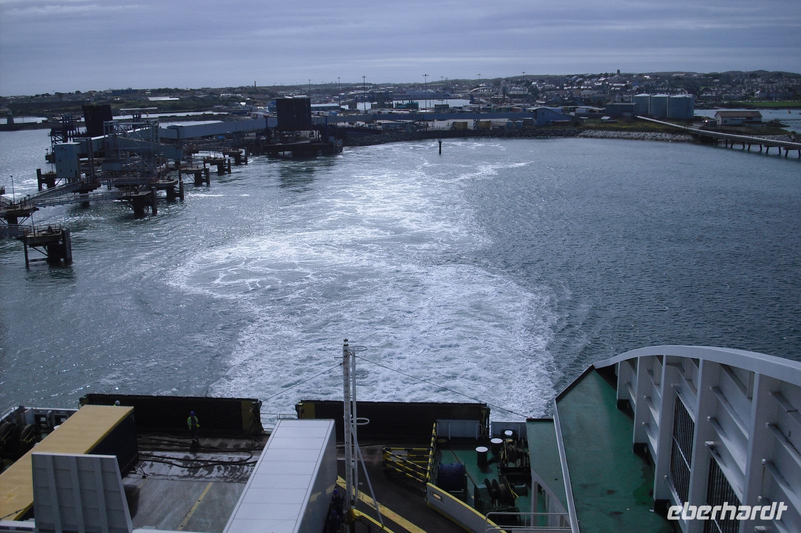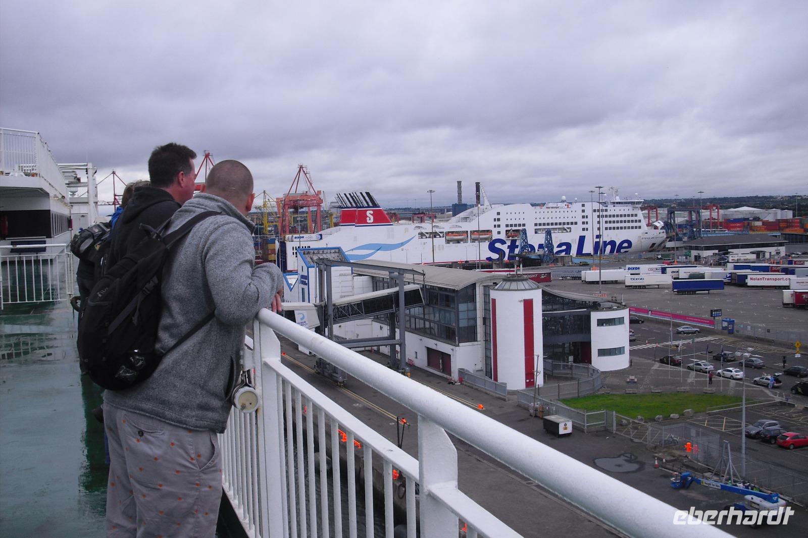 Mit einem Weckruf und einem frühen Frühstück begann der Tag für die Busreisegäste. Das Gepäck mußte wohlsortiert verstaut werden und unsere Fähre legte planmäßig um 8.05 Uhr in Dublin Port ab. Welch eine freudige Überraschung bei der Ausfahrt vom Hotel, zwei Flugreisegäste winkten uns nochmals als Abschied zu - unglaublich!