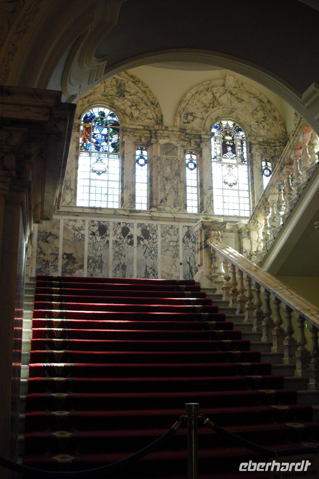 Erster Halt wurde an der City Hall gemacht und wir konnten das Rathaus innen bewundern. Zwischen 1896 und 1909 im neoklassizistischen Stil erbaut, ist die City Hall das wohl beeindruckenste spätviktorianische Bauwerk der Stadt. Auch dem "Big Ben" von Belfast statteten wir einen Besuch ab - der Albert Memorial Clock Tower wurde 1865 zum Gedenken an den Prinzgemahl von Königin Victoria errichtet. Willie zeigte uns auch beeindruckende und zugleich ein wenig beängstigende Wandbilder in der Stadt, die Positionen unterschiedlicher Menschengruppen in einer fragilen Balance des Friedensprozesses in Nordirland zum Ausdruck bringen. Bei bestem Begleitwetter besichtigten wir das Hafengebiet von Belfast, wo man 2012 ein TITANIC - MUSEUM eröffnete. Sehr gelungen! Auch das Parlamentsgebäude - The Stormont - besuchten wir am Rand von Belfast. Sehr, sehr schön. Hier entstand unser Gruppenfoto. Schließlich zeigte uns Willie noch den schönsten Pub in Belfast "Crown Liquor Saloon", den viele nach dem Abendessen im nahe gelegenen Hotel noch besuchten. Wir verabschiedeten uns von Willie, bezogen unsere Hotelzimmer und erhielten rasch das Abendessen. Ein abwechslungsreicher Tag mit dem Besuch zweier Hauptstädte ging zu Ende.