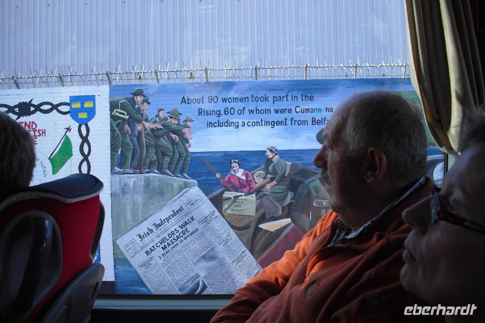 Der späte Nachmittag und frühe Abend gehörte dem Kennenlernen von Belfast. Willie erwartete uns am Hotel und wir machten eine Stadtrundfahrt mit Fotostopps und Ausstiegen.