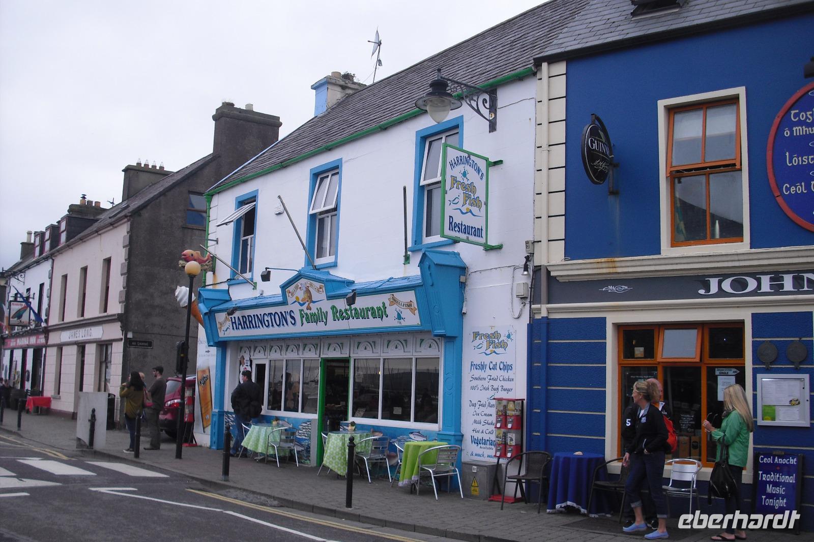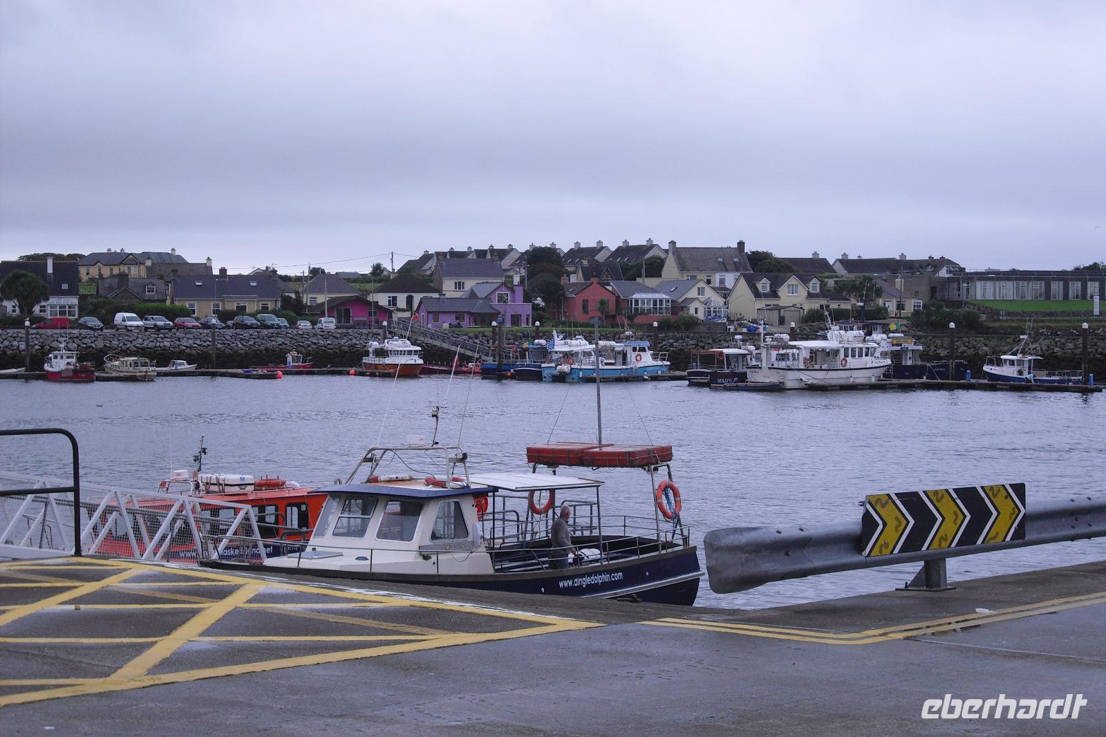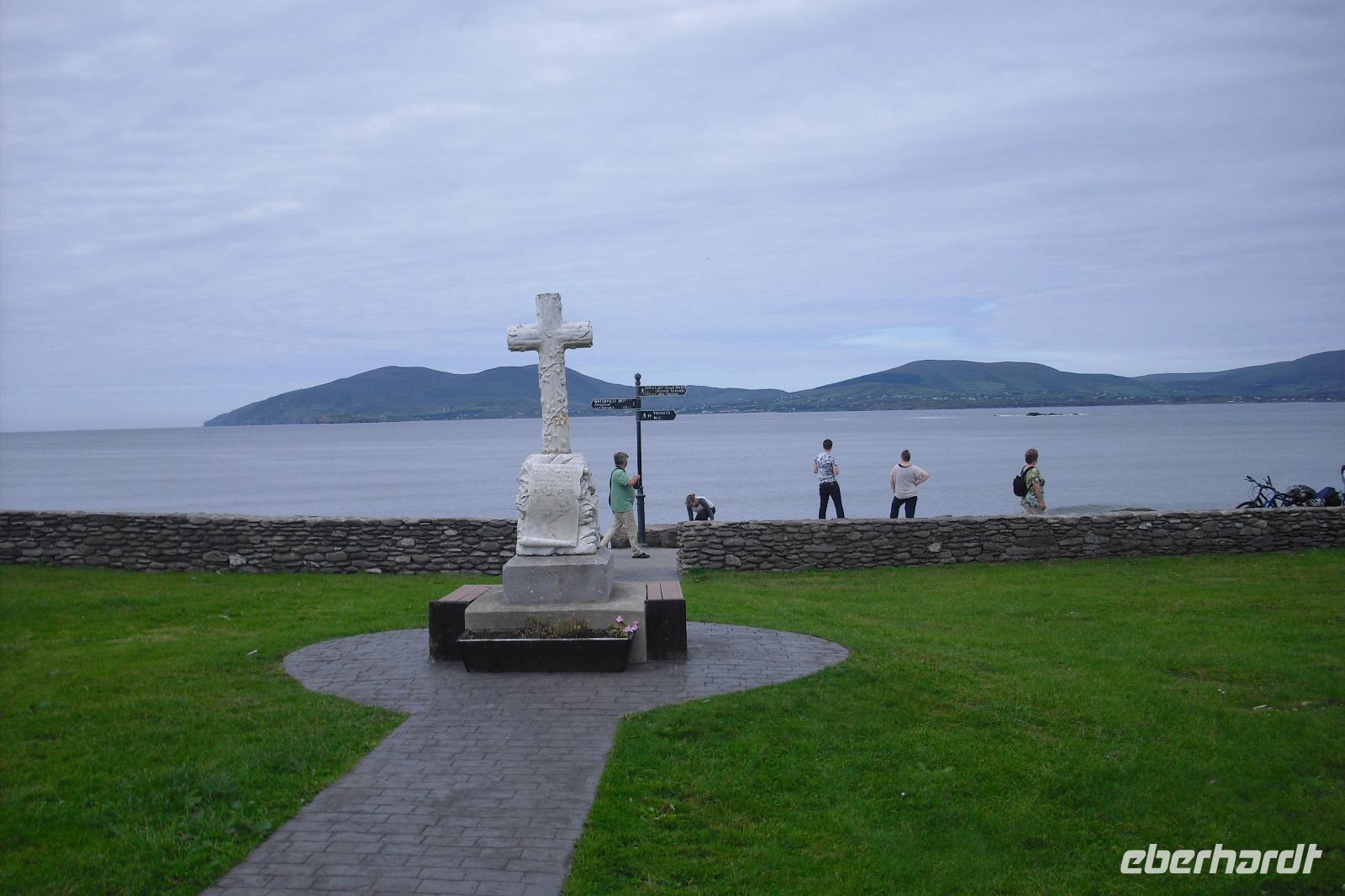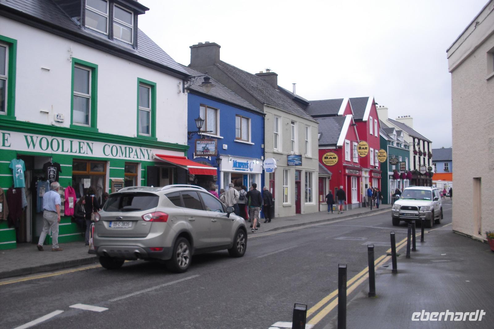 Deutlich kleiner als die Iveragh-Halbinsel (Ring of Kerry am Vortag ) besuchten wir auf unserer Tagestour die Dingle-Halbinsel. Sie erstreckt sich als Gebirgszunge ca. 50 km in den Atlantik, ist einsam, karg, gewaltig und von den ständig wechselnden Stimmungen des Atlantik geprägt. Und genau das sollten wir an diesem Tag erleben, ja bestaunen. Diese atemberaubende Landschaft mit dichten Fuchsienhecken, mit ganzen "Feldern" der Montbretia und den weitläufigen Torfflächen mit einem Teppich aus Heidekraut überzogen, zog uns in ihren Bann. Schon ein erster Fotostopp bot ein Naturschauspiel. Eine neblige Wand hob sich, die Sonne versuchte sich durchzukämpfen und es baute sich ein Regenbogen auf. Beim zweiten Fotostopp lag eine Nebeldecke über uns, aber eine fantastisch klare Sicht hatten wir über die Dingle-Bucht bis zur Iveragh-Halbinsel hinüber. Unglaublich! Nach einem Servicestopp in Dingle fuhren wir entlang des Slea Head Drive und Kersten hatte alle Mühe, mit dichtem Nebel und der engen, felsigen Fahrstraße sowie dem Gegenverkehr auszukommen. Wie er auch das wieder machte, einfach toll. Wir fühlten uns in seinen Fahrerhänden jederzeit sicher. Am Slea Head View Point machten wir einen weiteren Fotostopp und sahen ......nichts! Ein nächster Fotostopp wurde gegenüber der Blasket Insel gemacht, im Nebel. Nur zwei einsame Ladies saßen in ihren Autos und boten wassergeschützt Kuchen und Schmuck an. Und eine zeigte uns auf ihrem mobile phone, wie die Sicht zur Blasket Insel bei schönerem Wetter ist. Zahlreich entstanden Fotos vom Foto und .... und ... und es passierte Unglaubliches! Der Nebel riß auf und aller zehn Sekunden bot sich die Blasket Insel in klarerer Kontur dar. Nun konnte jeder Reisegast noch ein Originalfoto machen. Nach einem Serviceaufenthalt im Blasket Centre sind wir dann nach Dingle gefahren und haben den Ort ausführlich erkundet. Er lebt natürlich vom Tourismus und das merkten wir auch an der Menschenmenge. Bunte Häuserfassaden, Souvenierläden, zahlreiche Pubs sowie jede Menge Fotomotive entdeckten wir auf der Pirsch durch den Ort. Die Rückfahrt zum Hotel wählten wir über Inch Beach. Hier sind ganz mutige Gäste im Wasser des Atlantik baden gegangen. In unserem Hotel angekommen gab es heute ein früher angesetztes Abendessen, ein großer Teil unserer Reisegruppe besuchte später das Irish National Theatre-Siamsa Tire. Auf dem Programm dieses Abends stand für uns Fado Fado. Eine faszinierende Darbietung irischen Lebens in verschiedenen Jahreszeiten und die Erinnerung, daß sich alles im Leben, was wir kennen,lieben und feiern, im Zyklus wiederholt.