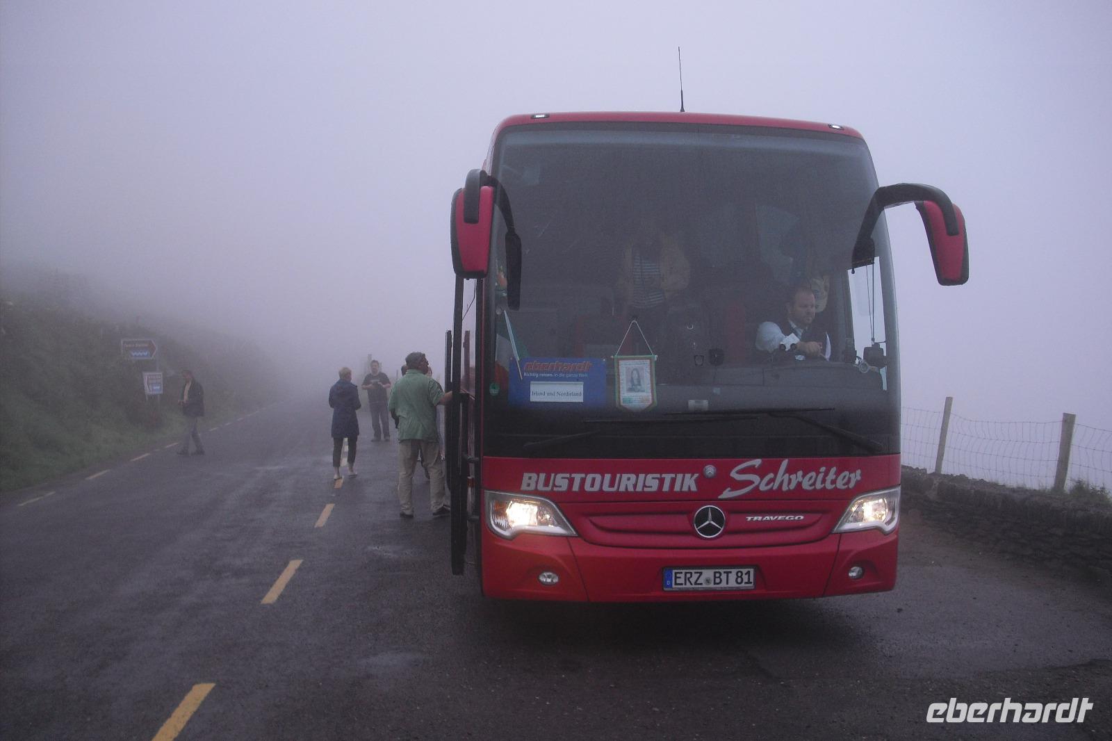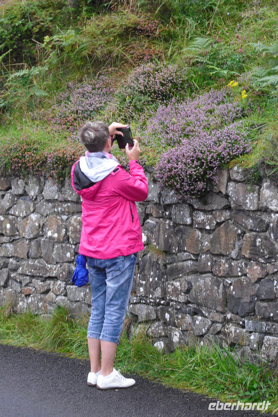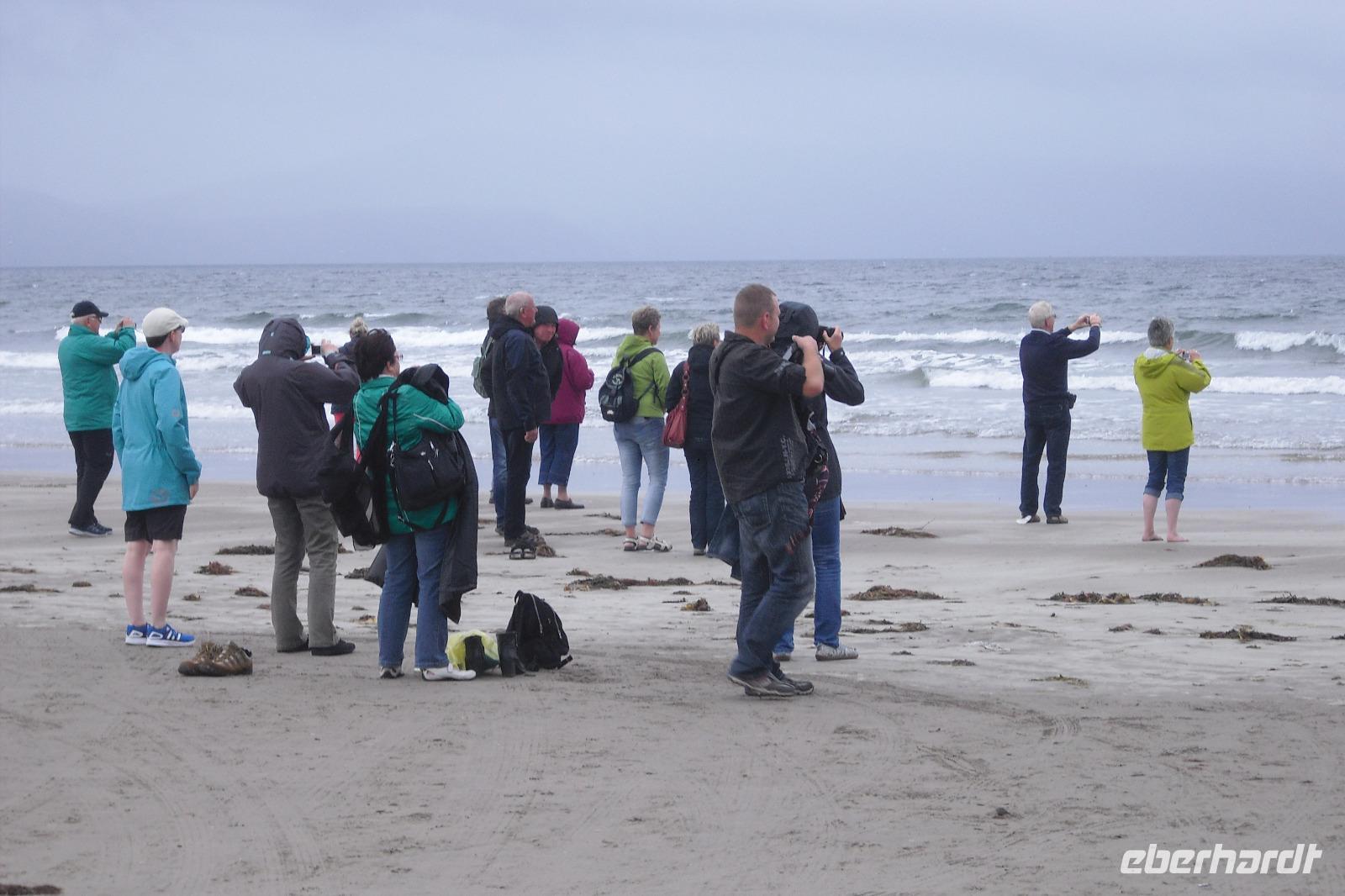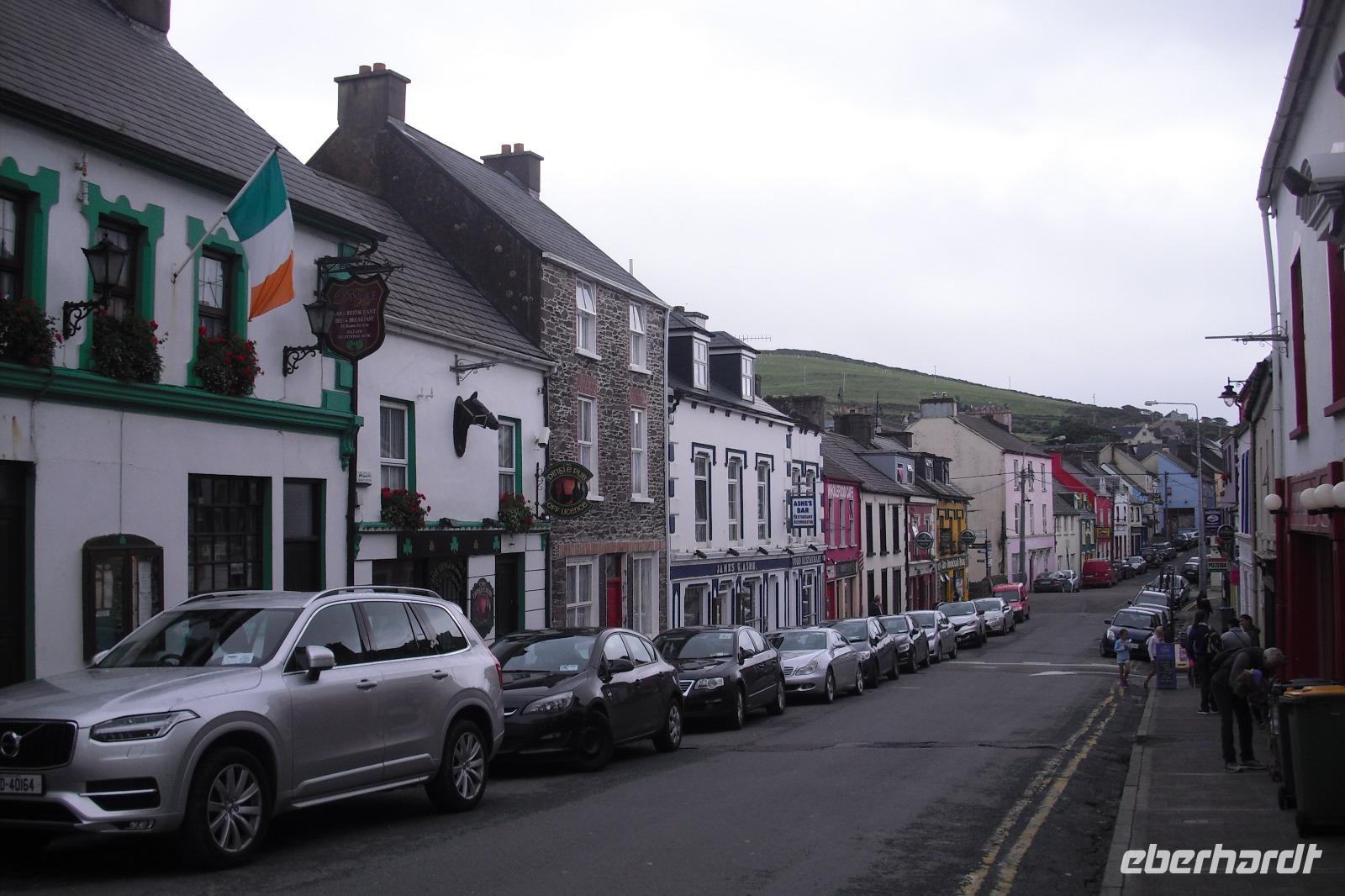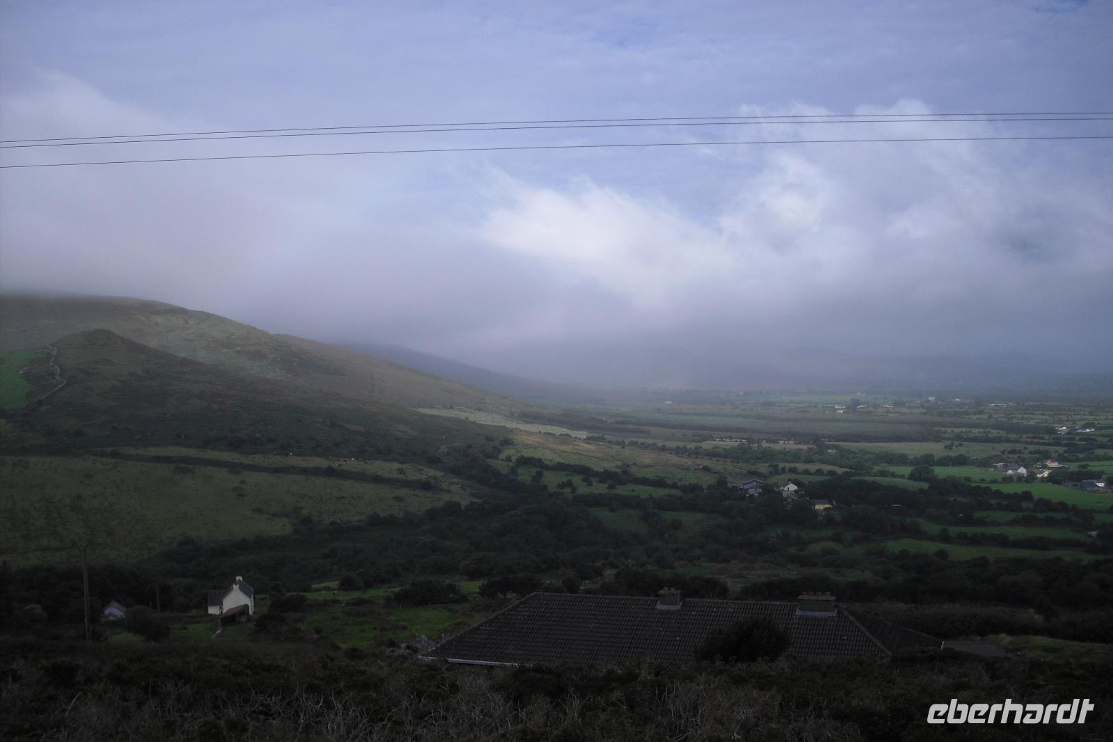 Deutlich kleiner als die Iveragh-Halbinsel (Ring of Kerry am Vortag ) besuchten wir auf unserer Tagestour die Dingle-Halbinsel. Sie erstreckt sich als Gebirgszunge ca. 50 km in den Atlantik, ist einsam, karg, gewaltig und von den ständig wechselnden Stimmungen des Atlantik geprägt. Und genau das sollten wir an diesem Tag erleben, ja bestaunen. Diese atemberaubende Landschaft mit dichten Fuchsienhecken, mit ganzen "Feldern" der Montbretia und den weitläufigen Torfflächen mit einem Teppich aus Heidekraut überzogen, zog uns in ihren Bann. Schon ein erster Fotostopp bot ein Naturschauspiel. Eine neblige Wand hob sich, die Sonne versuchte sich durchzukämpfen und es baute sich ein Regenbogen auf. Beim zweiten Fotostopp lag eine Nebeldecke über uns, aber eine fantastisch klare Sicht hatten wir über die Dingle-Bucht bis zur Iveragh-Halbinsel hinüber. Unglaublich! Nach einem Servicestopp in Dingle fuhren wir entlang des Slea Head Drive und Kersten hatte alle Mühe, mit dichtem Nebel und der engen, felsigen Fahrstraße sowie dem Gegenverkehr auszukommen. Wie er auch das wieder machte, einfach toll. Wir fühlten uns in seinen Fahrerhänden jederzeit sicher. Am Slea Head View Point machten wir einen weiteren Fotostopp und sahen ......nichts! Ein nächster Fotostopp wurde gegenüber der Blasket Insel gemacht, im Nebel. Nur zwei einsame Ladies saßen in ihren Autos und boten wassergeschützt Kuchen und Schmuck an. Und eine zeigte uns auf ihrem mobile phone, wie die Sicht zur Blasket Insel bei schönerem Wetter ist. Zahlreich entstanden Fotos vom Foto und .... und ... und es passierte Unglaubliches! Der Nebel riß auf und aller zehn Sekunden bot sich die Blasket Insel in klarerer Kontur dar. Nun konnte jeder Reisegast noch ein Originalfoto machen. Nach einem Serviceaufenthalt im Blasket Centre sind wir dann nach Dingle gefahren und haben den Ort ausführlich erkundet. Er lebt natürlich vom Tourismus und das merkten wir auch an der Menschenmenge. Bunte Häuserfassaden, Souvenierläden, zahlreiche Pubs sowie jede Menge Fotomotive entdeckten wir auf der Pirsch durch den Ort. Die Rückfahrt zum Hotel wählten wir über Inch Beach. Hier sind ganz mutige Gäste im Wasser des Atlantik baden gegangen. In unserem Hotel angekommen gab es heute ein früher angesetztes Abendessen, ein großer Teil unserer Reisegruppe besuchte später das Irish National Theatre-Siamsa Tire. Auf dem Programm dieses Abends stand für uns Fado Fado. Eine faszinierende Darbietung irischen Lebens in verschiedenen Jahreszeiten und die Erinnerung, daß sich alles im Leben, was wir kennen,lieben und feiern, im Zyklus wiederholt.