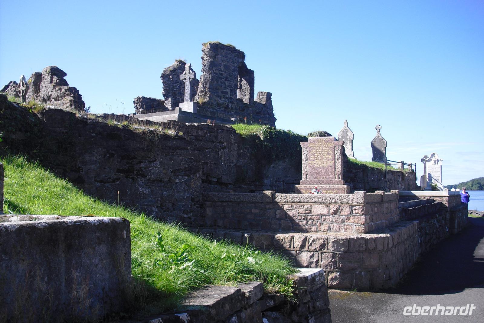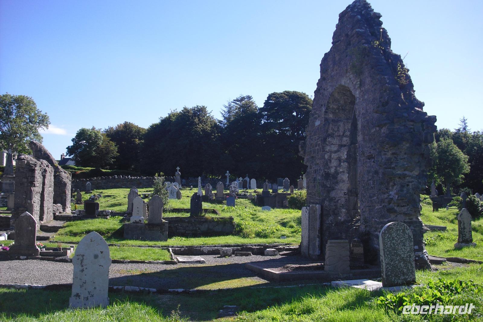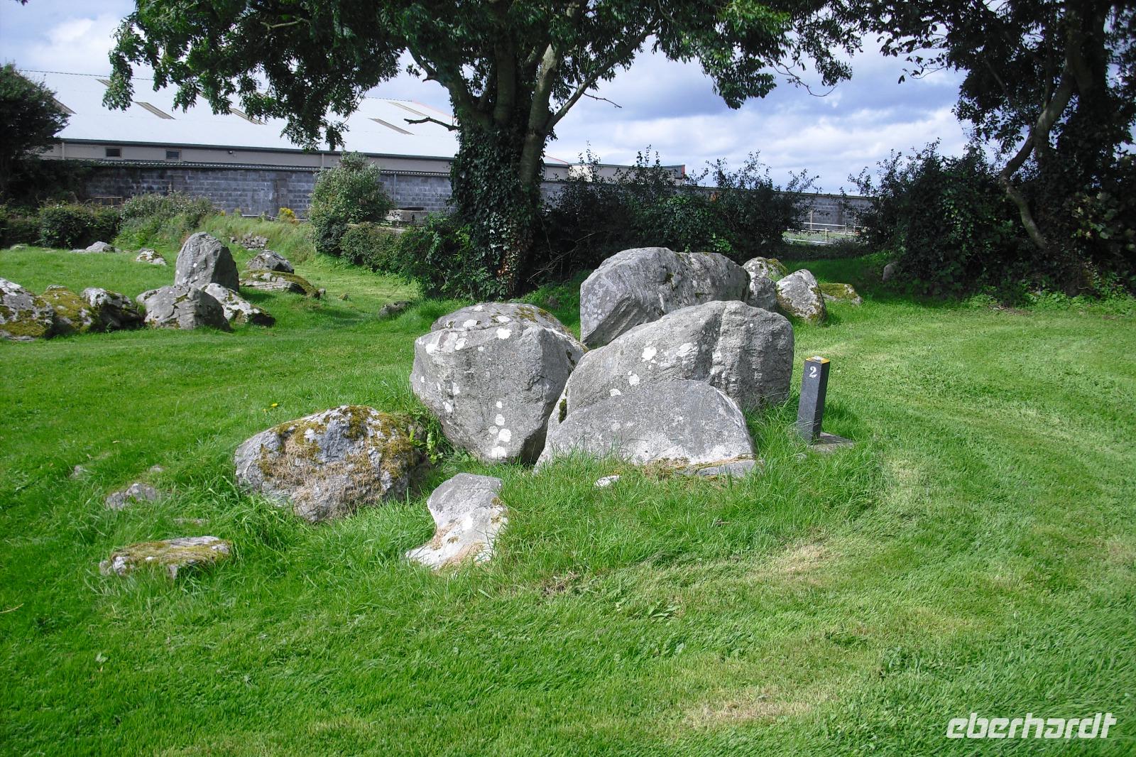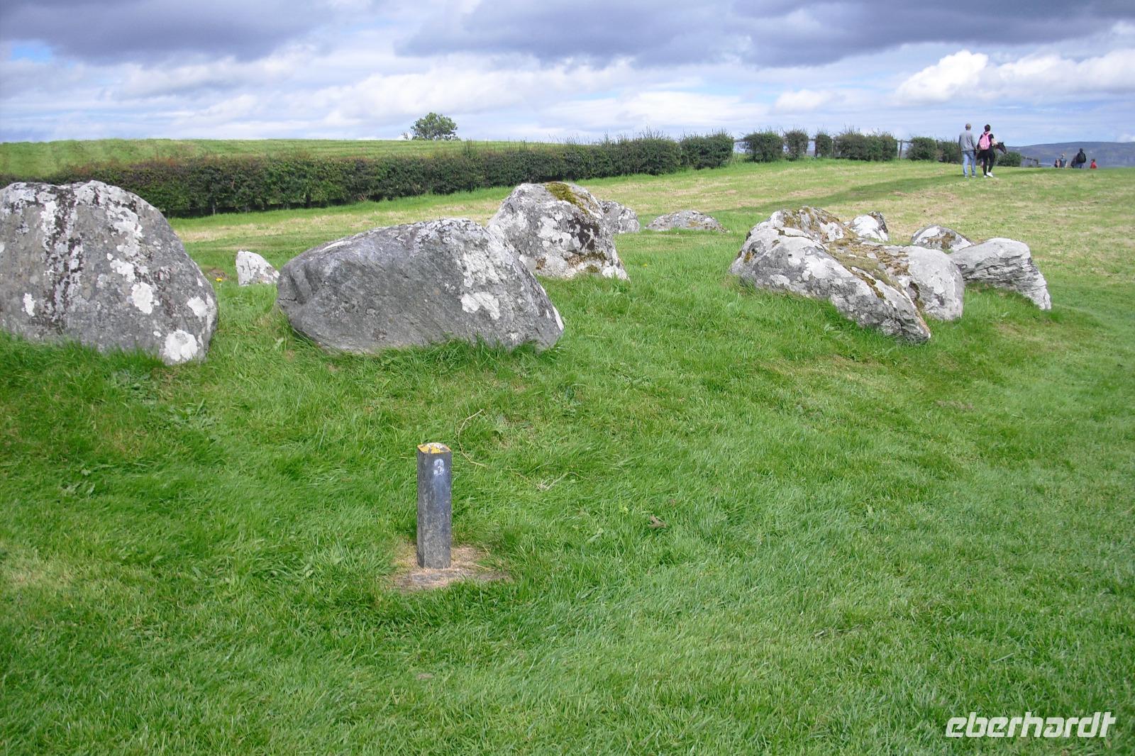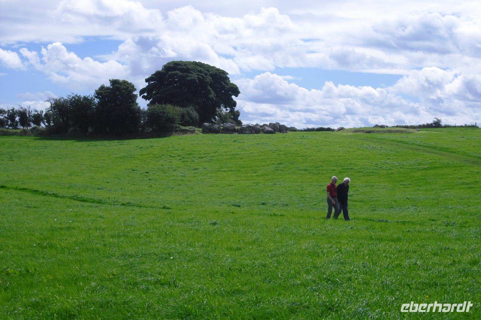 Erneut brach wettermäßig und auch sonst ein herrlicher Tag an, zunächst mit dem Frühstück und dann die Abfahrt nach Donegal. Hier machten wir eine Pause, besorgten dieses oder jenes - z.B.Briefmarken. Die kleine farbenfrohe Ortschaft am Eske River war einst Stammsitz des O´Donnell Clans und noch heute kann das Castle besichtigt werden. Die Burg wurde um 1474 gebaut, Teile im Laufe der Jahrhunderte zerstört oder umgebaut. Lediglich ein kleiner Turm am Westende ist noch Teil der alten Burg. Imposant auch die Ruinen einer alten Abtei. Hier schrieben Mönche 1632-1636 die berühmten "Annals of the Four Masters", eine Geschichte der Welt bis zum Jahr 1616. Unsere Kenntnisse über das alte Irland verdanken wir diesen Aufzeichnungen. Vorbei am Grab von W.B. Yeats in Drumcliff unter dem Ben Bulben fuhren wir nun durch Sligo zu den megalithischen Gräbern von Carrowmore. Dieser Friedhof gehört zu 4 großen irischen Friedhöfen der sogenannten Ganggrab-Tradition. Die anderen sind das Boyne Valley Centre, Loughcrew und Dowth. Heute findet man in Carrowmore ungefähr 30 Gräber in unterschiedlichem Zustand. Viele wurden im Laufe der Zeit dadurch zerstört, daß man sie als Steinbruch benutzte. Es gibt heute drei Haupttypen von Gräbern - Dolmen, kleinere Ganggräber und Steinkreise mit zentralen Grabkammern. Wir nahmen uns angemessen Zeit, um die historische Bedeutung des Friedhofes einordnen zu können.