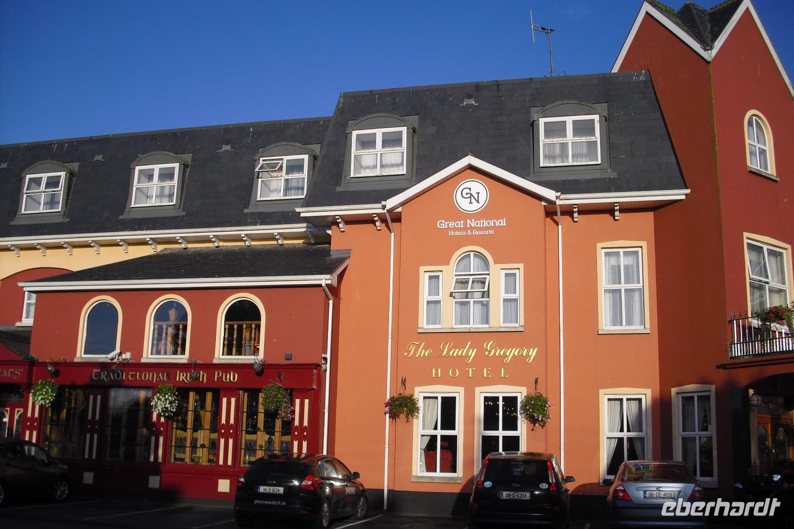 Die weitere Fahrt führte uns vorbei an Galway nach Gort. Hier gibt es mit Coole-Park einen Ort, der einen engen Bezug zu W.B. Yeats (Literaturnobelpreisträger und in Drumcliff Co.Sligo begraben) und Lady Gregory (im Hotel gleichen Namens haben wir zwei Nächte logiert) herstellt. Coole-Park war der Landsitz von Lady Gregory. Hier lud sie mit unermüdlicher Großzügigkeit Schriftsteller und Dramatiker ein, um sie zu beköstigen und mit ihnen ihre literarischen Werke zu besprechen. W.B. Yeats war zwanzig Jahre lang Sommer für Sommer ihr Gast und setzte Lady Gregory mit dem Gedicht "Coole Park" ein literarisches Denkmal. Mit einem kleinen Ausflug in die keltische Märchenwelt und dem Gesang unserer Fairy unter dem Autograph Tree - eine Rotbuche, in die berühmte Dichter ihre Initialen ritzten - beendeten wir den Nachmittagsspaziergang und fuhren zu unserem Hotel. Bald schon servierte man uns das Abendessen und einige Gäste beendeten den Tag mit einem Drink in der Hotelbar.