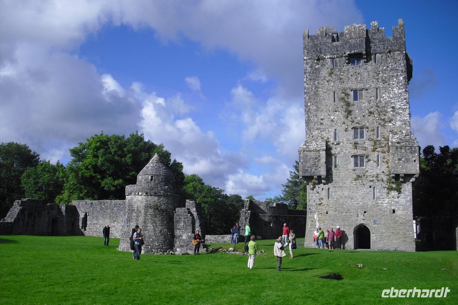 Nach unserem Frühstück erwartete uns John, der uns mit seinem irischen Bus auf die Tagestour begleitete. Kersten hatte heute Ruhetag, so sehen es die gesetzlichen Bestimmungen für Busfahrer in Europa vor. John fuhr uns zunächst zum Aughnanure Castle aus dem 16.Jh.- die auf einer felsigen Halbinsel stehende Burg gilt als ein besonders gut erhaltenes Beispiel eines irischen Turmhauses und wird mitunter als der schönste befestigte Wohnsitz an den Ufern des Lough Corrib beschrieben. In malerischer historischer Kulisse ließ nun Fairy ihre Stimme erklingen und bezauberte uns - unglaublich!
