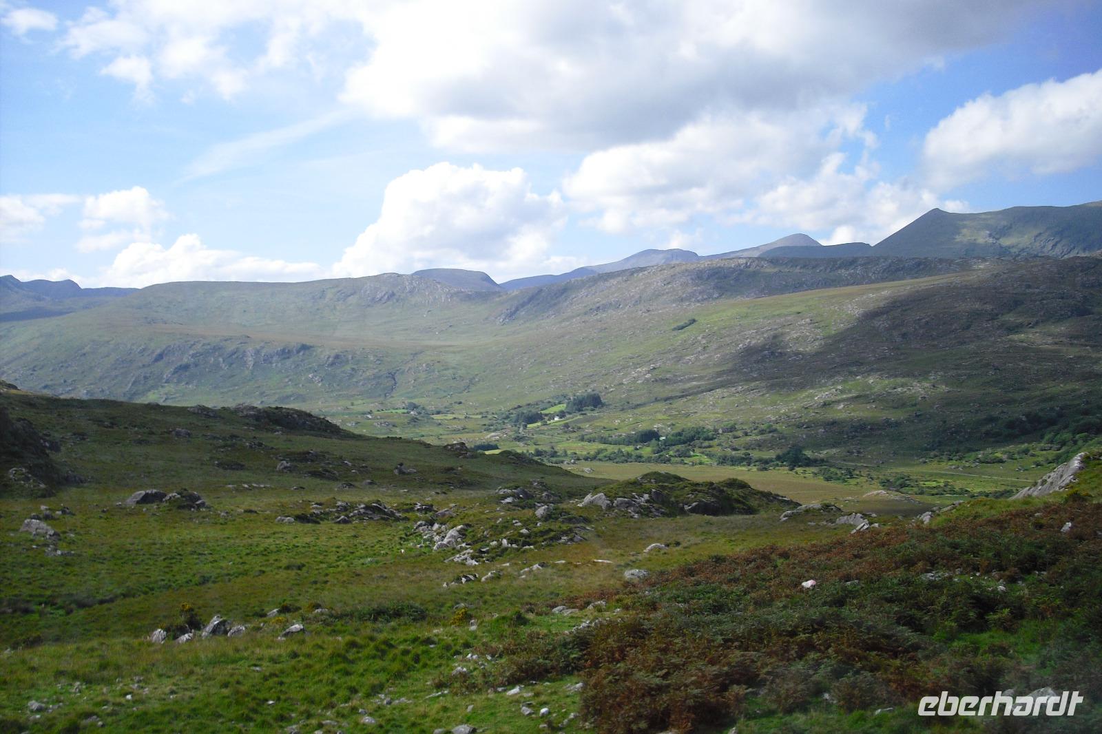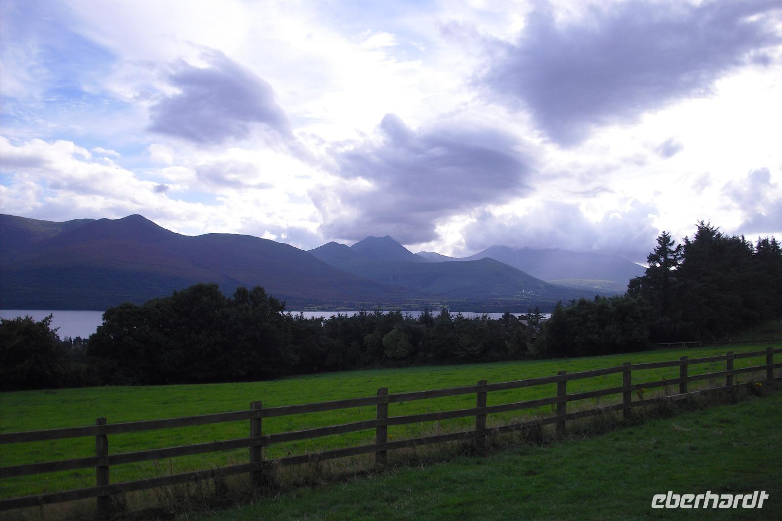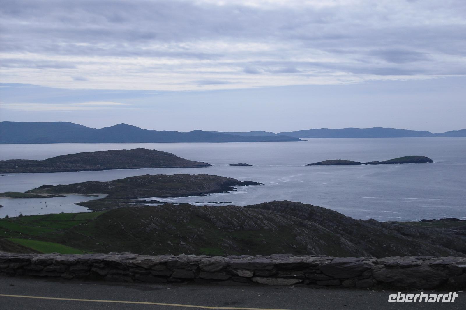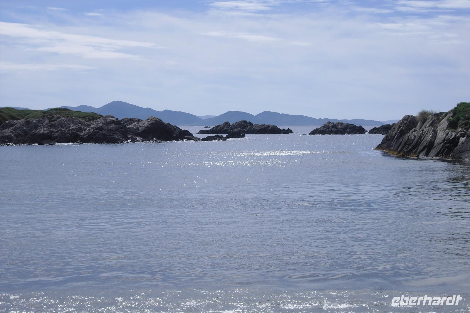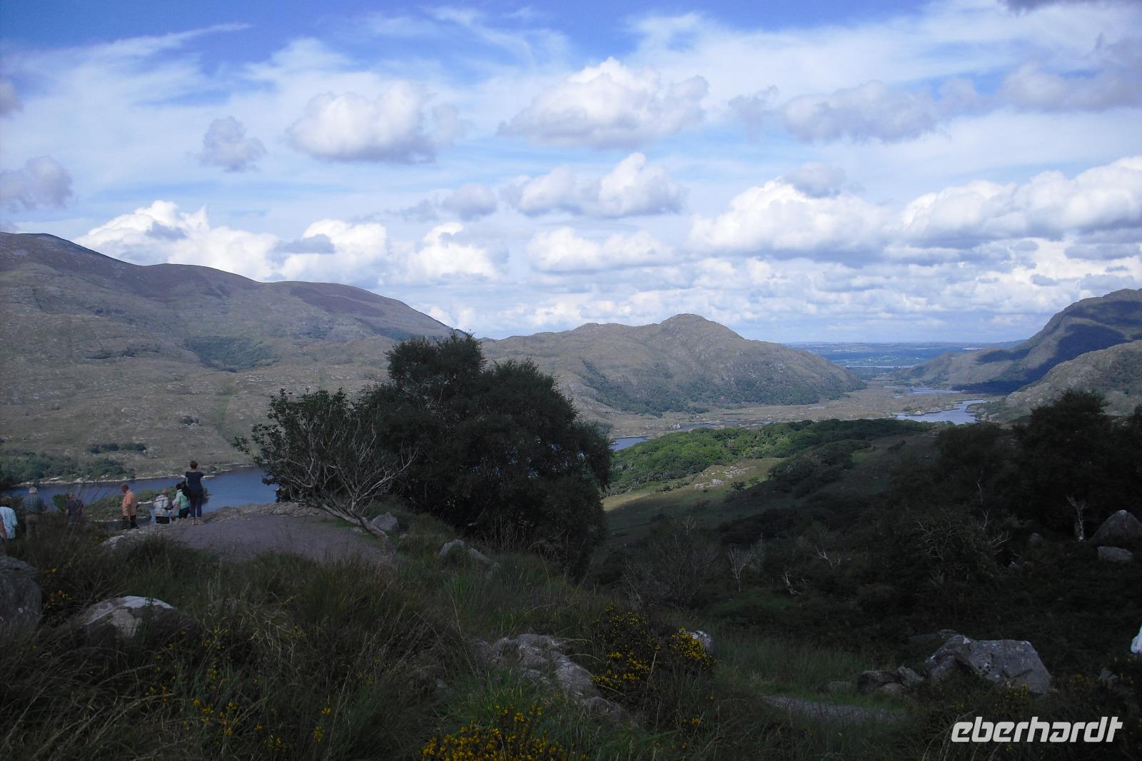 Zunächst, wie an jedem anderen Tag auch, unser Frühstück im Hotel. Wir starteten nach Killarney um Kathrin zu treffen, die Reiseleiterin für die Tagestour. Sie war und ist sehr kompetent mit ihren Aussagen und zeigte uns die schönsten Flecken, bei schönstem Wetter und bester Stimmung. Zur Stimmung trug, wie auch immer wieder an den Vortagen, unsere Fairy natürlich auch bei. Wir besuchten eine Schafsvorführung, wir erlebten in Waterville noch ein wenig vom Chaplin-Festival, wir bekamen unser Mittagessen mit Panoramablick, wir verweilten in Castle Cove am Strand mit Musik und (mindestens) Delfinen, wir konnten in Sneem ein leckeres Eis schlecken, wir genossen bei Musik und schönem Wetter den Blick auf die Muckross Seen vom Ladie´s View, wir bummelten durch die Gärten von Muckross House und beendeten die Tour mit einem Panoramablick auf die Macgillycuddy´s Reeks. Was bitte noch mehr? Das wäre nicht auszuhalten! Im Hotel angekommen erhielten wir wieder zügig das Abendessen und anschließend verzauberte uns Fairy mit ihrer Stimme und ihrem Instrument im Princess Room unseres Hotel. Selbst österreichische Touristen lauschten gebannt. Was für ein toller Tag - unglaublich.