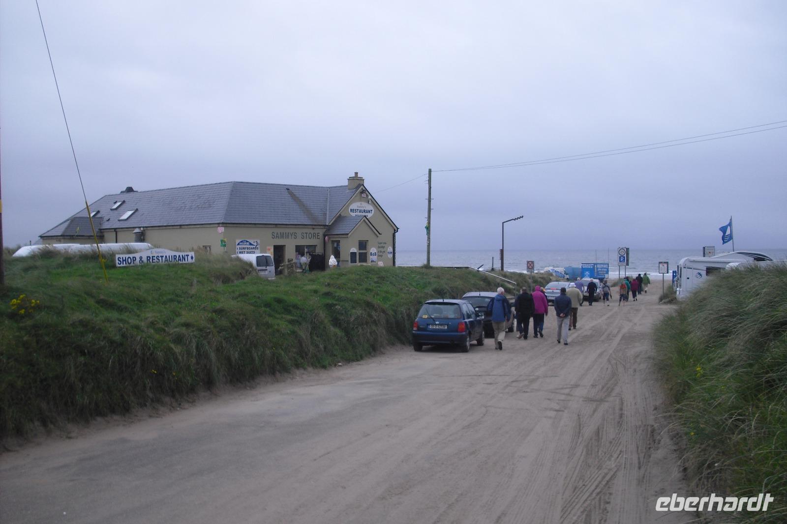 Nächster Stopp, auch weil wieder Entspannungspause anstand, war in Knock. Knock ist Irlands bekanntester Wallfahrtsort. 1879 hatten Gläubige eine Erscheinung. Sie sahen den heiligen Josef, die Jungfrau Maria und Johannes den Täufer. Nach kirchlichen Untersuchungen und Befragungen wurde dieses tiefreligiöse Ereignis bestätigt, Knock wurde zum Pilgerort und erhielt 1979 eine gewaltige Basilika. Zu Ehren der Jungfrau Maria wird die Stadt heute auch Cnoc Mhuire genannt - Marias Berg.