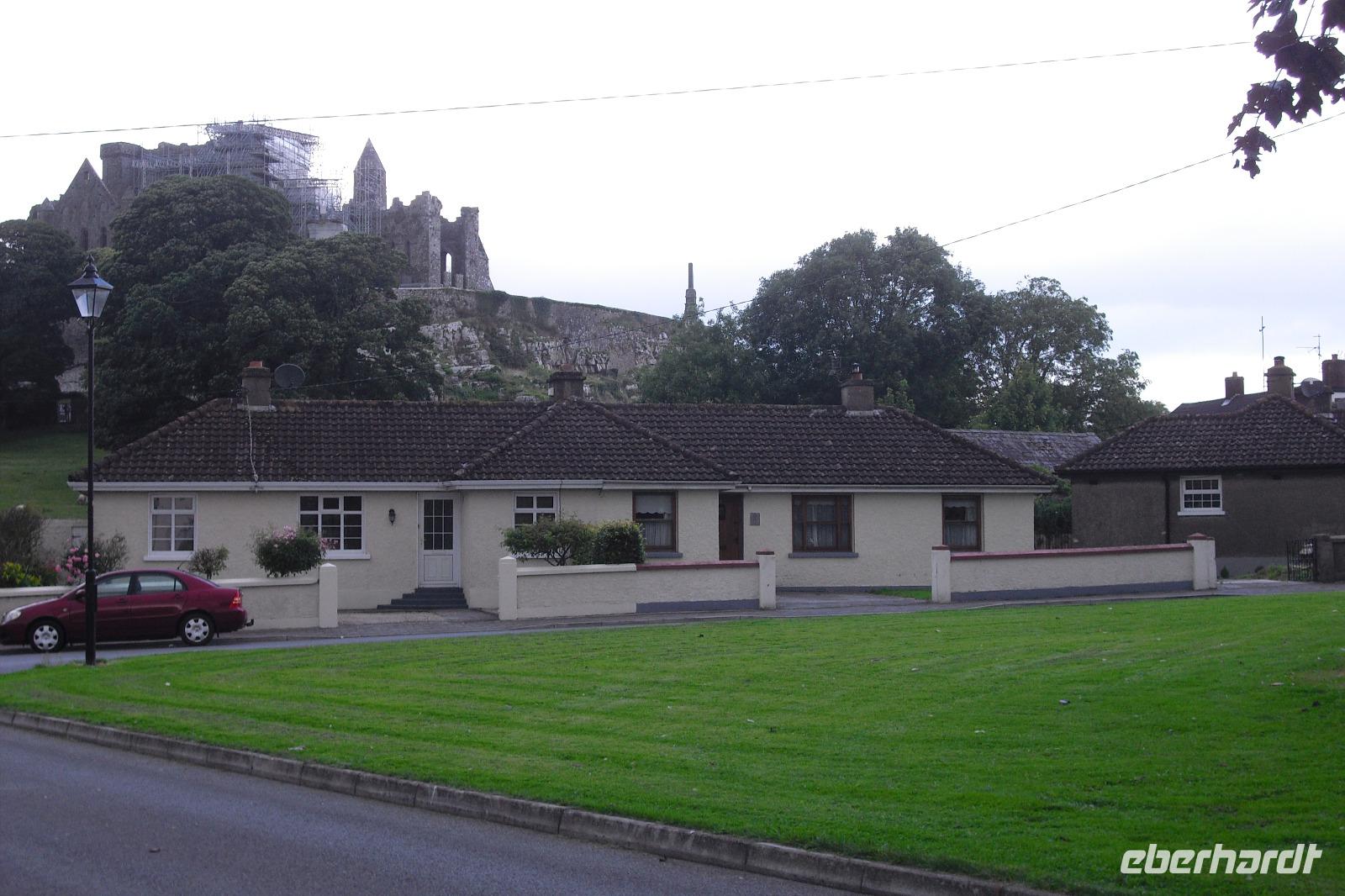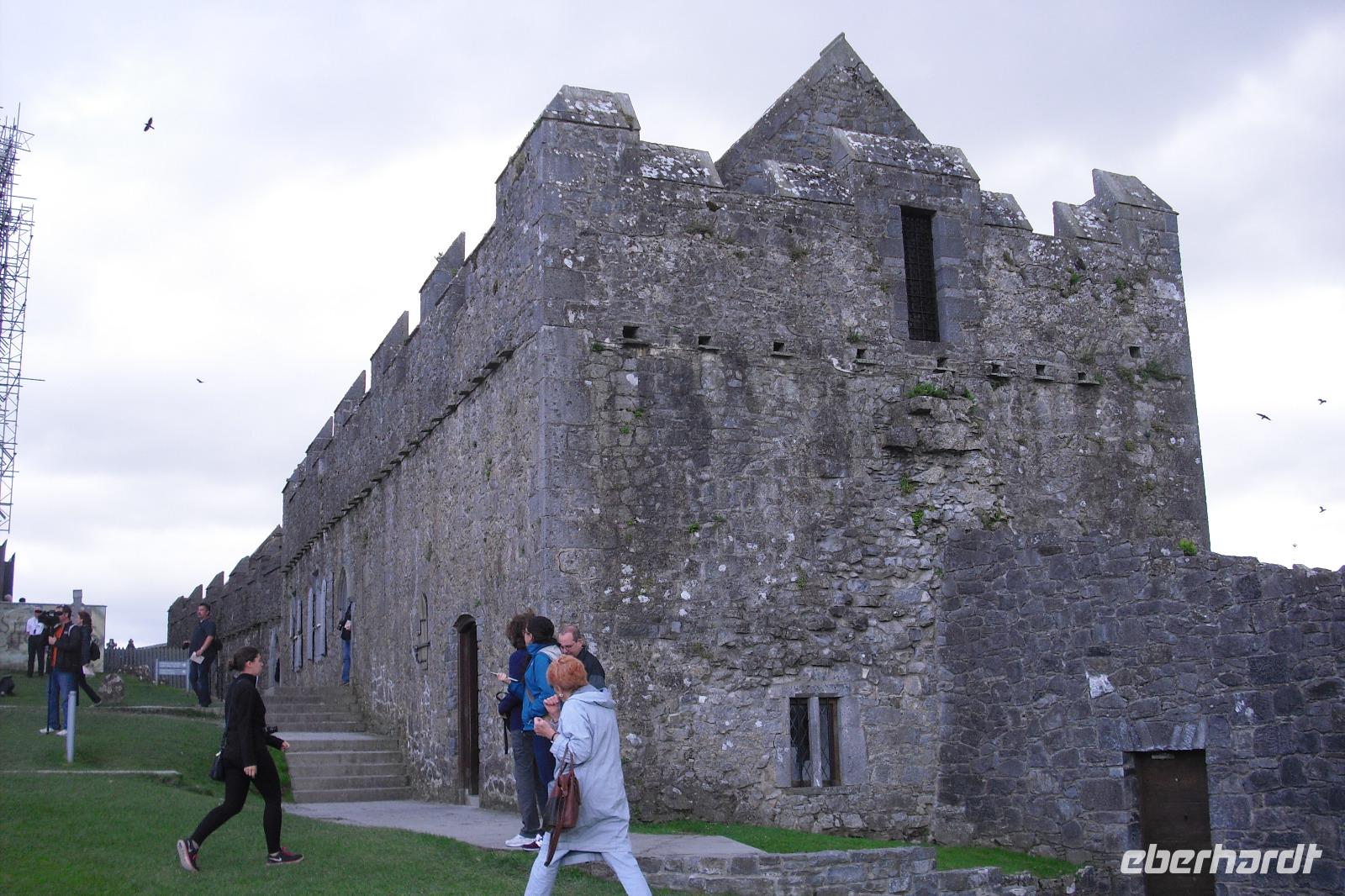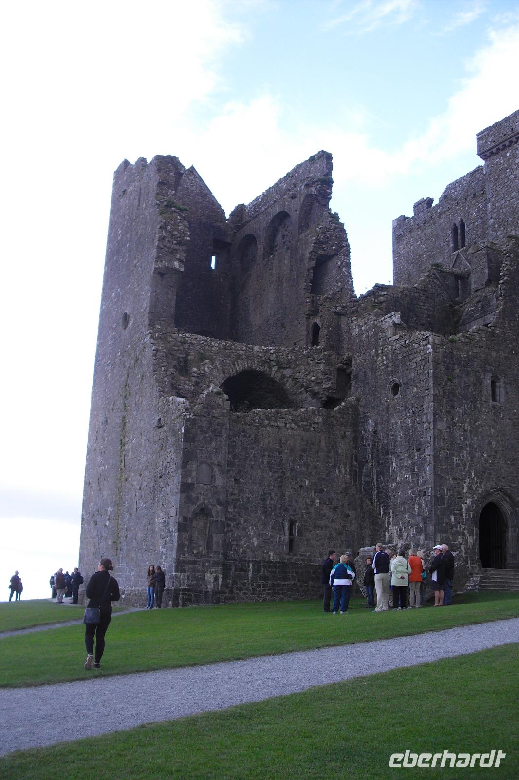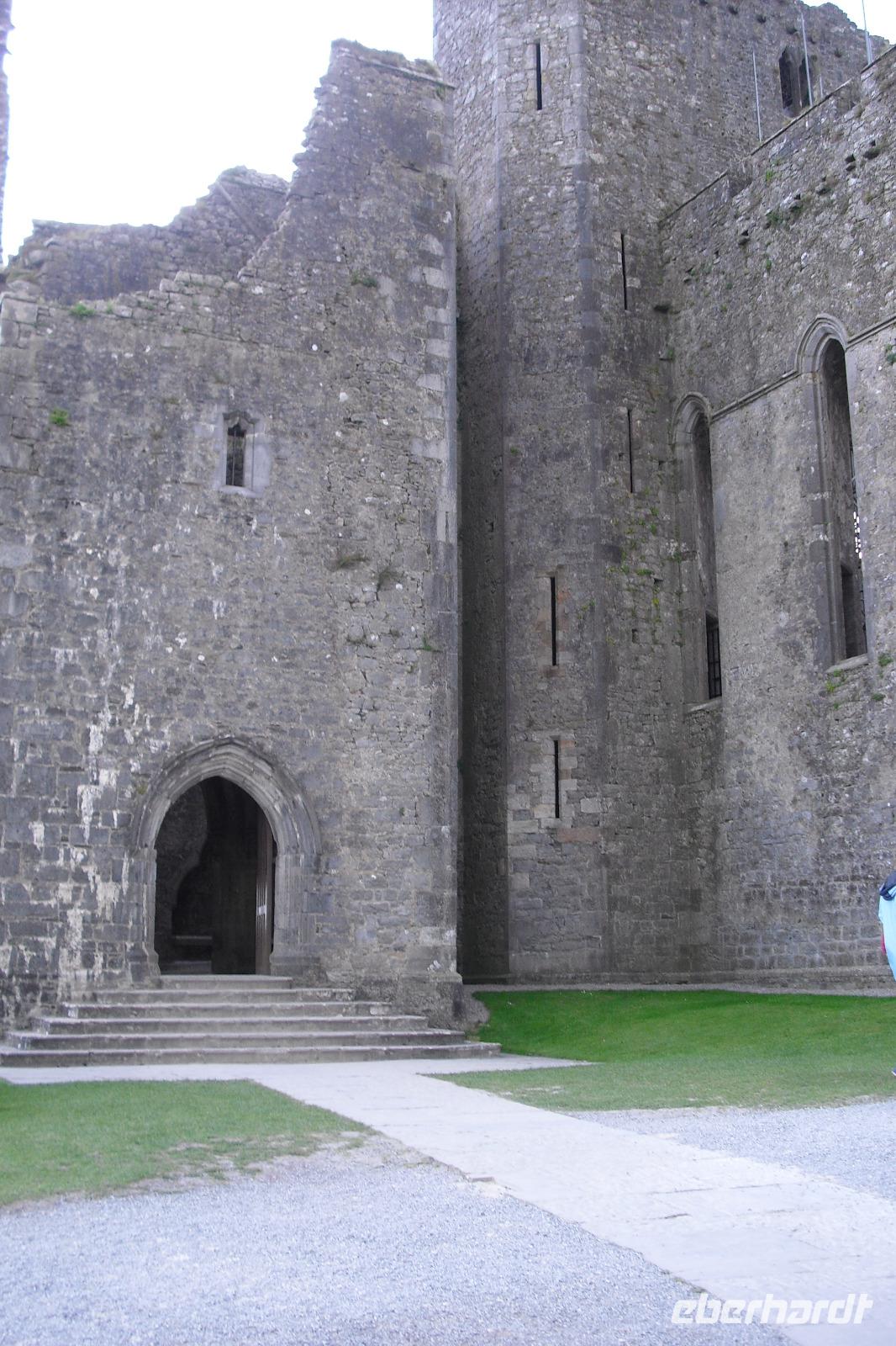 Nach einem einführenden Film über die wechselvolle Geschichte der Produktion dieses "Wasser des Lebens" wurde bei einer kurzweiligen und kompetenten Führung die ehemalige Produktionsstätte mit den verschiedenen Herstellungsschritten eines Whiskeys dargestellt. Anschließend wurde zu einer Verkostung eingeladen und auch noch Gelegenheit eingeräumt, einiges käuflich zu erwerben. Leicht beseelt, nicht an jedem Tag wurde schon um die Mittagszeit ein Whiskey getrunken, fuhren wir im Anschluß nach Cashel. Hier besichtigten wir den berühmten Rock of Cashel. Ein außergewöhnliches Merkmal des Königtums Cashel war, daß eine Reihe seiner Könige auch Geistliche waren. Überliefert ist, daß der Heilige Patrick die Enkel von Conall Corc - Begründer des Königtums Cashel - taufte und während der Taufe sich der spitze Bischofsstab des Heiligen Patricks in den Fuß von Oengus bohrte. Der hielt es als Teil der Zeremonie und ertrug es schweigend. Die Anlage wurde im Laufe der Jahrhunderte mehrmals verändert, machte auch schwere Zeiten durch und ging 1869 als nationales Denkmal in die Obhut des Staates über.