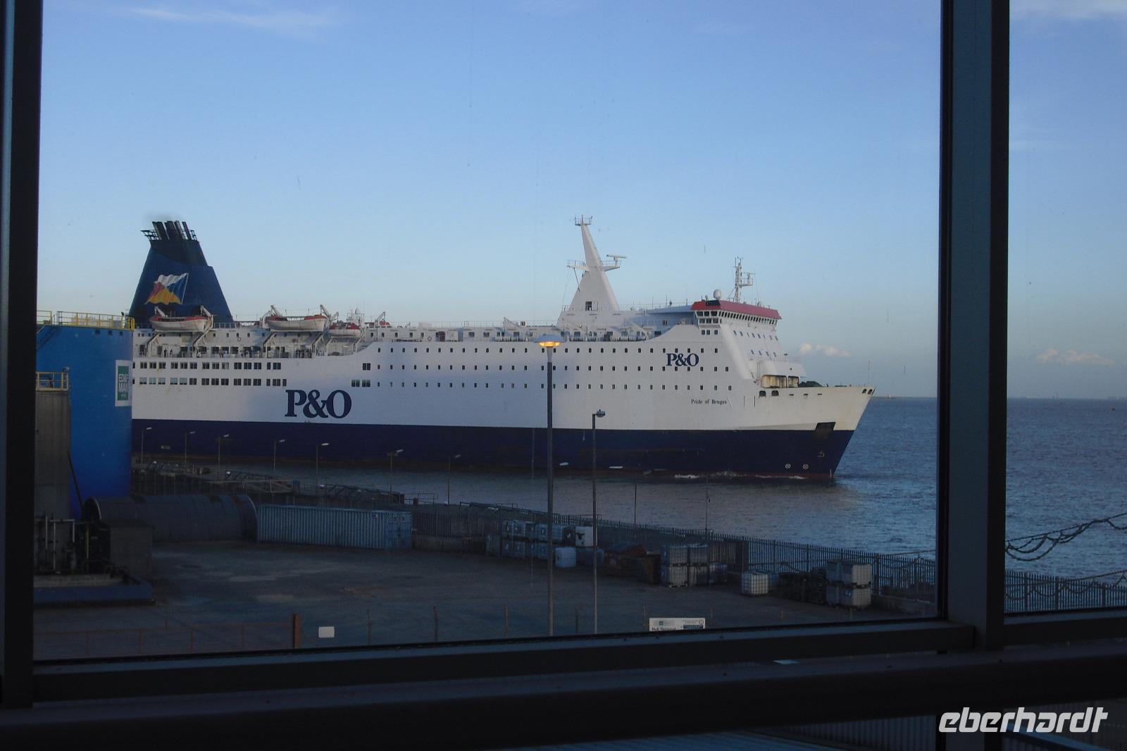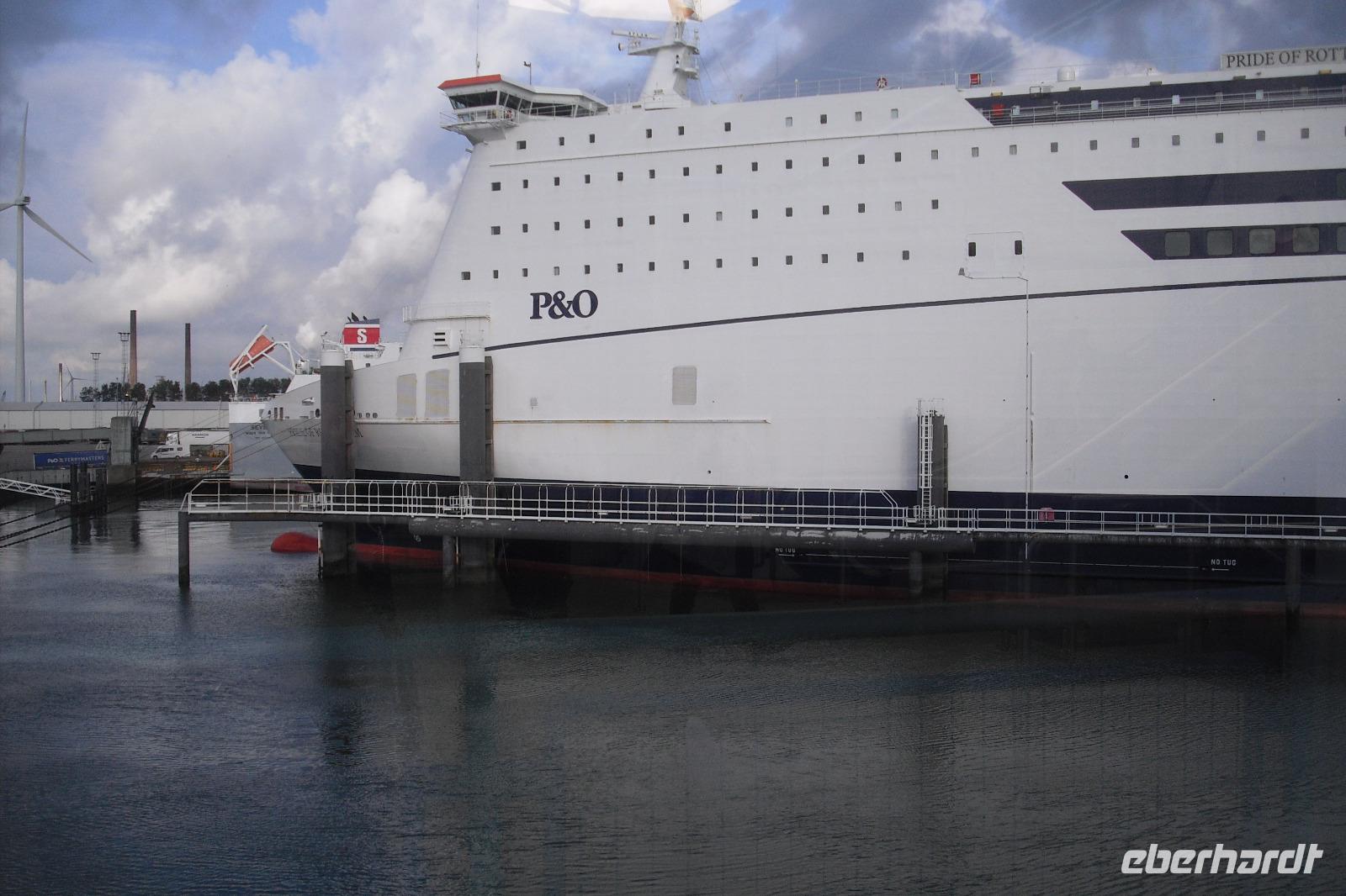 Nachdem alle Formalitäten erledigt waren gingen wir mit einem kleinen Nachtfährgepäck an Bord, suchten und fanden die Kabinen, richteten uns ein und anschließend konnte jeder im Buffettrestaurant THE KITCHEN das Abendessen einnehmen. Es gab Leckeres zum Abend. Da die See nicht völlig ruhig war, zog es die meisten von uns bald in das Bett. Mit der "Pride of Rotterdam" legten wir über Nacht 204 nautische Meilen, das entspricht 378 km, zurück.