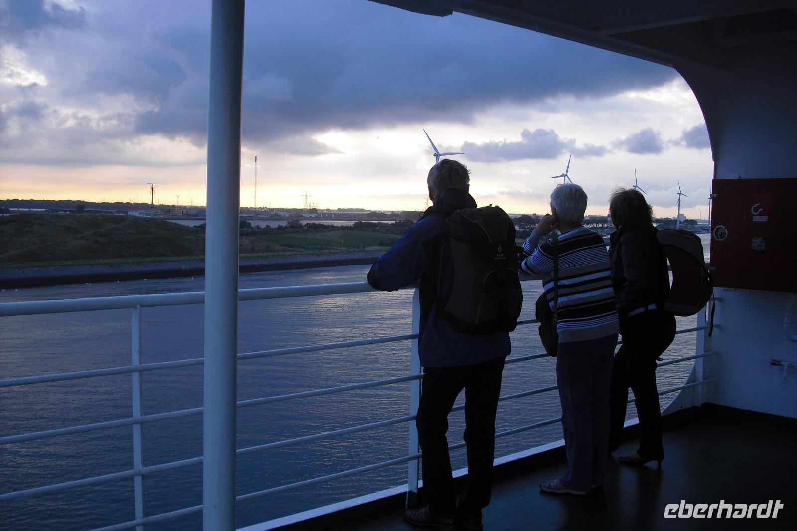 Wir kannten das Prozedere bereits von der Hinfahrt - Lautsprecherdurchsage, Aufstehen, Frühstück auf Deck 8 in THE KITCHEN ! Pünktlich und nach ruhiger Nordseepassage in Rotterdam angekommen fuhren wir anfangs "flüssig" und später "klumpig" gen Heimat mit verschiedenen Ausstiegen. Immer wieder wurden auch Pausen eingelegt. Und wer einen Haustürtransfer mitgebucht hatte, der wurde an den Ausstiegsstellen schon erwartet.