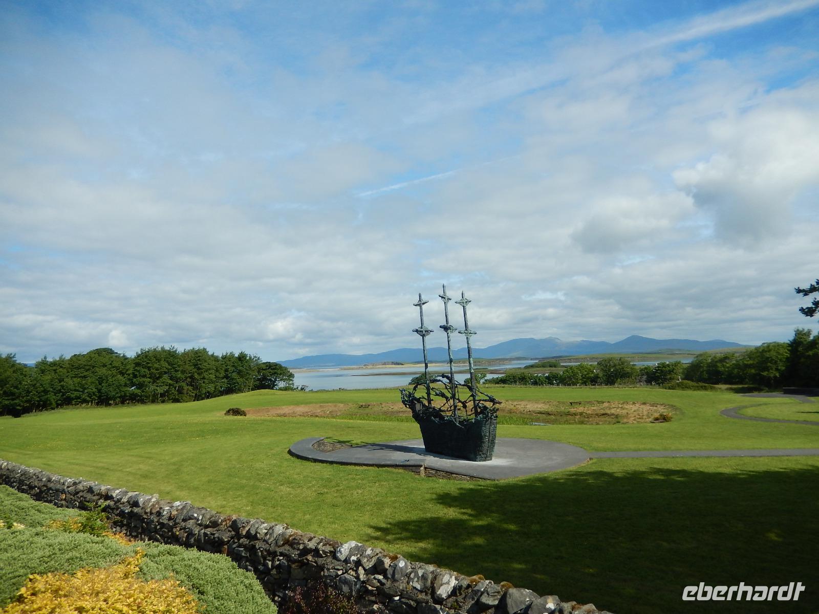 Auf geht es nach Ballina im County Mayo- kaum ein Abendmenü bisher hätte uns nicht auch frischen Lachs geboten, und viele von uns haben gern diesen Fisch in bester Qualität gewählt und stets hoch gelobt. Ballina nun ist die Lachs- Hauptstadt Irlands, lernen wir, und jedes Jahr gibt es ein großes Festival rund um die Delikatesse. Hier beziehen wir unser Hotel, das in einem üppig grünen Park liegt und uns den Blick auf den Lachsfluss Moy bietet.