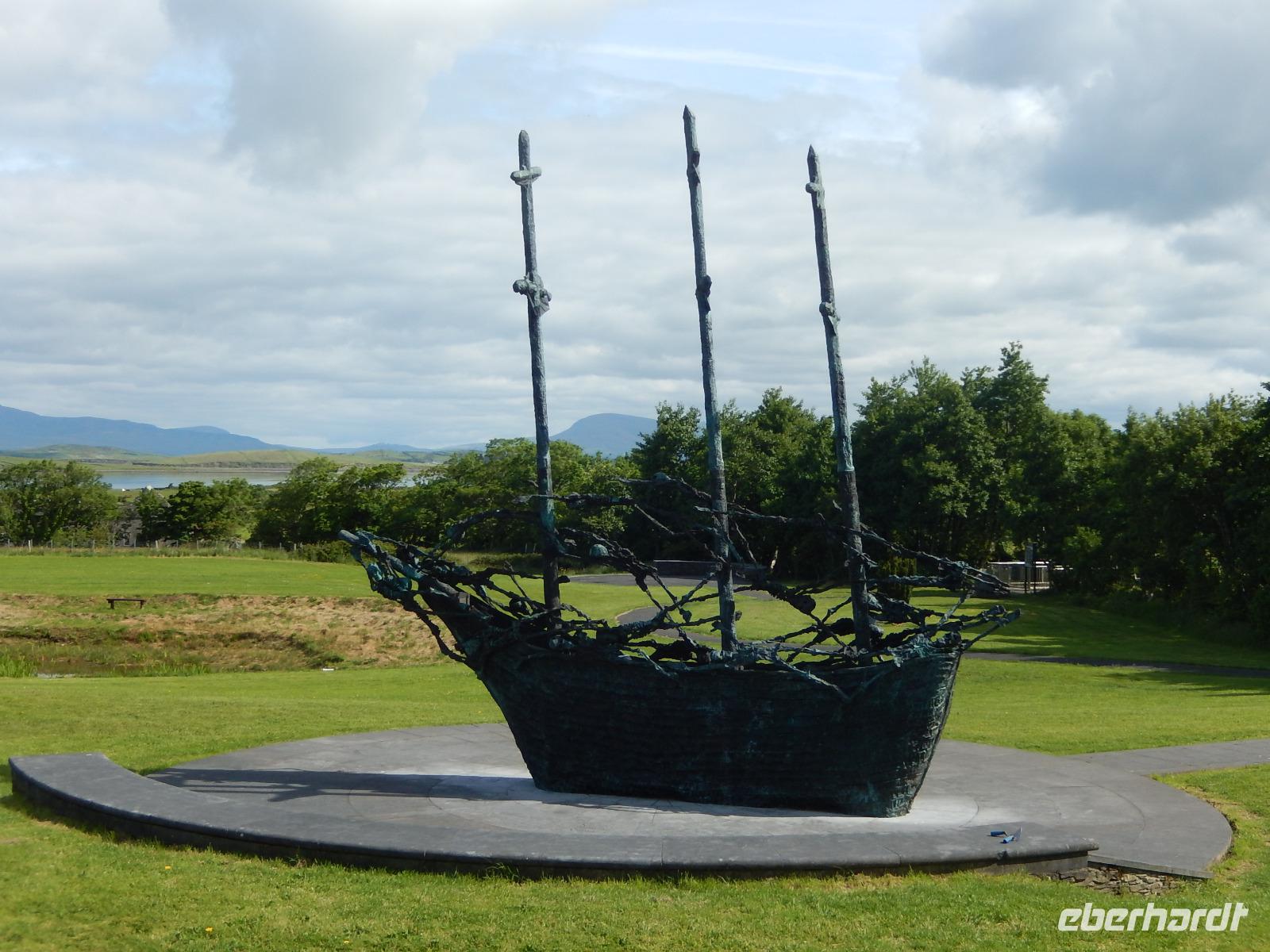 Wir reisen in das County Cork und begegnen Themen vom Beginn unserer Reise wieder, denn es geht in das Hafenstädtchen Cobh, dessen Straßen und Quais mit Tränen aus Zeiten der großen Hungersnot um 1850 getränkt sind, als 1,3 Millionen Iren (etwa 20% der Einwohner Irlands) auf der Flucht vor dem Hungertod über diesen Hafen ihr Land verließen. Diesem traurigen Kapitel der irischen Geschichte waren wir bereits am Croagh Patrick, dem heiligen Berg der Iren im County Mayo, begegnet- dort standen wir erschüttert vor dem National Famine Memorial (einem bronzenen Denkmal, das ein Schiff in Form eines Sarges darstellt, in dem Skelette liegen und dessen Takelage aus Skeletten besteht).