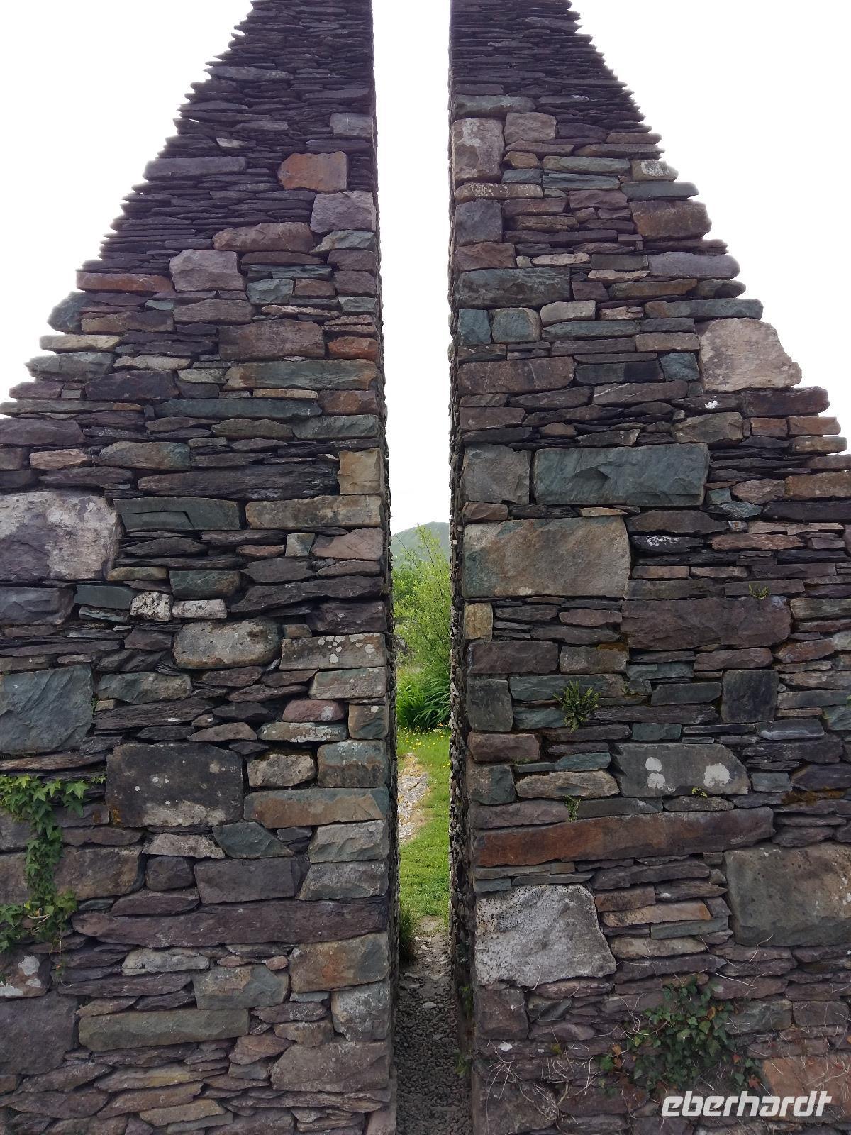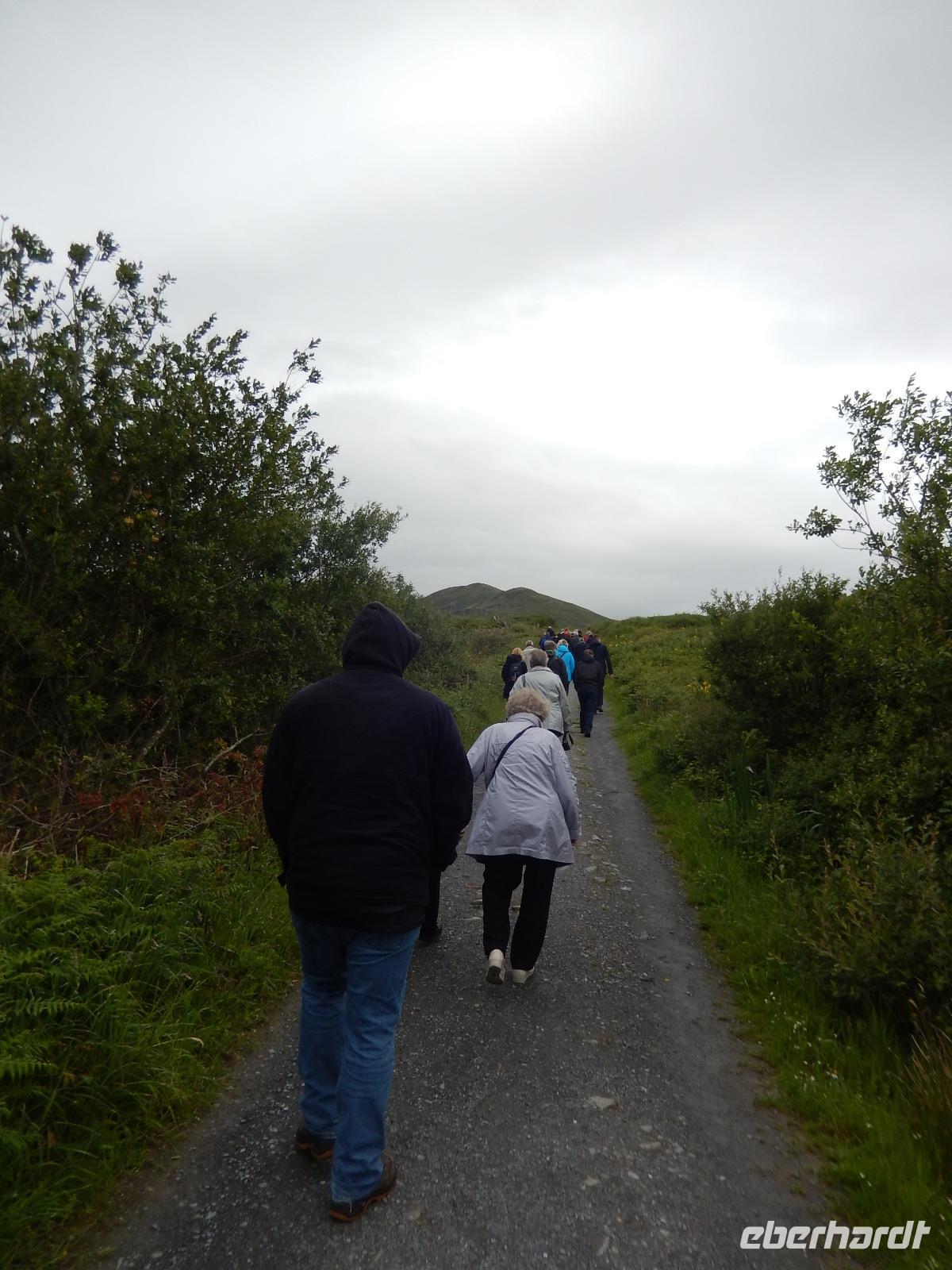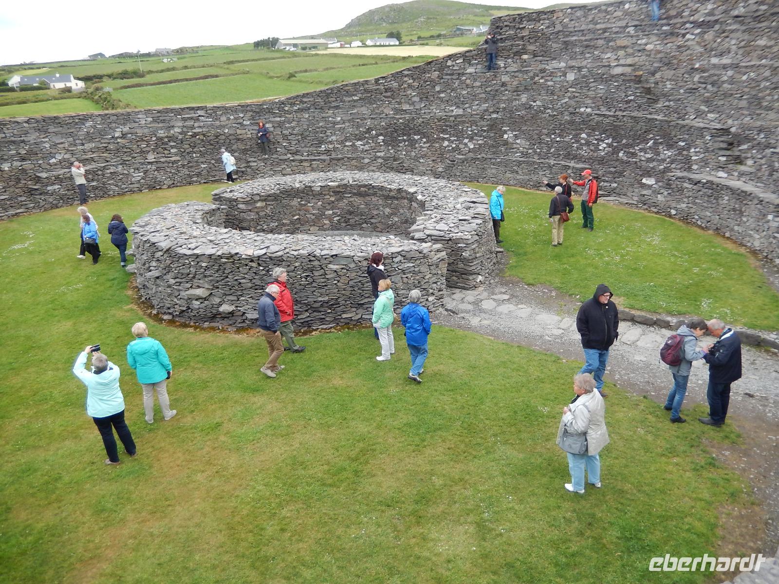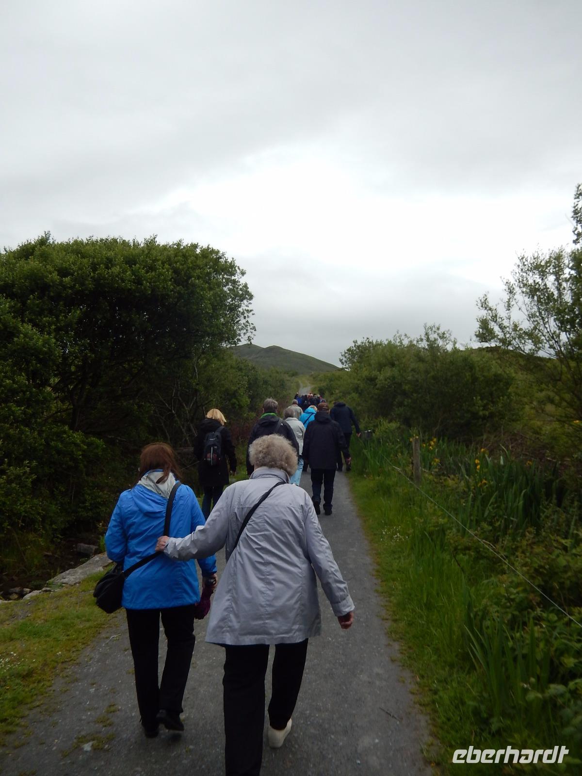 Unter anderem „eroberten" wir mit ihm das Cahergall Stone Fort, ein restauriertes eisenzeitliches Ringfort. Einige wagten sich für ein gutes Fotomotiv bis hinauf auf die 4m hohen Mauern. Jan hatte uns mit diesem Fort einen beeindruckenden Moment irischer Geschichte in wundervoller Landschaft und in völliger Einsamkeit ausgewählt- dafür sind wir ihm alle sehr dankbar, denn diese Attribute machen für die meisten von uns Irlands besonderen Reiz aus.