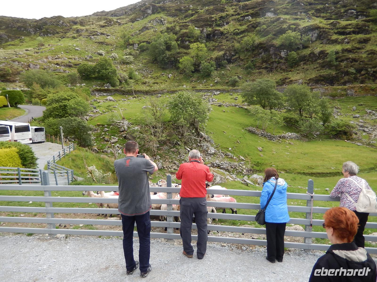 Am nächsten Tag ging es zum fakultativen Ausflug in den Glenveagh Nationalpark in Donegal- keiner wollte das verpassen, wir fuhren als komplette Reisegruppe voller Neugier und voller Erwartungen los. Niemand war danach enttäuscht, denn der majestätische See, die malerischen Berge, das wie durch Zauberhand in die Landschaft modellierte Schloss mit seiner ergreifenden Geschichte, die lieblichen Gärten, die Ruhe und der Frieden im „Tal des Lebens" sind unbeschreiblich ergreifend und wohltuend.
