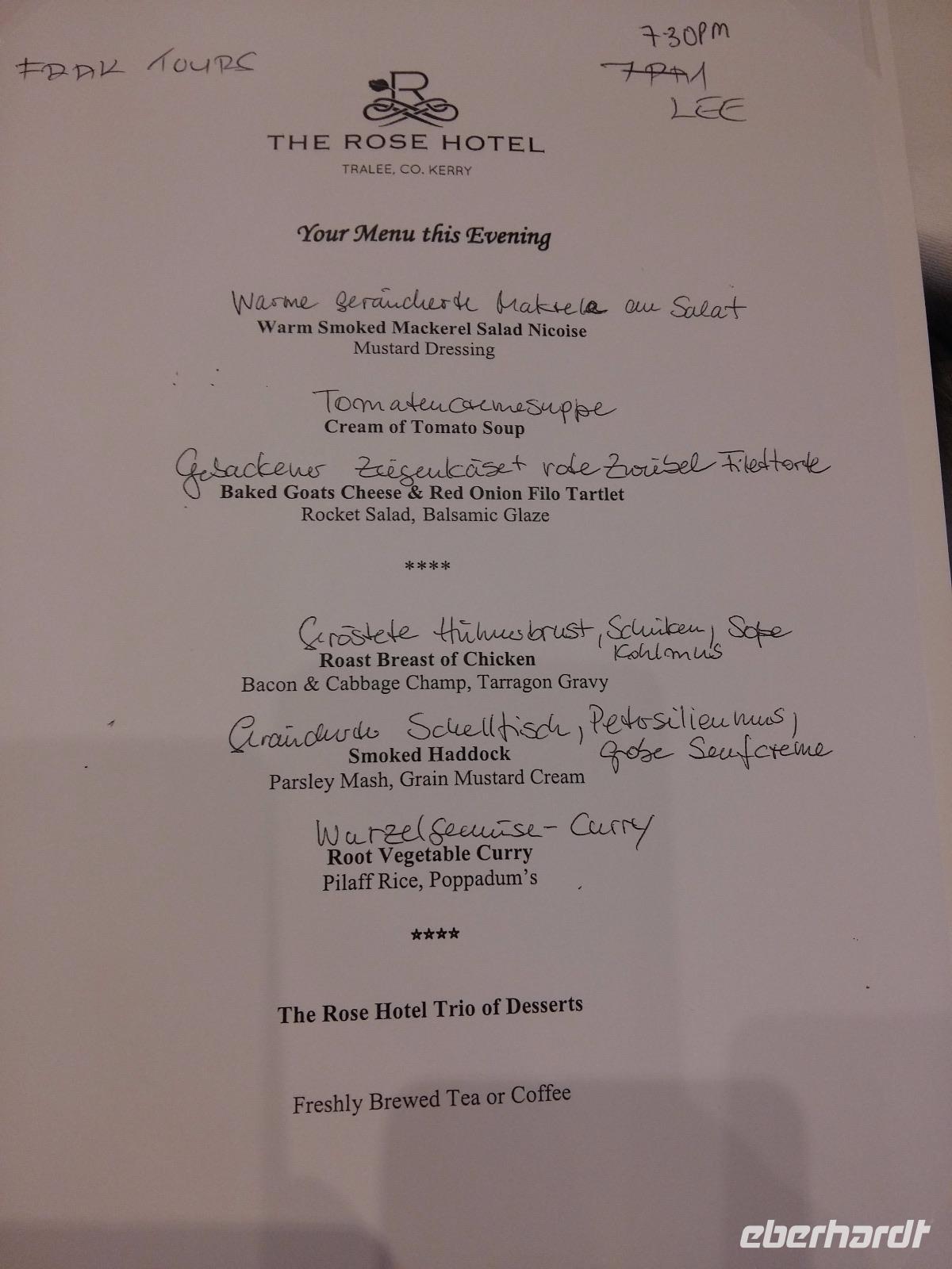 Am Abend kamen wir in Trallee im County Kerry an, dinierten fürstlich und schliefen nach einem langen erlebnisreichen Tag erschöpft und glücklich ein.
