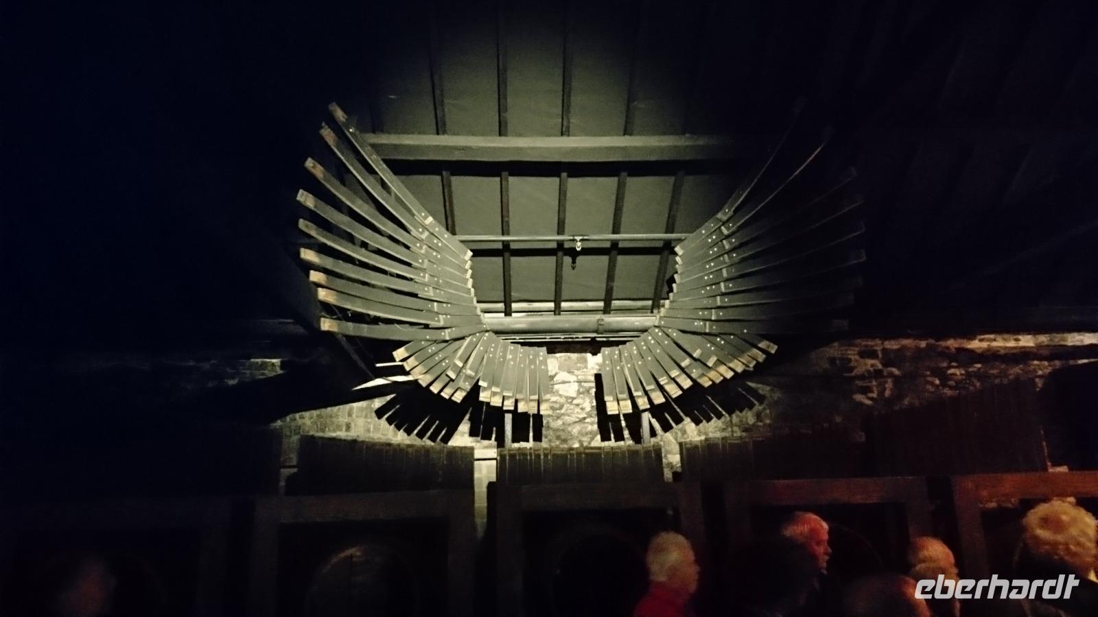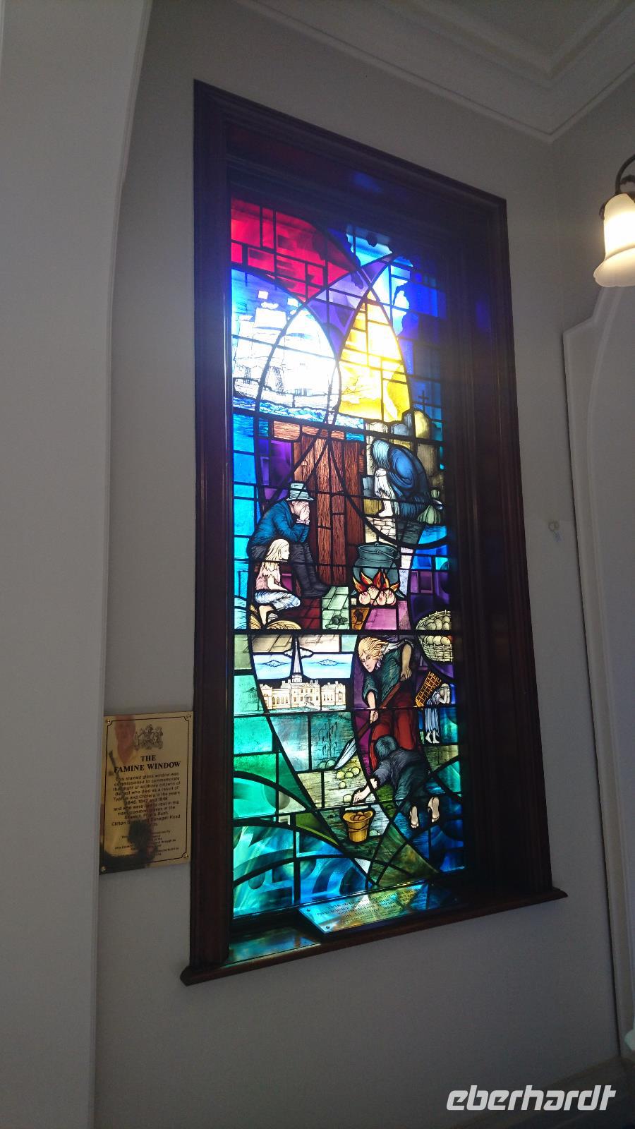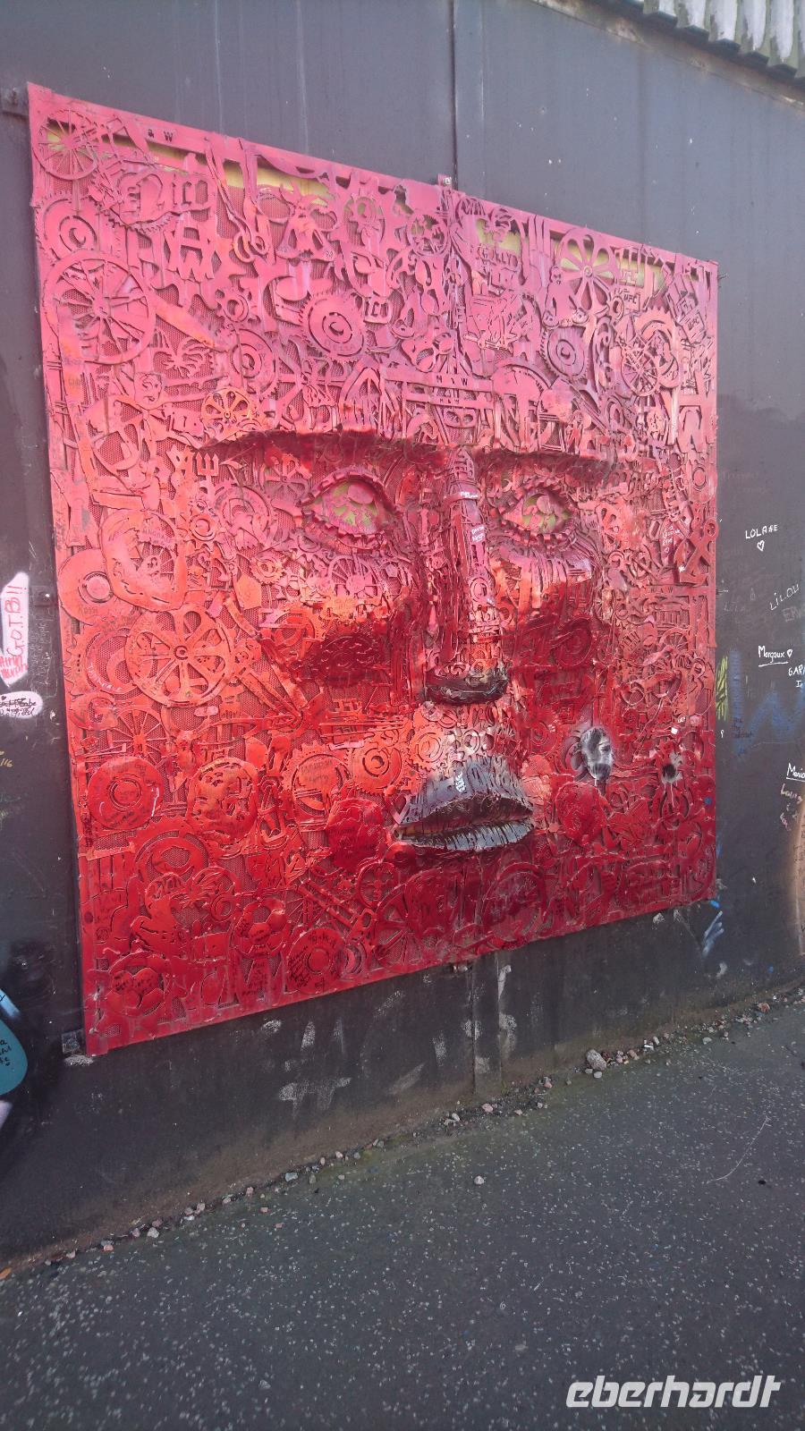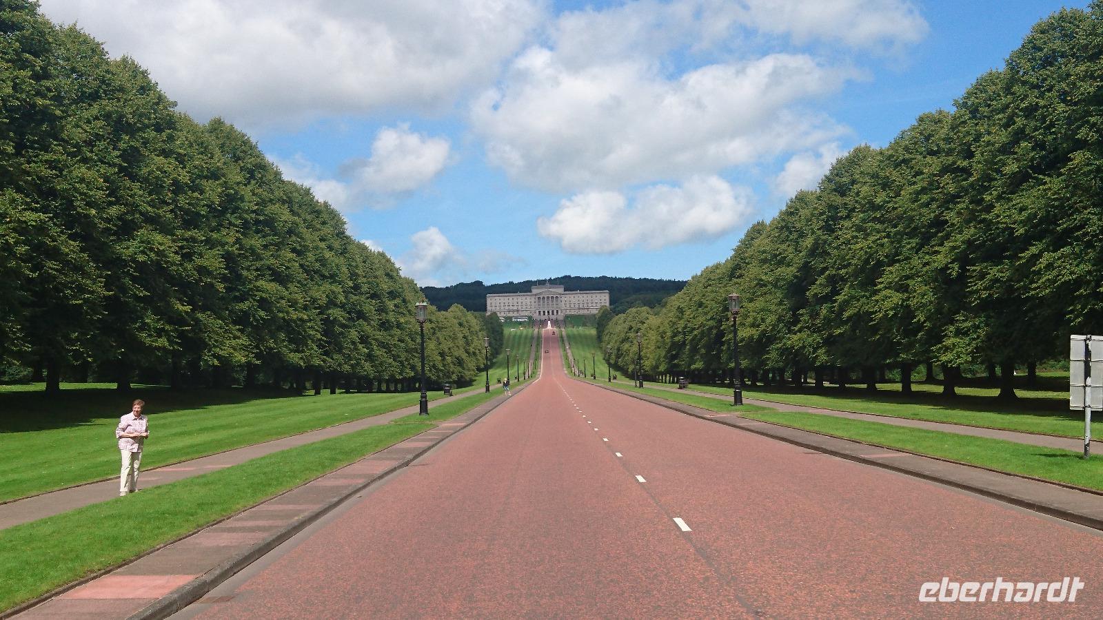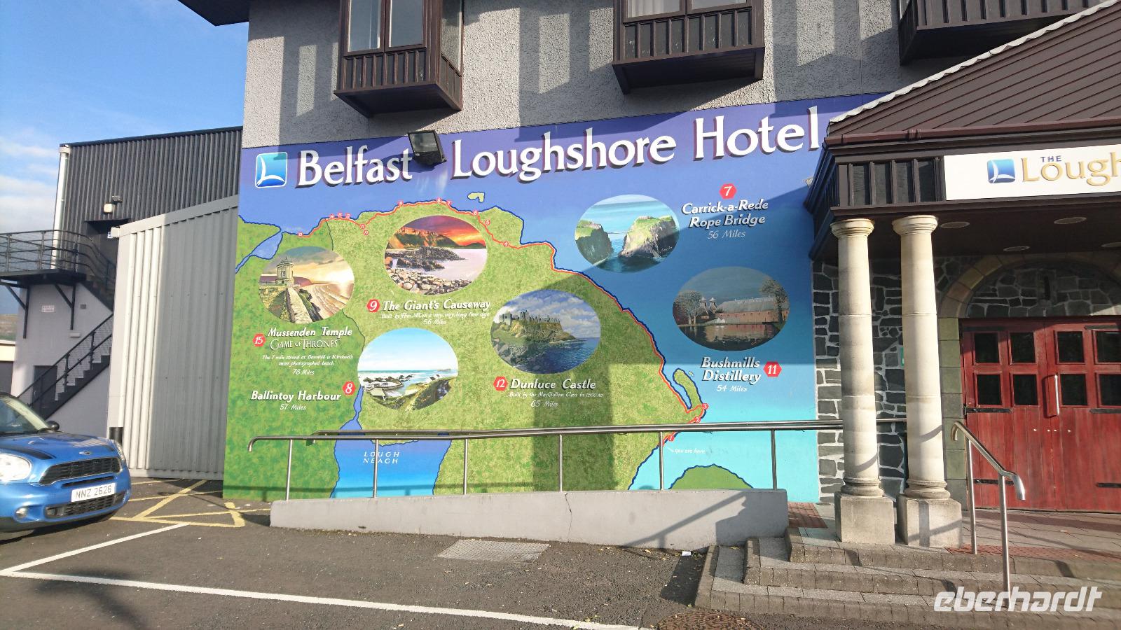 Nichts konnten wir uns unter Irland und Nordirland, den Zerwürfnissen, dem Bürgerkrieg, den Anschlägen, den Stadt- und Landesteilungen vorstellen. Beim Aufbruch am Hotel in Navan, wo Jürg erstmals alle Koffer von uns nunmehr 42 Reisegästen einladen musste, erklärte uns Stefan bereits, was uns erwarten würde und dass der Konflikt zwar für uns als Gäste und Reisende nicht relevant, aber immer noch aktuell sei. Vorstellen konnten wir es uns nicht. Später fuhren wir über die unscheinbare Grenze zu Nordirland. Was änderte sich hier? Die Randstreifen der Straßen waren nun weiß und nicht gelb, die Geschwindigkeitsangaben erfolgten in Meilen pro Stunde und die Orte wurden nur Englisch und nicht, wie in der Republik üblich, zusätzlich Gälisch bezeichnet. Trotzdem berichtete Stefan von einem Glaubenskrieg. Fand der nicht eher im Nahen Osten statt? Einige von uns wollten sich Belfast, die Nordirische Hauptstadt, genauer anschauen und wir setzten sie in der Innenstadt ab, ehe der Rest ins Titanic Quarter und dort zur Ausstellung Titanic Belfast weiterfuhr. Hier waren wir erst einmal fasziniert vom Ausstellungsgebäude und erfuhren nun über mehrere Etagen hinweg und ausgerüstet mit einem informativen Audioguide viel rund um Belfast, die hiesige Werftgeschichte und die Entstehung aber auch den Untergang der Titanic und ihrer Schwesternschiffe Britannic und Olympic. Wer mochte, besichtigte noch die Nomadic, eines der letzten vorhandenen Schiffe der alten Werft H&W und ehemals Zubringer der Titanic. Drei lange Jahre arbeiteten tausende Belfaster am Schiff und nur 12 Tage dauerte es von deren In-Dienst-Stellung bis zur Katastrophe und ihrem Untergang. Mit diesem Wissen ausgerüstet, war uns der Streit um Religionen in Nordirland noch unklarer. Doch bald trafen wir Willi, unseren Stadtführer für Belfast. Mit ihm sahen wir dann die Friedensmauer, die heute immer noch hin und wieder geschlossenen Tore zwischen den katholischen und protestantischen Stadtvierteln, aber auch viele weitere Sehenswürdigkeiten in Belfast, wie das Parlamentsgebäude, das Rathaus, die Innenstadt, den Lagan, das Ding mit dem Ring, den Blauen Fisch und den ältesten, auch den schönsten Pub in der Stadt. Später fuhren wir gen Carrickfergus, bezogen dort unsere Hotelzimmer und ließen den Tag nach einem guten Abendessen bald ausklingen.