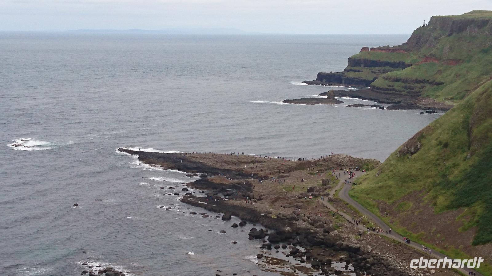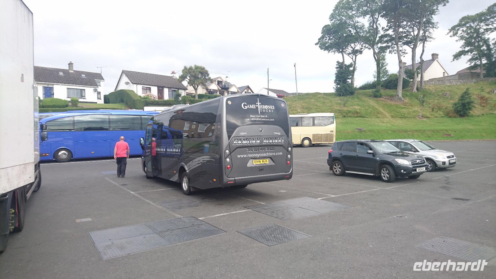 Stadt und Probleme hatten wir jetzt genug. Heute wollten wir nordirische Natur genießen. Gab es da nicht die wundersame Geschichte um eine alte Steinbrücke zwischen Schottland und Irland, die ein Riese schuf und ein anderer Riese wieder zerstörte? Giants Causeway. Brücke der Riesen. Doch erst einmal gab es wieder Koffer-Tetris am Morgen und dann entführte uns Stefan an einen der Drehorte der Serie „Games of Thrones". Gestern erfuhren wir bereits, dass viele Trickszenen in den Titanic Studios direkt hinter Titanic Belfast entstehen. Nun sahen wir einen offenen Drehort in Carnlough. Nach diesem kleinen Zwischenstopp ging es nun zum neuen Besucherzentrum nahe Bushmills, wo der älteste Nordirische Whisky hergestellt wird. Audioguides, Stefans Einführung und eine kleine Karte vom Gelände ließen keine Wünsche offen, das Wetter spielte mit und wir konnten die Basaltsäulen an der nordirischen See ausgiebig erkunden. Ein herrliches Fleckchen Natur, was wir so sahen! Später fuhren wir weiter, stoppten noch für ein Foto bei Dunluce Castle, welches einst ein Schotte auf der Flucht vor den Unwirren in Glen Coe errichtete und das heute wegen der ständigen Wetteranschläge und dem brüchigen Felsen abzustürzen droht. Dann jedoch erlebten wir noch einmal irische Auseinandersetzungsgeschichte, denn wir fuhren in die Stadt mit dem Schrägstrich, die Stroke City, wie Derry/Londonderry auch genannt wird's. Offiziell ist Londonderry, doch alle Republikaner wollen nichts mit London zu tun haben. So steht sogar an Nordirischen Verkehrsmitteln Londonderry/Derry, um Parteinahme auszuschließen. Stefan zeigte uns die zerrissene Stadt von der vollständig erhaltenen und gut gepflegten Stadtmauer aus. Wir blickten auf die republikanische Bogside und sahen die heute noch wichtigen und zur Abwehr von Brandsätzen aufgebauten Schutzgitter an der Königlichen Bastion der Stadtmauer. Wie man sich mitten in Europa immer noch dermaßen auseinanderleben kann, begriffen wir nicht, verstanden Stefan jedoch, dass er uns so genaue Informationen über all dies erst jetzt, wenige Kilometer vor dem Verlassen Nordirlands gab. So fuhren wir nun etwas ruhig weiter, wieder über eine Grenze und betteten uns später nach einem guten Abendessen im Hotel in Letterkenny in der Republik Irland.