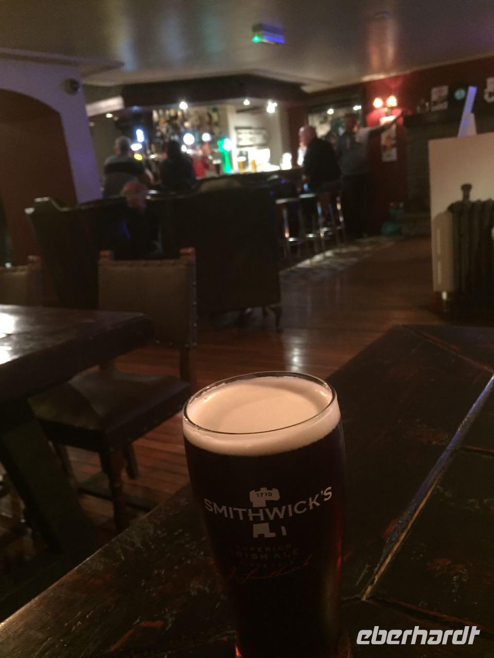 Doch ehe es nach Dublin ging, hatten wir noch anderes vor. Unsere letzte gemeinsame Fahrt in großer Flug- und Bus-Gäste-Runde lag vor uns. In den letzten Tagen hier in Irland zeigten sich verschiedene Geschmäcker, wenn es ums Bier ging. Die einen mochten Guinness, die anderen nicht. Manch einer der zweiten Gruppe probierte das von Stefan empfohlene Smithwick's-Bier und unser Reiseleiter berichtete uns bereits, dass dieses wegen seines ungewöhnlichen Namens in Rest-Europa als Kilkenny angeboten wird, also nach jener Stadt benannt wurde, in der man es herstellt. Solche Namensänderungen beim Grenzübertritt aus Irland heraus gibt es häufig. Denke man nur an den in fast jeder irischen Stadt vertretenen Kleidungs-Discounter Penneys, den wir in Rest-Europa als Primark kennen und der seinen Ursprung in Irland hat. Doch Kilkenny ist älter, als das bekannte Bier aus der dortigen Brauerei. Wir parkten am Castle, Stefan stattete uns mit Stadtplänen aus und wir zogen mit seinen Besichtigungs- und Toilettentipps los. Manch einer schaute ins Castle, andere bestiegen den alten irischen Rundturm an der Kathedrale, weitere verliebten sich in den Frischemarkt in der Stadt oder bummelten einfach ein wenig, ehe es später in das wuselige Treiben der größten irischen Stadt gehen sollte. Dann waren wir schon wieder auf dem Motorway unterwegs und auch wenn wir es eigentlich nicht hören wollten, tat Stefan gut daran, die letzte gemeinsame lange Fahrt zu nutzen, um unsere schöne Reise noch einmal zusammen zu fassen. Was wir nicht alles erlebten in den wenigen Tagen seit unserem Aufbruch zur grünen Insel! Schließlich erreichten wir Dublin, parkten am Trinity College und hatten ein wenig Freizeit für einen ersten Bummel, Toilette oder einen Besuch in der Universitätsbibliothek und beim Book of Kells. Dann schüttelte Stefan schon unserem Stadtführer John die Hand und wir fuhren nun einen Nachmittag lang durch die irische Hauptstadt, sahen die berühmten farbigen Türen, die großen und kleinen Stadtparks, erfuhren viel aus der Stadt- und Guinness-Geschichte, hielten an der Kathedrale und im Phönix-Park und sahen das pulsierende Leben der Innenstadt, ehe wir an unserem letzten irischen Hotel dieser Tour ankamen. Nach dem Abendessen und der Verabschiedung der Busgäste von den Fluggästen und umgekehrt unternahm der eine oder andere noch einen ausgiebigen Bummel durch die Stadt, über den River Liffy und in den Temple-Bar-Bezirk, wo Nacht für Nacht in jedem Pub Live-Music gespielt wird. Ein würdiger Abschluss unserer Tour und eine kleine Wieder-Eingewöhnung ins wirkliche manchmal viel zu hektische heimische Leben.