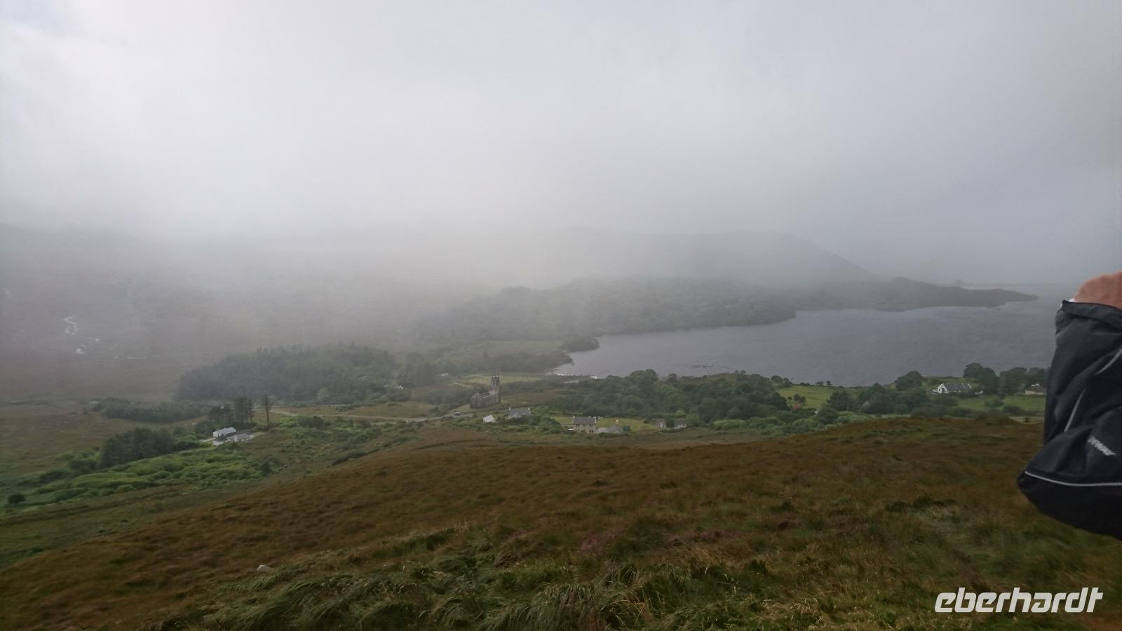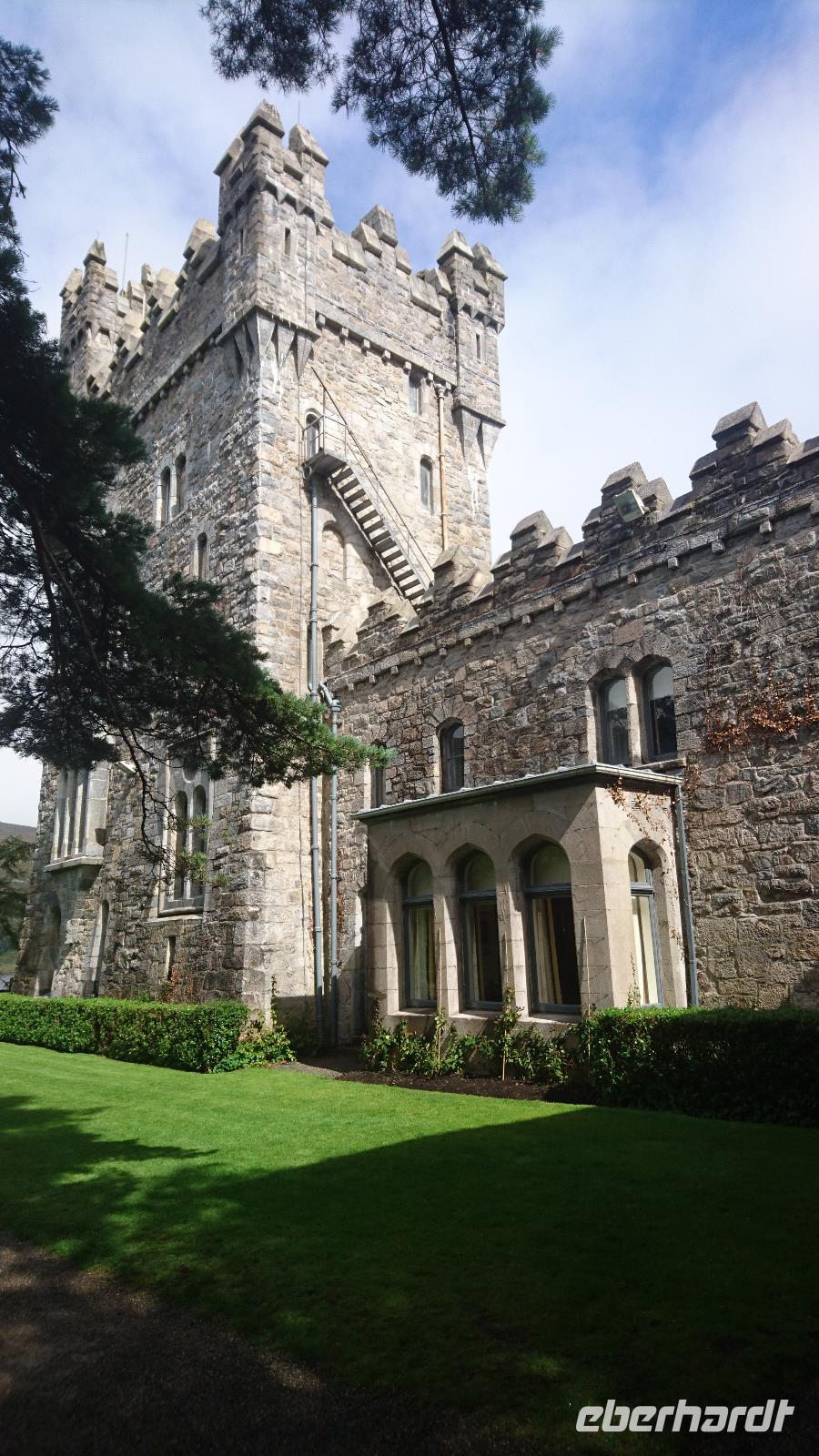 Fakultativ? Ach was! Alle kamen wir an diesem Tag mit in den nahen Nationalpark. Wenn wir bereits Nordirische Naturschönheiten sahen, wollten wir in der Republik Irland auch nichts verpassen. Zuerst ging es direkt in den Nationalpark. Ein kurzer Film führte uns in die Schönheiten und die Geschichte des Parks ein. Stefan als Krimiautor hatte uns schon einiges Mysteriöses aus der Vergangenheit berichtet und nun erfuhren wir noch mehr. Darauf fuhren wir mit kleinen Shuttlebussen zum nahen Castle und Jürg und Stefan führten uns mit viel Witz durch das alte und doch aktuelle Gemäuer. Danach schauten wir uns noch den schönen ummauerten Garten und den Park an, ehe es zurück zum Besucherzentrum ging, wo wir etwas zum Mittag aßen und uns auf die kommende Fahrt freuten. Leider zog Nebel auf, sodass wir die Spitze des Mt. Errigal nicht sehen konnten. Jedoch am Atlantikstrand von Narin, wohin es später über schmale Straßen und durch kleine Dörfer, also das ursprüngliche Irland ging, hatten wir Sicht und konnten unsere Füße einmal in den Atlantik tauchen. Am Bus zauberten Jürg und Stefan uns dann Irish Coffee, also Kaffee mit Whisky, Zucker und etwas Sahne. Dachten wir, der Tag ginge bereits zu Ende, so irrten wir. Noch einmal stoppten wir, diesmal in Donegal Town. Die kleine, alte Stadt bezauberte mit ihren Geschäften, Pubs, Kirchen und dem Castle. Später fuhren wir durch die Blue Stack Mountains zurück nach Letterkenny. Leider mussten Jürg und Stefan diese Nacht auswärts in einem B&B schlafen. Aber sie hatten dabei auch tolle Erlebnisse, z.B. mit einem in einen Kleiderschrank eingebauten kleinen Badezimmer und einem sehr reichhaltigen Frühstück am nächsten Morgen. Auf jeden Fall war dieser Tag nicht nur für uns, sondern dann auch für unsere „Reihe Null", also Jürg und Stefan, interessant und ereignisreich.