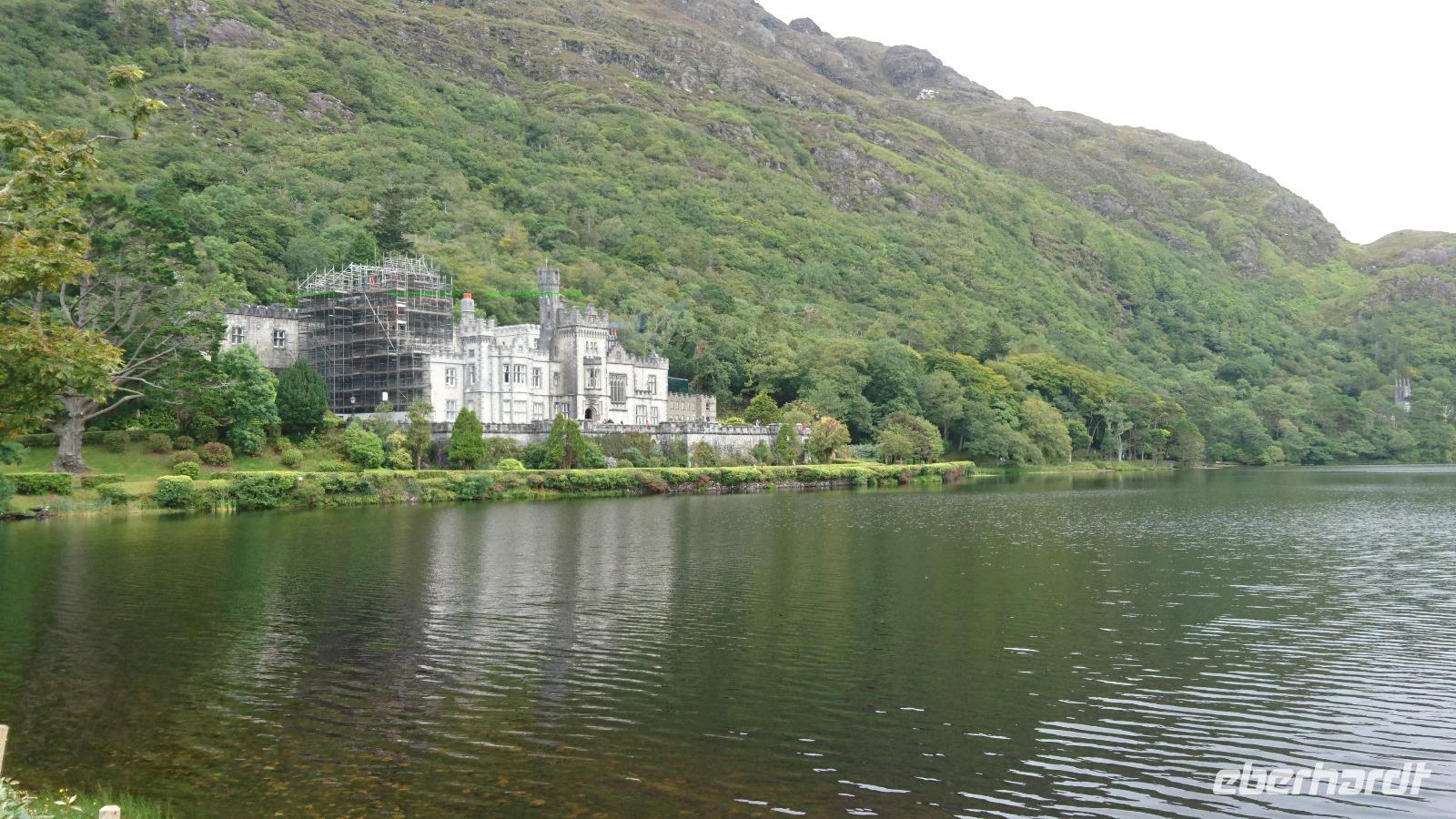 Heute war alles anders. Gesetze machen es möglich. Jürg hatte einen staatlich verordneten Ruhetag und wir fuhren mit Dick und seinem irischen Bus nach dem aufgrund eines sehr gut mit Hochzeitsgästen gefüllten Hotels etwas stressigen Frühstück in die Connemara Region. Die Natur wurde einfacher, Gälisch war an vielen Stellen die einzige Sprache, in der die Wegweiser beschrieben waren. Vorbei ging es an vielen Torfabbauplätzen, aber auch an Steinbrüchen, wo der legendäre Connemara-Marmor gewonnen wird. Fotostopps brachten uns die kleinen aber feinen Schönheiten der Region näher, ehe wir nach Kylemore Abbey kamen. Das Haus, einst von einem liebenden Paar errichtet, später über die Herzöge von Manchester an den Benediktinerorden der Nonnen von Kylemore verkauft, wird von diesen seit Jahren genauso in Schuss gehalten, wie der Park, die Kapelle, das Mausoleum und der ummauerte Garten. Viele Kilometer, teilweise gar alpine Wanderwege legten sie auf ihrem Grund und Boden an und auch wenn sie heute keine Mädchenschule mehr betreiben, kommen jährlich tausende Touristen zu ihnen, um all das zu sehen. So auch wir. Nach ausgiebiger Besichtigung und ein wenig Shopping im großen Klosterladen ging es weiter zum einzigen irischen Fjord, Killary Harbour. Sahen wir auf der Nordroute nach Giants Causeway bereits Lachsfarmen, so konnten wir nun künstliche Austernbänke bewundern und die Weite und Tiefe des Fjords erleben, ehe wir quer durch Connemara hindurch nach Galway und zu unserem Nachmittagsbummel fuhren. Die Stadt brachte uns Stefan mit einer kleinen Einführung näher. So erfuhren wir von einer möglichen Version, wie es zur Lynchjustiz kam, sahen aber auch viele Straßenmusiker und hörten die schöne Liebesgeschichte, die heute im Claddagh-Ring und dessen Symbolisierung der ewigen Liebe ihren Höhepunkt fand. Dann sahen wir uns noch etwas auf eigene Faust in der Stadt um, ehe uns Dick wieder zurück nach Gort und zu unserem Hotel brachte.