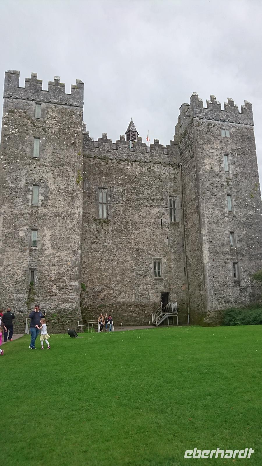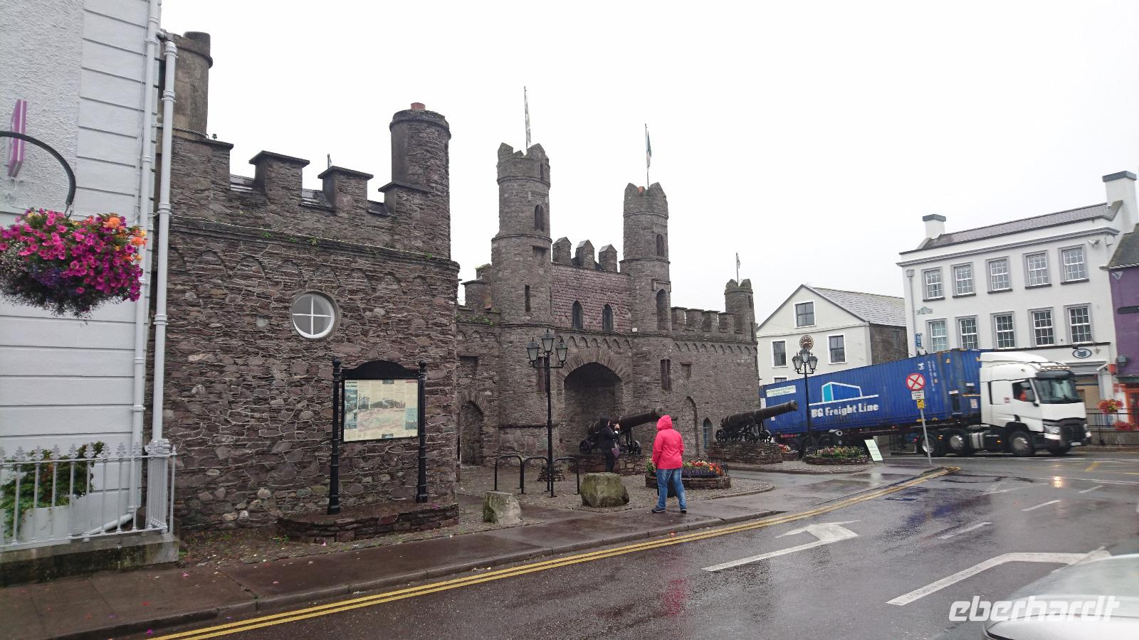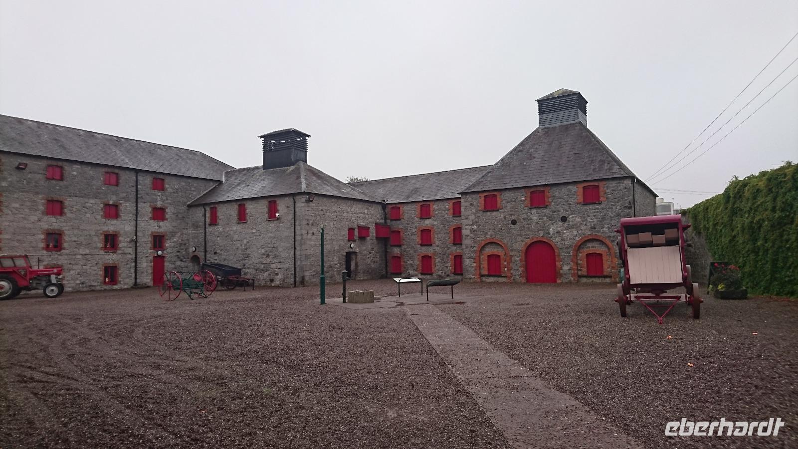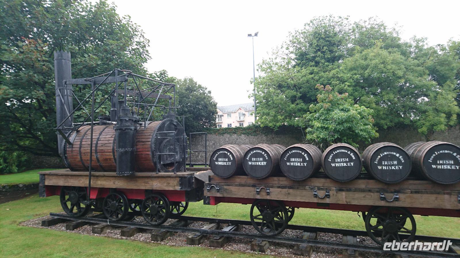 Wieder einmal startete der Tag nach dem Frühstück mit Jürgs beliebtem Koffer-Tetris. 42 Koffer und ein paar Taschen auf engstem Raum zu verstauen, ist nicht gerade leicht. Zum Glück waren Stefan und Jürg nun schon darin geübt und es ging ihnen gut und recht schnell von der Hand. Dann brachen wir auf. Die Südroute war so gut wie zu Ende, heute führte der Weg gen Osten. Erste Station war Macroom. Eigentlich kein Ort zum langen Verweilen, aber hier gibt es ein altes Castle mit schöner Straßenfassade und dazu noch eine kleine Toilettenanlage. Wir bewunderten Stefan, dass er an wichtigen Punkten immer solch eine kannte und sahen die anderen tage bereits ein, dass in absoluter Einöde, wie zum Beispiel in der Burren- oder der Conemara-Region nicht an jeder Stelle eine solche zu finden war. Nach ein paar Fotos ging es an einen Ort, der eng mit Belfast verbunden ist, zumindest wenn es um die Titanic geht. Cobh hieß einst Queenstown und war der letzte Hafen, an dem die Titanic vor Anker lag, ehe sie auf Katastrophenfahrt ging. Als wenn wir auch eine Katastrophe erleben sollten, wurde plötzlich die Straße durch eine Baustelle so eng, dass Jürg und Stefan einen Weg zum Wenden suchen mussten. Nach vielen Anstrengungen schafften sie es und wir rollten zum Heritage Center, dem Auswanderermuseum der Stadt. Wir sahen uns ein wenig in der Stadt um und freuten uns auf unser Bus-Mittagessen, denn bei aller Titanic-Geschichte benötigten wir eine gute Magengrundlage. Unser nächster Stopp lag in Midleton. Oh, wohl, eher bei Jameson, der umsatzstärksten und am Meisten produzierenden Destillerie in Irland. Hier verspeisten wir zuerst unsere Würstchen oder Suppen am Bus und erlebten dann eine sehr fachkundige und lange Führung mit großer Verkostung sowie einem guten Vergleich zwischen den drei großen Destillationsverfahren des amerikanischen, schottischen und irischen Whisk(e)ys. So hatten wir nun also auch noch dies erlebt und freuten uns darüber. Sicher hatte Stefan noch den einen oder anderen Zwischenstopp auf der weiteren Fahrt im Auge, doch wir fuhren durch bis nach Waterford zu unserem heutigen Hotel, welches auch gut gebucht war, was leider Jürg bemerkte, den man quartierte ihn ein paar Querstraßen weit für diese Nacht aus. Nebel zog auf und nahm nicht nur an der Küste, sondern gar auf der Straße die meiste Sicht. Wir kamen trotzdem gut an, besuchten noch die Innenstadt und die Promenade von Waterford und ließen uns später das Abendessen schmecken, ehe wir uns für den nächsten Tag ausruhten.