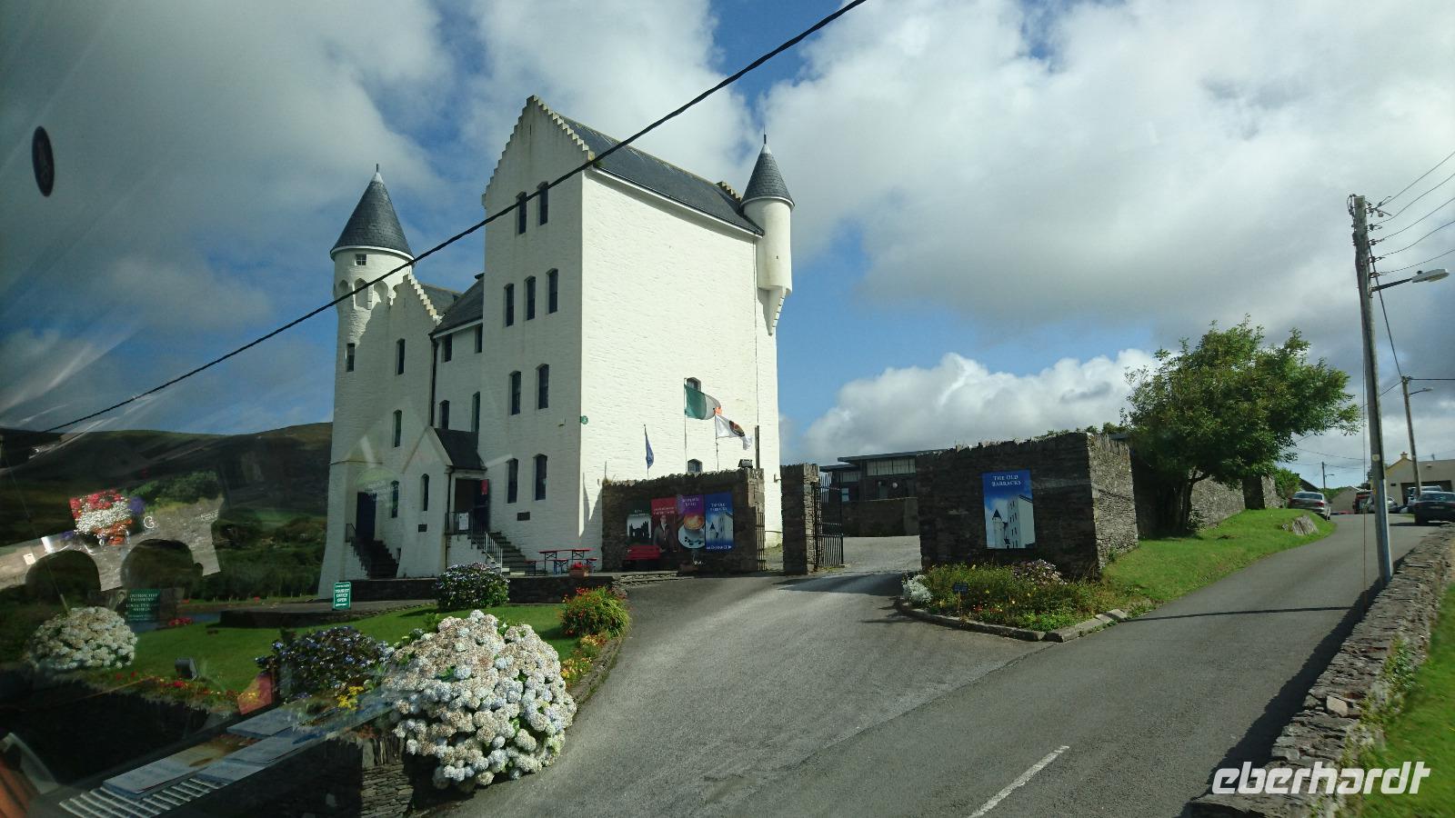 Reich ist das Land, reich an Steinen, also steinreich. Der Burren zeigt dies besonders gut. Erst sahen wir noch grüne Wiesen, weidende Schafe, kleine Farmen, dann wich all dies der Torfheide und diese ging schnell in Steinplatten mit ein wenig Kraut zwischen den Brüchen über. Wir waren Tester, denn ab heute galt ein neues Einlasssystem an den Cliffs of Moher. Stefan hatte alles dabei und so konnten wir schnell an die Klippen heran, waren auch noch vor den vielen Reisebussen der Kreuzfahrer da, die uns noch im Nacken saßen und konnten Papageientaucher und anschlagende Gischt an in der Sonne liegenden Steilküstenabschnitten betrachten, fasziniert die Cliffs sehen und fotografieren, etwas in den interessant bestückten Läden um die Attraktion herum shoppen, ehe wir direkt in den Burren hineinfuhren und den großen Dolmen von Poulnabrone besichtigten, hier auch von Jürg und Stefan einen Dolmen-Imbiss serviert bekamen. Danach ging es hinunter gen Süden und aus der Burrenregion heraus nach Bunratty. Ein altes Castle, einst Wohnturm, dann mit vier eckigen Türmen zum Castle erweitert, lud zu einer kleinen Führung ein. Danach und mit dem Wissen um die nie erfolgte Eroberung des Gemäuers sowie seine schöne Ausstattung besichtigten wir den um das Castle herum entstandenen Folk Park, ähnlich unseren Freilicht-Bauernhausmuseen, hier mit irischen Gewerken und Gebäuden aus dem 18. Und 19. Jahrhundert. Viele Gewerke wurden live vorgeführt und auf dem Dorfplatz gab es gar Live-Music einer irischen Musikergruppe. Nach so vielen Erlebnissen ging es nun weiter nach Tralee, wo wir am zeitigen Abend unser stadtnahes Hotel bezogen. Rose Hotel vorbei fuhren, sahen wir die Zelte der just in diesen Tagen stattfindenden Entscheidung für die neue Rose of Tralee stehen. Die Stadt war voll und im Rose-Fieber. Jedes junges Mädchen möchte einmal Rose sein. Teilnehmen kann jede irisch stämmige junge Dame. Nur muss sie bereit sein, Tralee, Kerry und Irland ein Jahr lang in aller Welt zu vertreten und daher mehr können, als nur schön auszusehen. Manche der gesichteten jungen Damen scheiterten wohl bereits am ersten Tragen von besonders auffälligen Kleidern und dem Laufen in high heels. Egal. Dabei sein ist alles! Wir genossen das Abendessen und manch einer unternahm noch einen Bummel durch die Stadt, ehe wir uns für den kommenden Tag ausruhten.