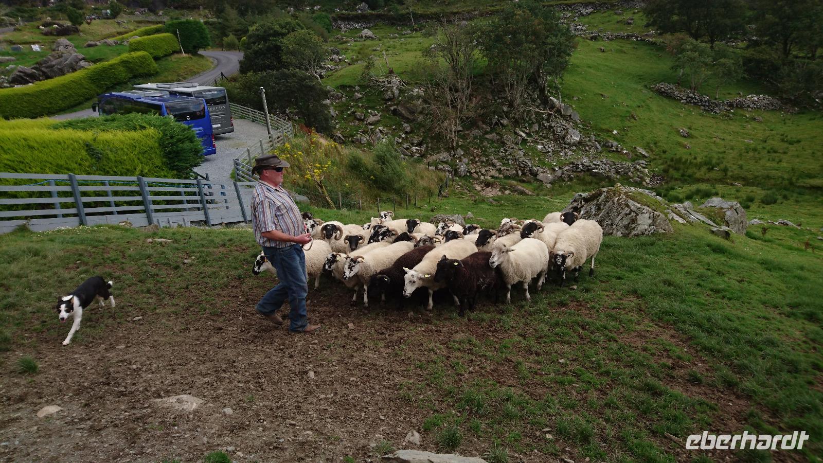 Dass Stefan sich in Irland gut auskennt, bemerkten wir bereits. Er kannte viele Leute an unserem Wege. So schon Willi in Belfast, selbstredend auch Jan in Killarney. Am Morgen starteten wir in Tralee und fuhren nach Killarney, um Jan aufzunehmen. Er sollte uns heute den Ring of Kerry auf der Halbinsel Iveragh zeigen und wir waren bereits sehr gespannt. Viele Fotos aus alter Zeit sahen wir, stoppten an einigen Stellen und erlebten trotz aller touristischen Vermarktung das ursprüngliche Irland direkt am Atlantik. So besichtigten wir am Vormittag ein altes Ringfort der alten Stammesfürsten auf der Halbinsel und staunten, was man neben einfachen Trockenmauern auf den Wiesen noch mit vielen Steinen jedoch ohne jegliches Bindemittel aufbauen kann und was dann hunderte von Jahren hält, ohne einzufallen. Ob unsere heutigen Bauten jemals so alt werden? Wir bezweifelten es arg. Dann fuhren wir nach Waterville. Hier verbrachte Charlie Chaplin gern seinen Urlaub und seine Töchter besitzen da heute och ein Haus. An der Statue von Charlie entstand unser Gruppenfoto. Dann ging es ins Panoramarestaurant Scariff Inn, wo wir typisch irische Gerichte probierten, wie Irish Stew oder Shepherd's Pie. Klar, dazu gab es wieder Kartoffeln, Kartoffelmuss, Pommes und so weiter. Irland lebt von und mit der Kartoffel. Kein Wunder, dass einst die Kartoffelfäule eine lebensbedrohliche Katastrophe auf der Insel wurde und über eine Million Iren das Leben kostete. Wir wurden heute aber satt! Später fuhren wir zum Bummeln und Shoppen nach Sneem, wo Stefan einige von uns beim CD-Kauf beriet, und danach zum Ladys View, von wo Königin Victoria und ihr Gefolge einst über die Irische Landschaft schauten. Dann folgte noch ein Höhepunkt unserer Reise. Wir besuchten eine Schaffarm. Hier zeigte uns der Schäfer, wie seine Bordercollies die Schafe zur Herde und diese zurück auf den Hof trieben. Dann erfuhren wir viel über die heutige Nutzung der Schafe und sahen, wie ein Schaf einst geschoren wurde und wie man das heute tut. Manch einer kaufte einen Schafskäse oder ein Schaffettprodukt, ehe es über Killarney und einen Tankstopp zurück nach Tralee ging. Einige von uns buchten die irische Show im Siamsa Tire und so trafen wir uns nach dem Abendessen im Hotelfoyer, um gemeinsam mit Jürg und Stefan ins Theater zu gehen. Lebensfreude ist gar kein Ausdruck. So eine schöne Show, meinten wir anschließend und werden Fado Fado sicher nie vergessen. Dann war der Tag jedoch herum und wir ruhten uns für Künftiges aus.