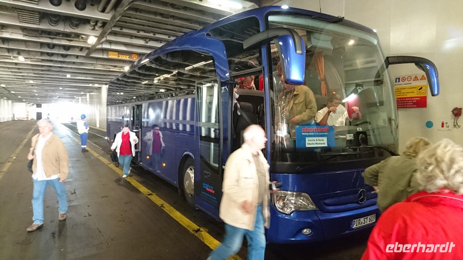 Zeitiges Aufstehen ist manchmal schön, weil man den ganzen Tag so noch vor sich hat. Geht es auf Reisen, will man so viel wie möglich erleben. So brachen wir 28 Busgäste am Morgen in Sachsen und Thüringen auf, wurden auf unserer Fahrt entlang der Bundesautobahn A4 immer mehr im Bus und fuhren am Nachmittag durch das Ruhrgebiet, kurz darauf über die niederländische Grenze und dort immer weiter auf Rotterdam zu, welches wir gegen Abend und pünktlich zum Einchecken auf der großen P&O-Fähre nach Hull erreichten. Unterwegs zeugte uns Stefan bereits einige Dokumentationen über Irland, spielte verschiedene Songs aus unserer Urlaubsregion und bereitete uns auf die Fährüberfahrt vor. Unterwegs gen Nordwesten sahen wir, wie die Landschaft immer niedriger wurde und erfuhren von Stefan die wundersame Geschichte über ein kleines Volk, welches einst eine gewaltige See- und Handelsmacht war, Tulpenzwiebeln nicht, wie die Engländer, in Öl legte und aufaß, sondern in den Boden pflanzte und so eine starke Währung und einen ersten Börsencrash auslöste. Schließlich an Bord bezogen wir unsere funktionellen Kabinen und ließen uns später im Buffetrestaurant das umfangreiche Abendessen schmecken. Danach begann bereits das Showprogramm auf der Schiffsbühne und wer wollte, konnte schon ein frisch gezapftes Guinness Bier in der Irish Bar probieren, ehe wir uns nach mehr als 800 Buskilometern zur Ruhe legten und Kraft für kommende Erlebnisse tankten.