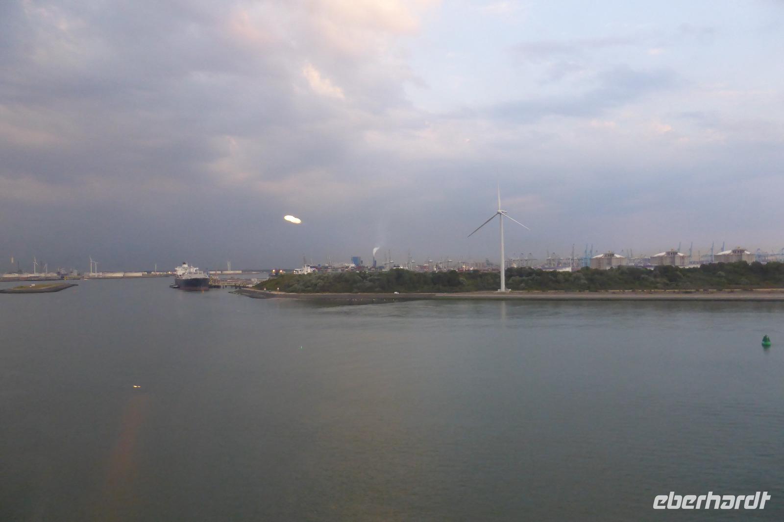 Unsere Abfahrt vom Flughafen Dresden verlief pünktlich und auf der Strecke bis Reinhardshain stiegen entlang der A4 weitere Gäste zu. Als Fahrtroute wählten wir die Fahrt durch das Siegerland sowie im weiteren Verlauf über Leverkusen und Duisburg. Am Nachmittag erreichten wir die Niederlande und kamen gegen 18.45 Uhr am Europort in Rotterdam an. Anschließend bezogen wir unsere Kabinen und fanden uns zum Abendessen im Buffet-Restaurant ein. Die Zeit bis dahin nutzten viele von uns zum Kennenlernen des Schiffes oder für einen Aufenthalt auf dem Außendeck mit Blick auf das Hafengelände.