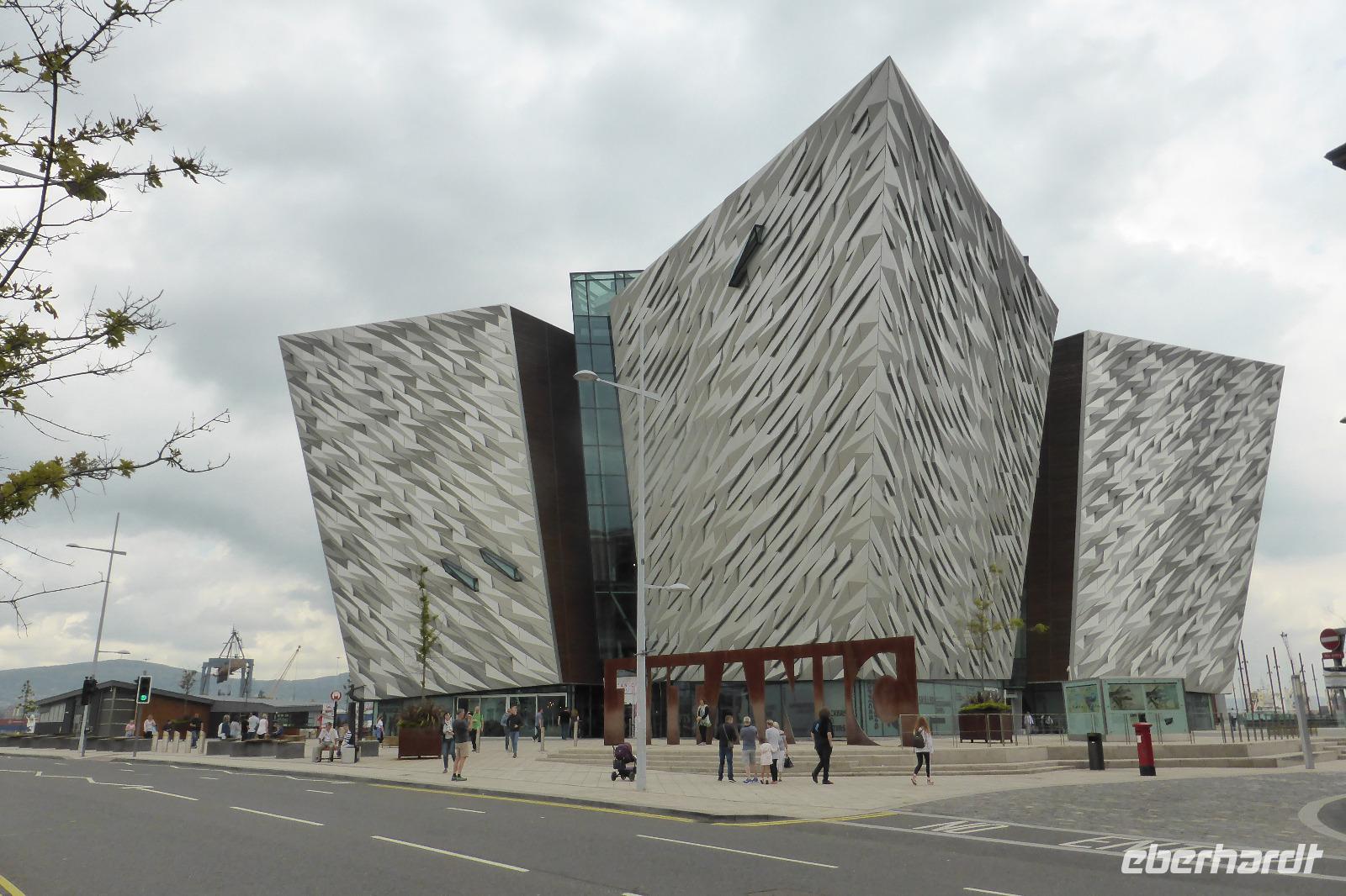 Von Navan aus fuhren wir am Morgen nach Belfast und besuchten das Titanic-Museum. Die Ausstellung beginnt mit einer Zeitreise an den Anfang des 20. Jahrhunderts. Danach kann man in einer Gondel durch die fiktive Schiffsbaustelle fahren, vorbei an Öfen, in denen die Nietbolzen zur Glut gebracht werden. Es wird tatsächlich an dieser Stelle auch etwas wärmer und man hört von allen Seiten das Einschlagen der Nietköpfe. Anschließend sahen wir die luxuriösen Kabinen und erhielten anhand von Fotos eine Vorstellung über das Leben an Bord.