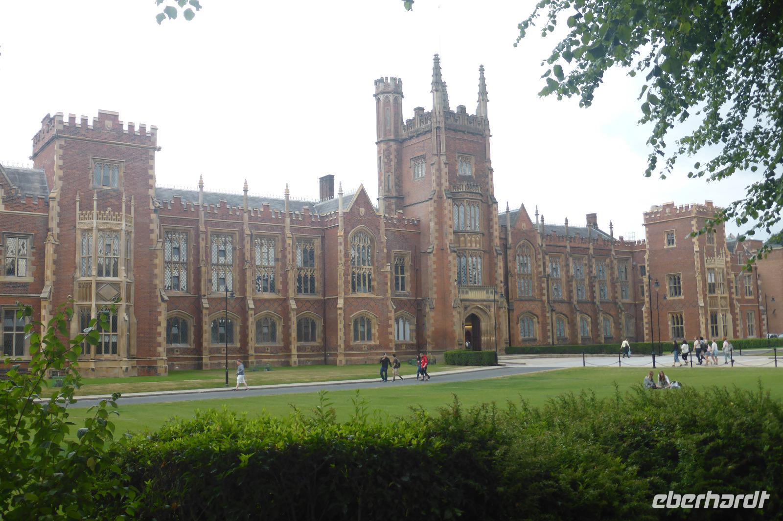 Nach dem Besuch des Museums erwartete uns unser Stadtführer William zur Rundfahrt durch Belfast. Zuerst fuhren wir zum Parlament und machten dort einen Fotostopp. Anschließend ging es zur Universität, welche wir bei einem kurzen Besuch erkundeten, und danach fuhren wir zur Peace-Line, einer Mauer, die ein katholisches von einem protestantischen Wohnviertel trennt. Wir waren schockiert, dass es fast zwanzig Jahre nach dem Karfreitags-Abkommen immer noch eine so stark wahrnehmbare Trennung gibt. Unsere Rundfahrt endete nach einem weiteren Ausstieg am Rathaus an unserem Hotel „Ten Square". Hier verabschiedeten wir unseren Stadtführer William, bezogen unsere Zimmer und trafen uns am Abend zum gemeinsamen Abendessen.