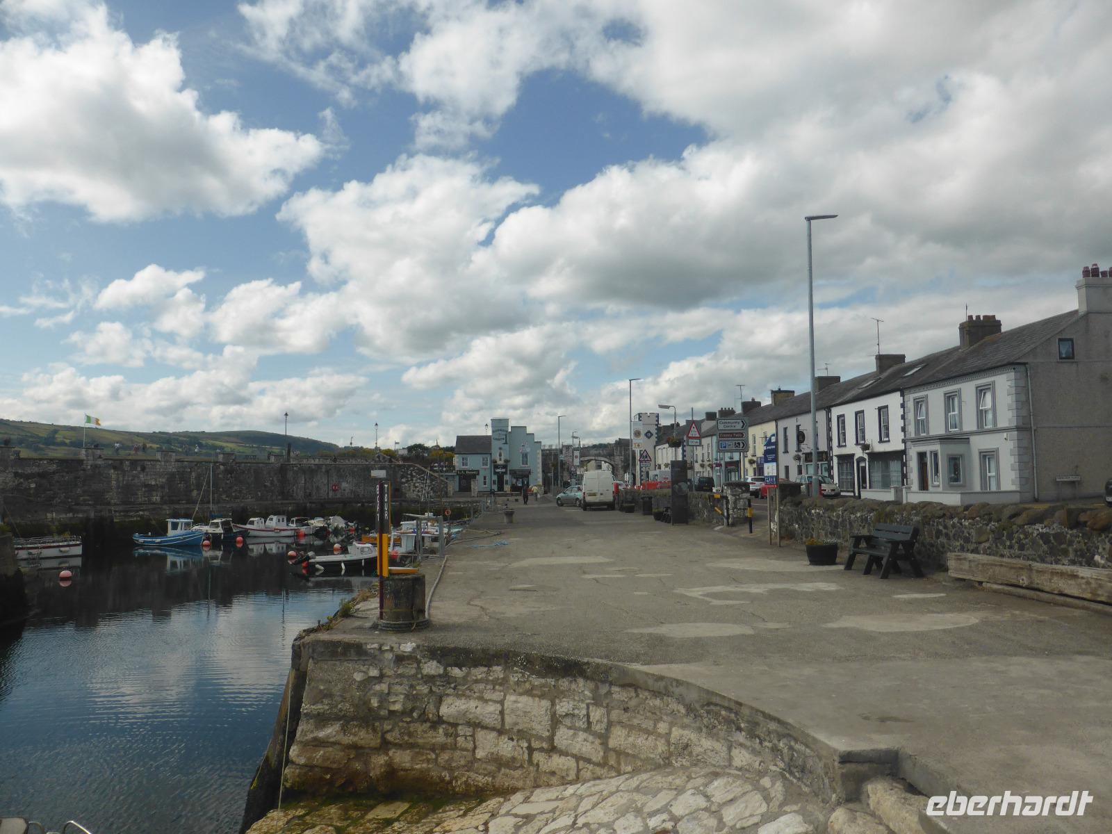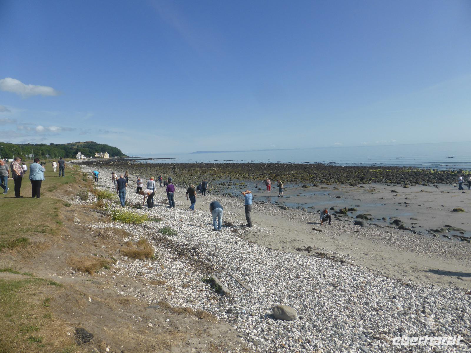 Der Donnerstag begrüßte uns wieder mit Sonnenschein. Unsere Reise führte uns über Larne zu der kleinen Bucht Drains Bay. Hier genossen wir die Meeresluft und suchten nach von der Brandung geformten Steinen. Anschließend hielten wir im kleinen Fischerort Carnlough. Wir hielten am Hafen und hatten einen schönen Blick auf die Berge beidseits des Glencloy-Tales sowie auf das Meer. Vor und nach dem Ort münden viele kleine und größere Flüsse aus den Tälern Antrims in den North Channel, der Wasserstraße zwischen Nordirland und Schottland.