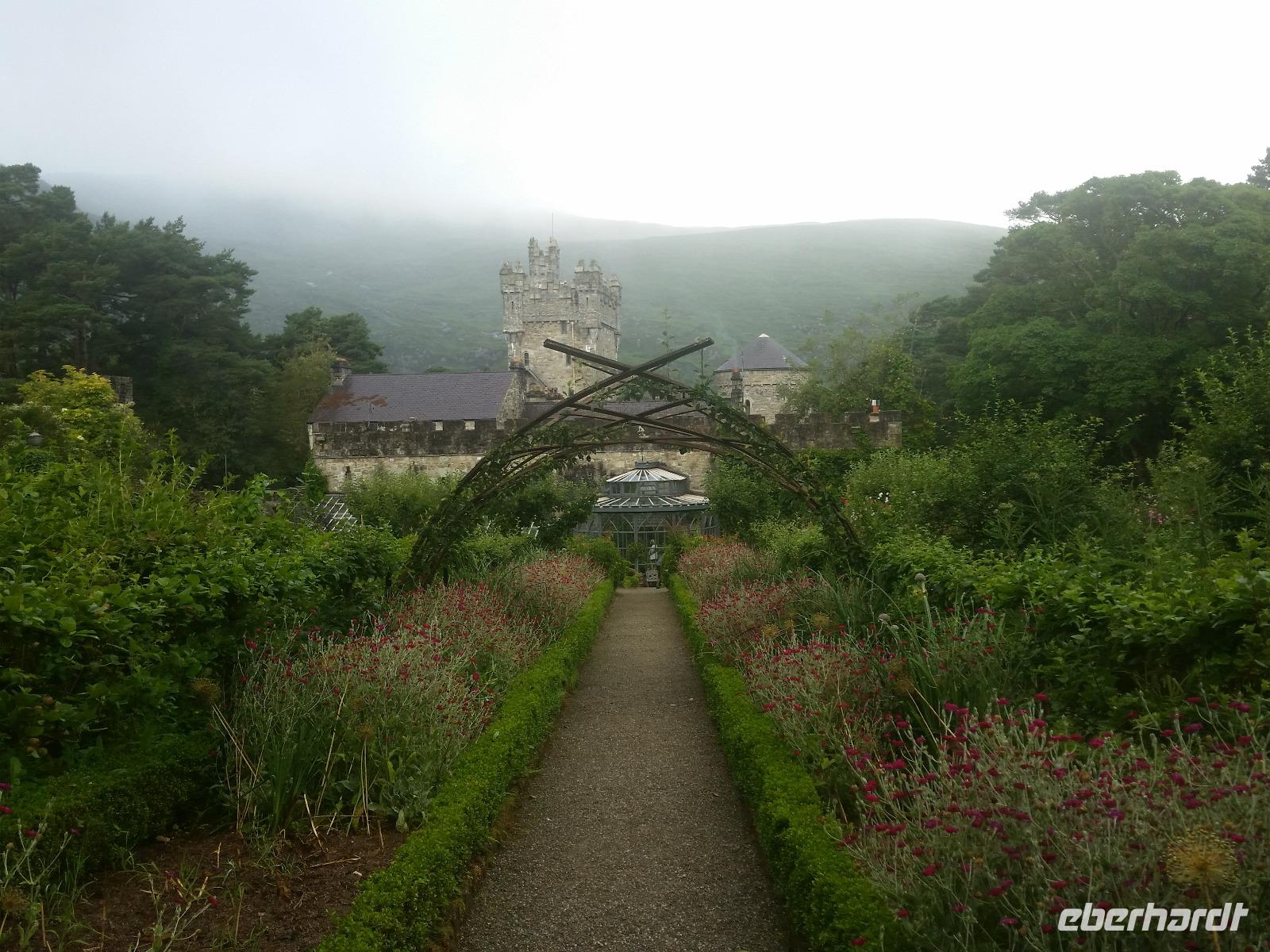 An diesem Tag bestand die Möglichkeit, an einem fakultativen Ausflug zum Glenveagh Nationalpark teilzunehmen oder den Tag in Letterkenny zu verbringen. Alle Gäste nahmen am Ausflug teil, der uns zunächst in den Nationalpark führte. Bei unserer Ankunft waren wir überrascht von der großen Anzahl kleiner Stechmücken (Midges). Zum Glück konnten wir einige feuchte Papiertücher kaufen, die mit einer Lösung getränkt waren, welche die Mücken größtenteils fernhielt. Im Informationszentrum sahen wir uns einen Film über den Park und die Schlossanlage an, bevor wir mit Minibussen zum vier Kilometer entfernten Schloss fuhren. Da wir bis zur Besichtigung noch etwas Zeit hatten, sahen wir uns in der Zwischenzeit den englischen Schlosspark und die ummauerte Gartenanlage an. Danach erfuhren wir im Schloss, dass die letzten beiden Besitzer, die Amerikaner Arthur Kingsley Porter und Henry McIlhenny, sehr gern Künstler und Prominente empfangen haben. Auch Greta Garbo hat sich in Glenveagh mehrmals aufgehalten. McIlhenny ließ auch die Gartenanlage in ihrer heutigen Form gestalten und schenkte Garten und Schloss 1981 der Nationalparkverwaltung. Da wir sehr schönes Wetter hatten, liefen die meisten von uns zurück zum Besucherzentrum. Nach dem Besuch des Glenveagh-Nationalparks starteten wir unsere Donegal-Rundfahrt. In der Ortschaft Gweedore, verbrachte die irische Sängerin Enya ihre Kindheit. Oberhalb des Sees Dunlewy Lough legten wir einen Fotostopp ein und fuhren anschließend vorbei am pyramidenförmigen Berg Mount Errigal zum Strand von Dunfanaghy. Leider waren die erhofften Muschelfunde weniger zahlreich als erhofft. Vom Dunfanaghy aus fuhren wir anschließend zu unserem Hotel nach Letterkenny zurück.