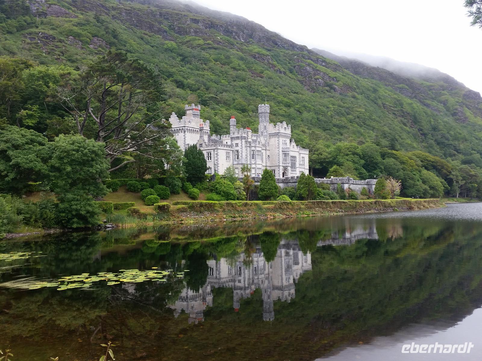 An diesem Tag fuhr uns Michael mit einem irischen Bus, da unser Fahrer Frank seinen verdienten freien Tag hatte. Nach dem Frühstück starteten wir unsere Tour nach Connemara. Bei Maam Crosss, einer Station an der sich die beiden wichtigsten Straßen Connemaras kreuzen, machten wir unsere erste Pause. Anschließend fuhren wir durch eine fantastische bergige Landschaft mit Seen und kleinen bewaldeten Inseln. Am Lough Inagh legten wir einen ausgiebigen Fotostopp ein und genossen die Sicht auf die fantastische Bergwelt der Twelve Pins und der Maumturk Mountains. Danach ging es zur Kylemore Abbey. Der Engländer Mitchell Henry erwarb dieses romantische Anwesen im 19.Jahrhundert und ließ eines von Irlands bezauberndsten Schlössern errichten. Anfang des 20.Jahrhunderts übernahmen Benediktinerinnen die Anlage. Während unseres zweistündigen Aufenthaltes besuchten wir die Viktorianischen Gärten und die Kylmore Abbey, den ehemaligen Herrensitz. Danach fuhren wir entlang des Fjordes Killary Harbour bis Leenaun und anschließend durch das Joyce County nach Cong. Der Ort liegt nach der beiden Seen Lough Mask und Lough Corrib. Hier wurde der Film „Quiet Man" gedreht, in dem ein Boxer (John Wayne) nach Irland, ins Land seiner Vorfahren zurückkehrt, um eine Frau zu finden (Maureen O'Hara). In Cong spazierten wir zum Ashley Castle, welches einst Wohnsitz der Familie Guinness war und heute ein exklusives 5* Hotel ist. Von Cong ging es anschließend zurück zu unserem Hotel „Lady Gregory", wo bis zum Abendessen noch etwas Zeit für die Nutzung des hoteleigenen Schwimmbades war.