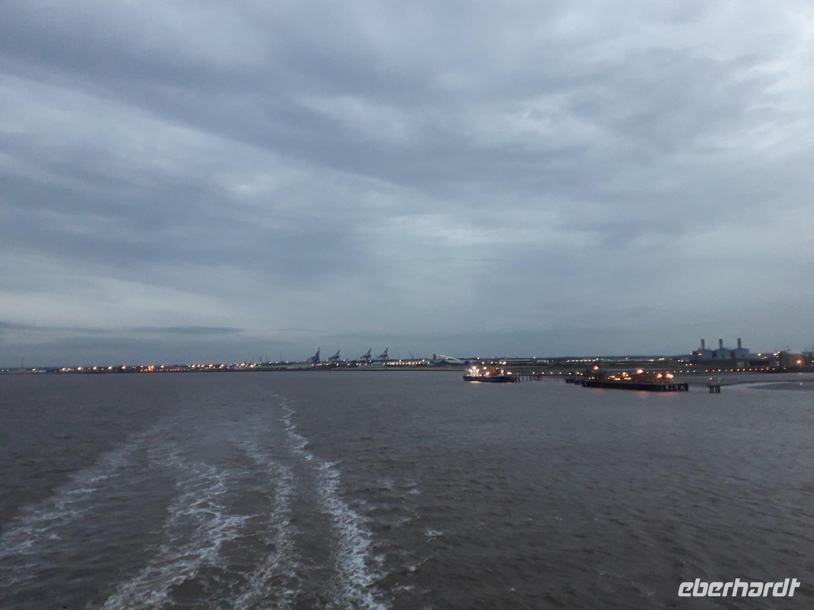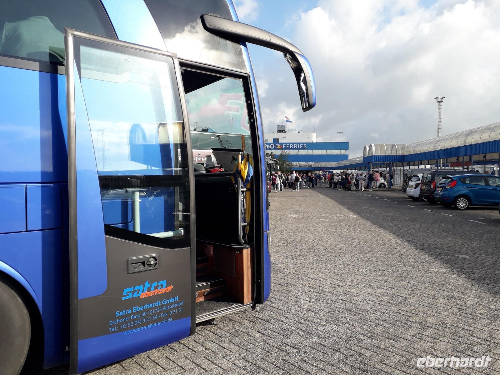 Bus zum Hafen von Rotterdam.Auf der Nachtfähre genossen wir ein vielseitiges Abendessen vom Büffet,ehe wir das Ablegen der Fähre beobachteten und uns dann zur Nachtruhe in unsere Kabinen begaben.