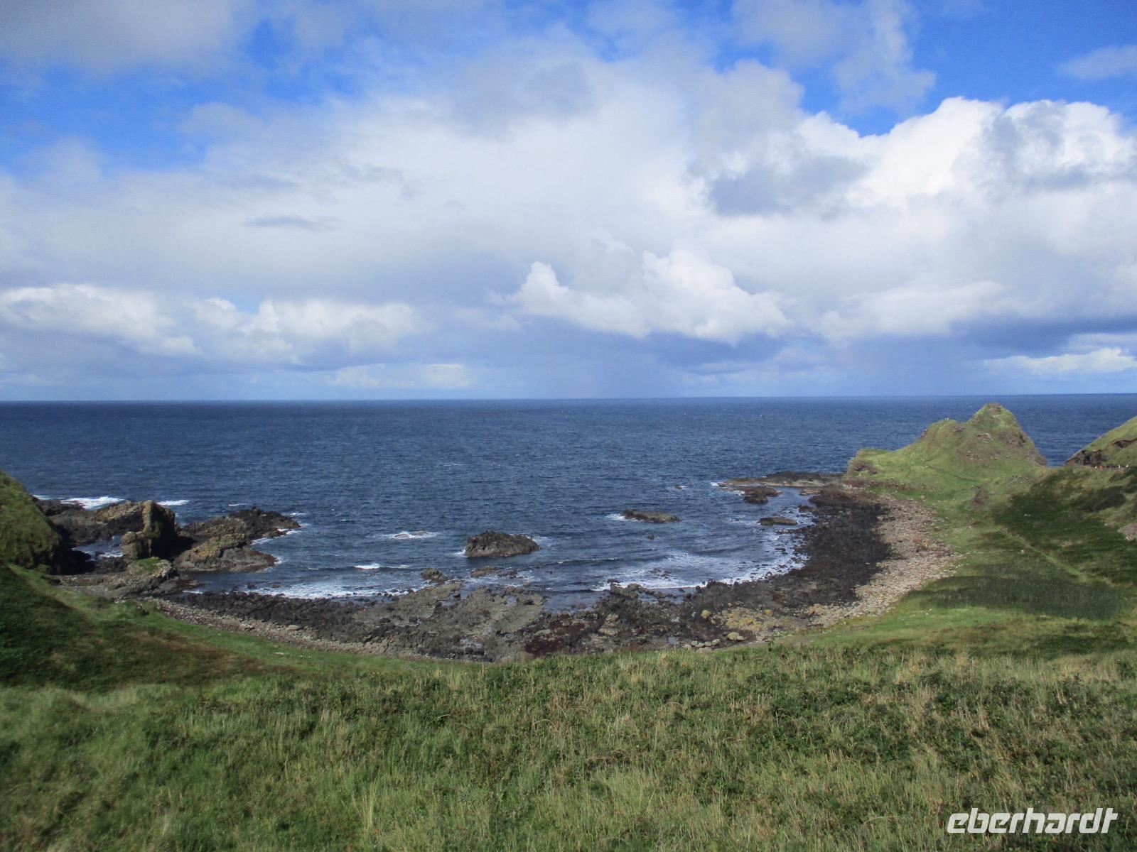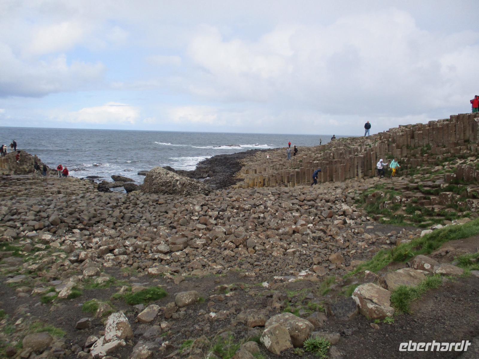 Am Giant's Causeway besichtigten wir die vor 60 Millionen Jahren entstandenen zumeist sechseckigen Basaltsäulen. Wir kletterten auf diesem Wunder der Natur umher, das seit 1986 zum Unesco Weltkulturerbe gehört. Während unseres Aufenthaltes erlebten wir typisch irisches Wetter, das sich sehr wechselhaft zeigte, es begannt zu regnen. Froh, dem Regen entkommen zu können, bestiegen wir nach unserem Aufenthalt hier wieder unseren Bus und fuhren nach Derry / Londonderry, die letzte Stadt in Nordirland, bevor wir wieder in die Republik Irland hereinfahren würden.